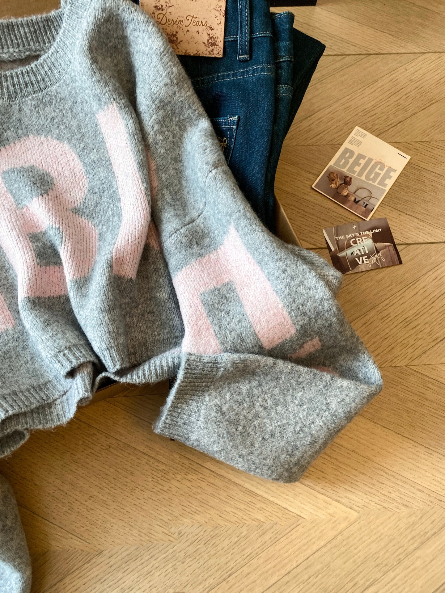 撞色字母套頭毛衣女秋冬穿搭長袖圓領純欲洋氣好看短款針織衫上衣