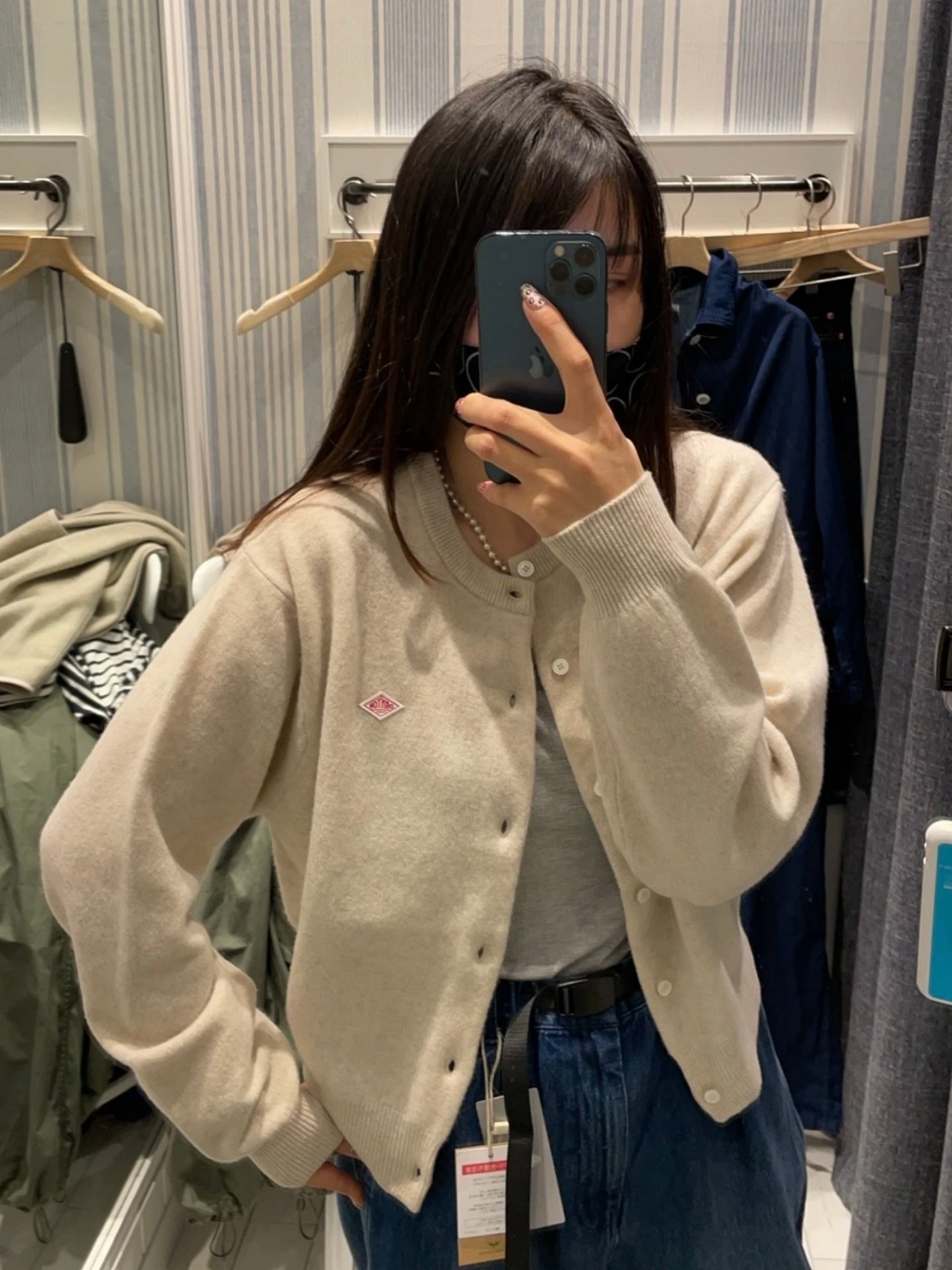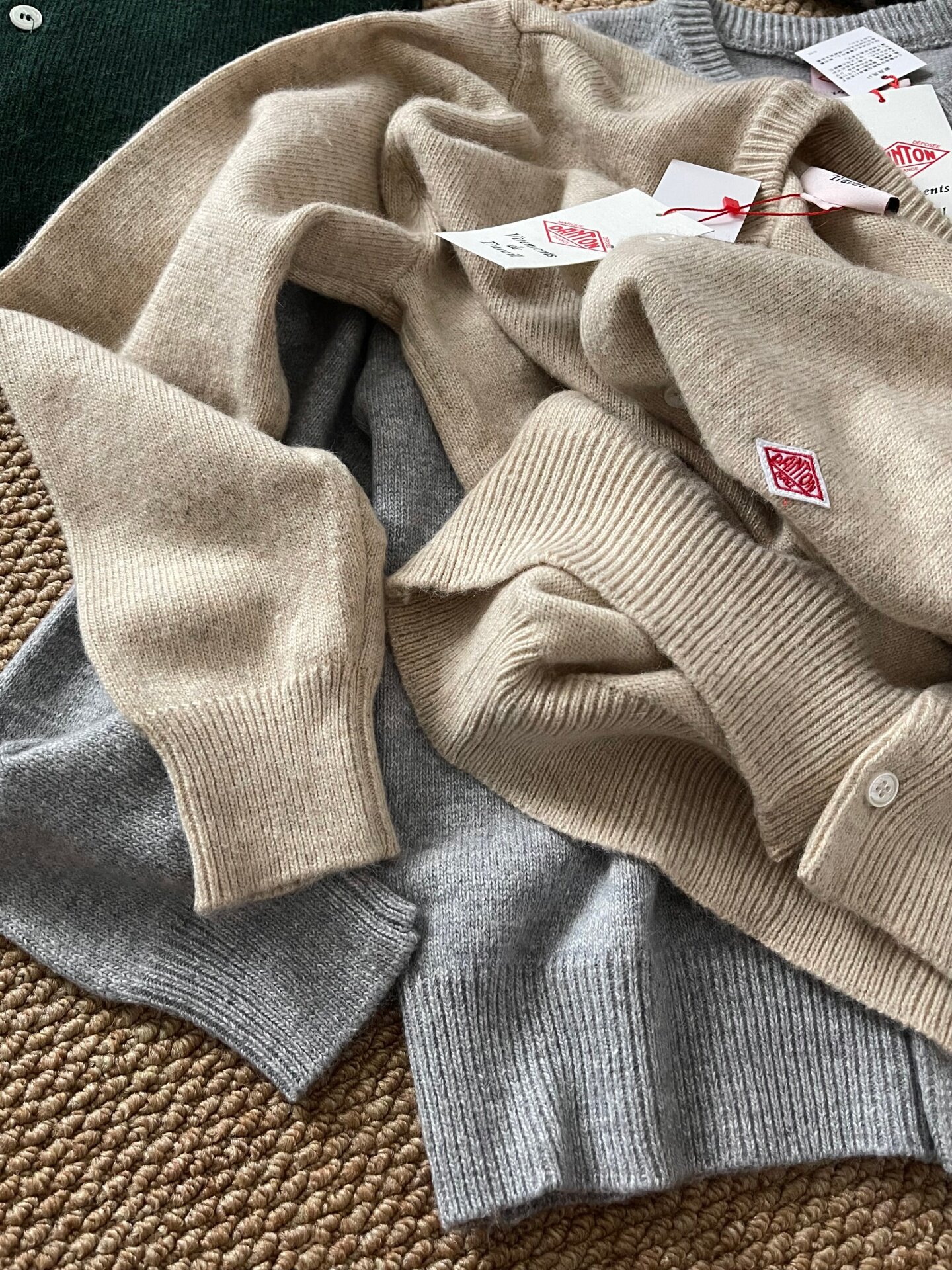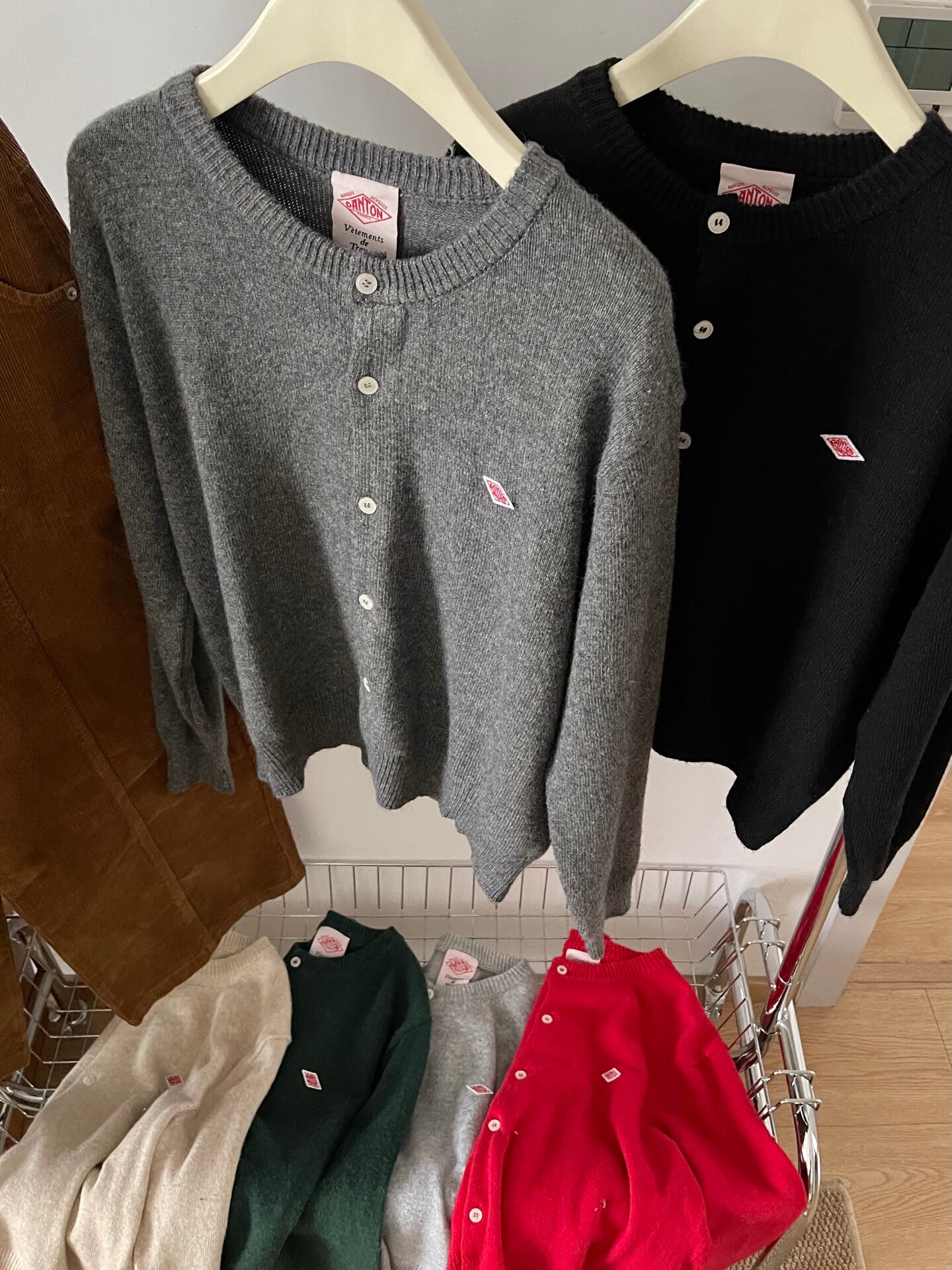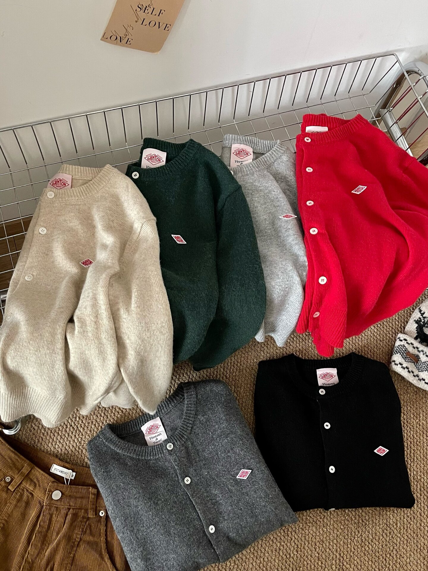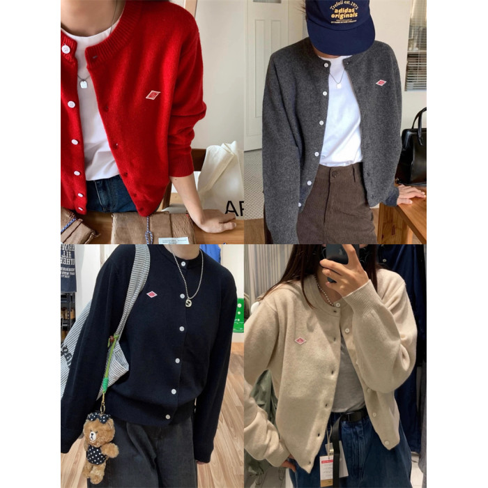 自畱高品質!日單@dant*n 復古布標刺綉軟糯羊毛顯瘦圓領毛衣開衫