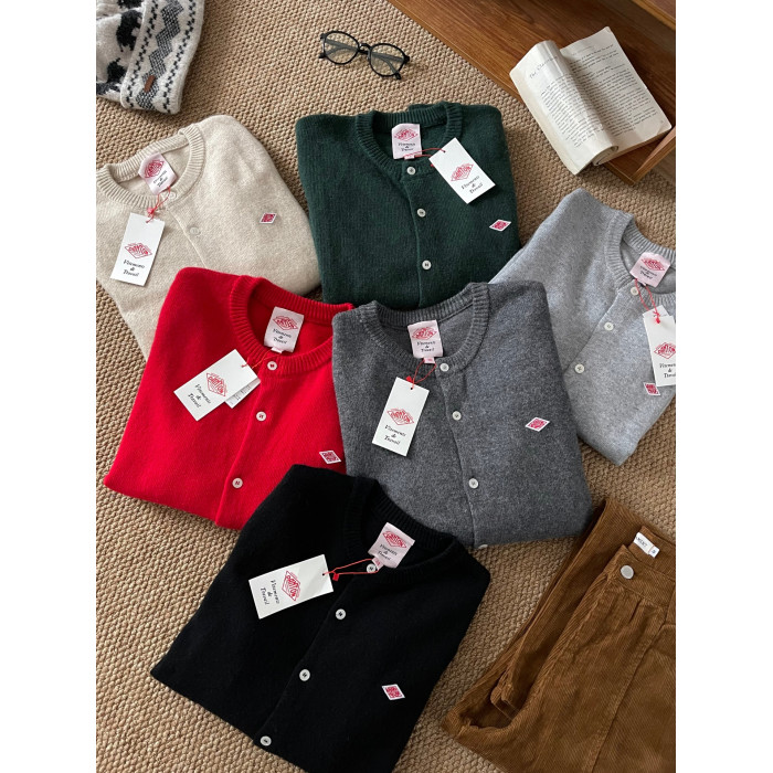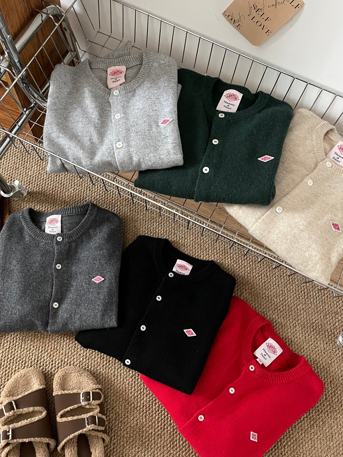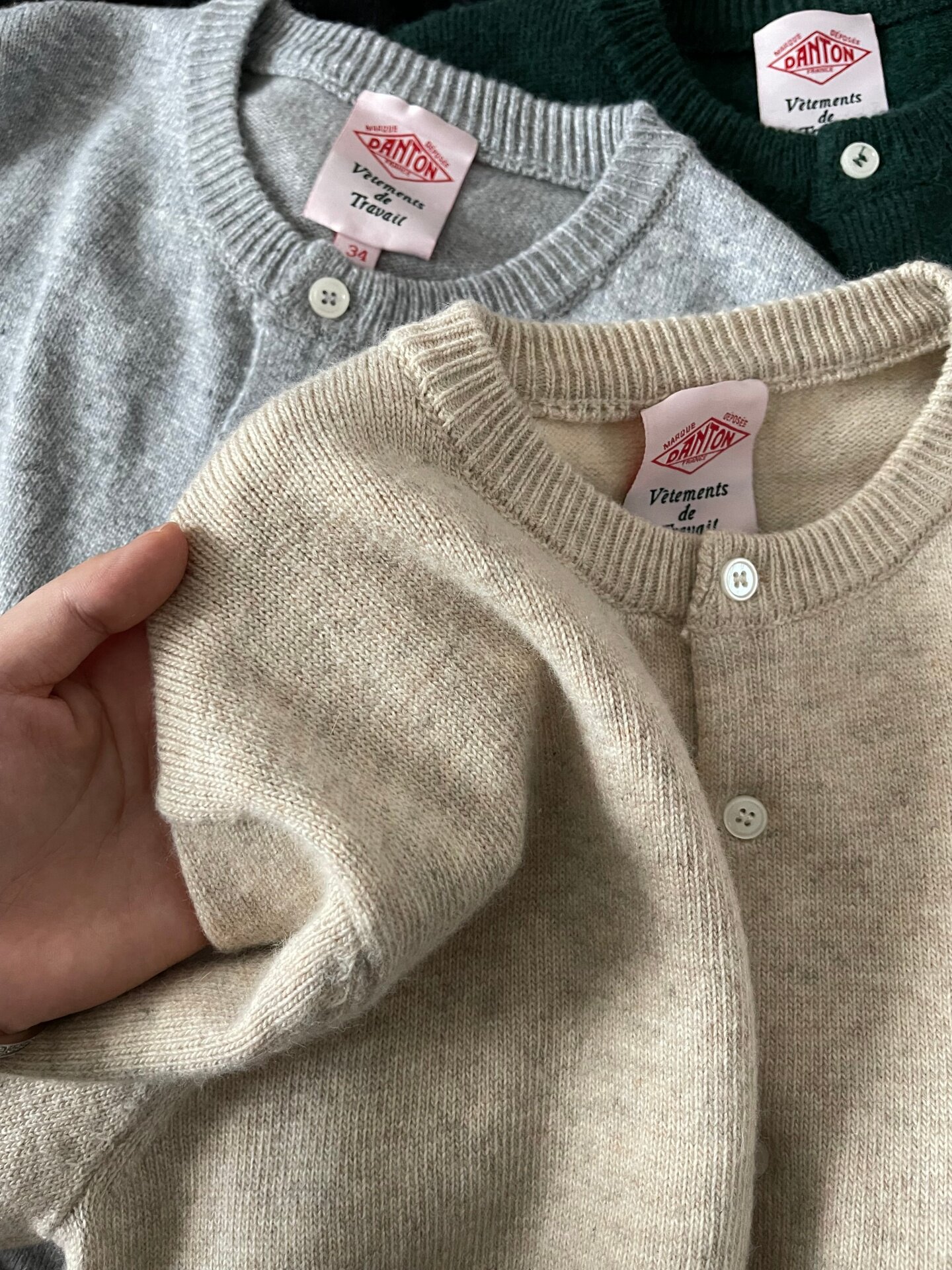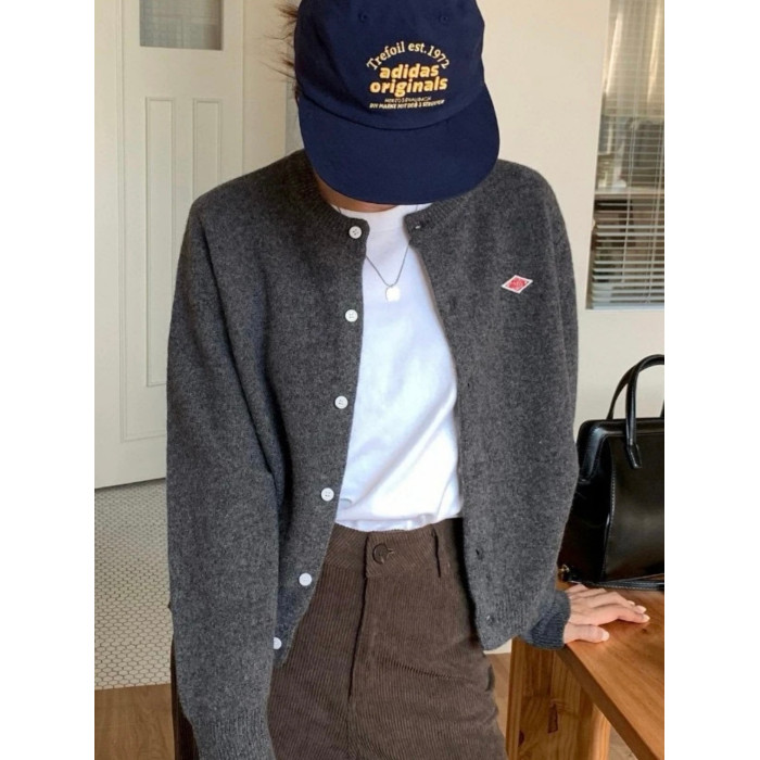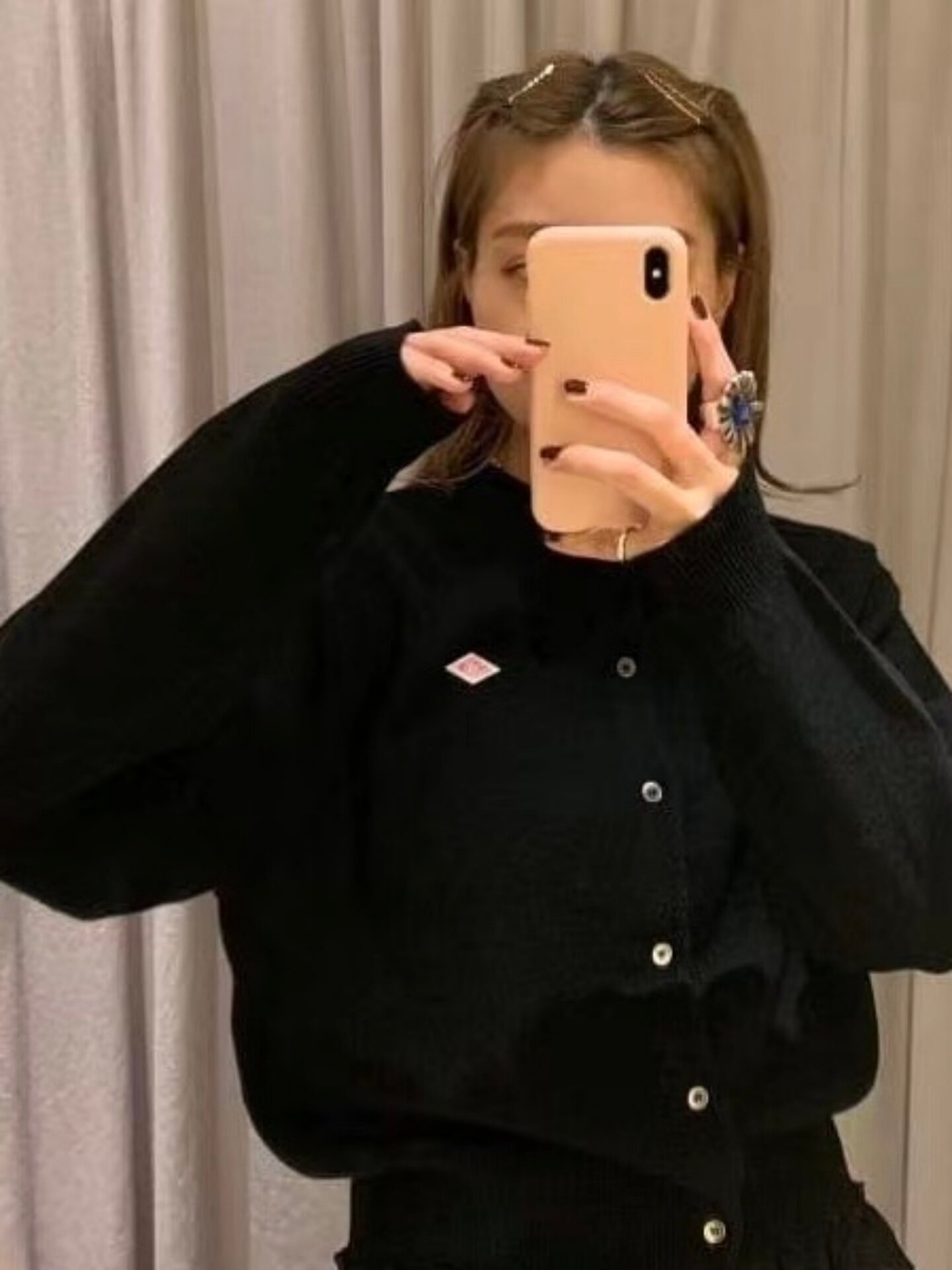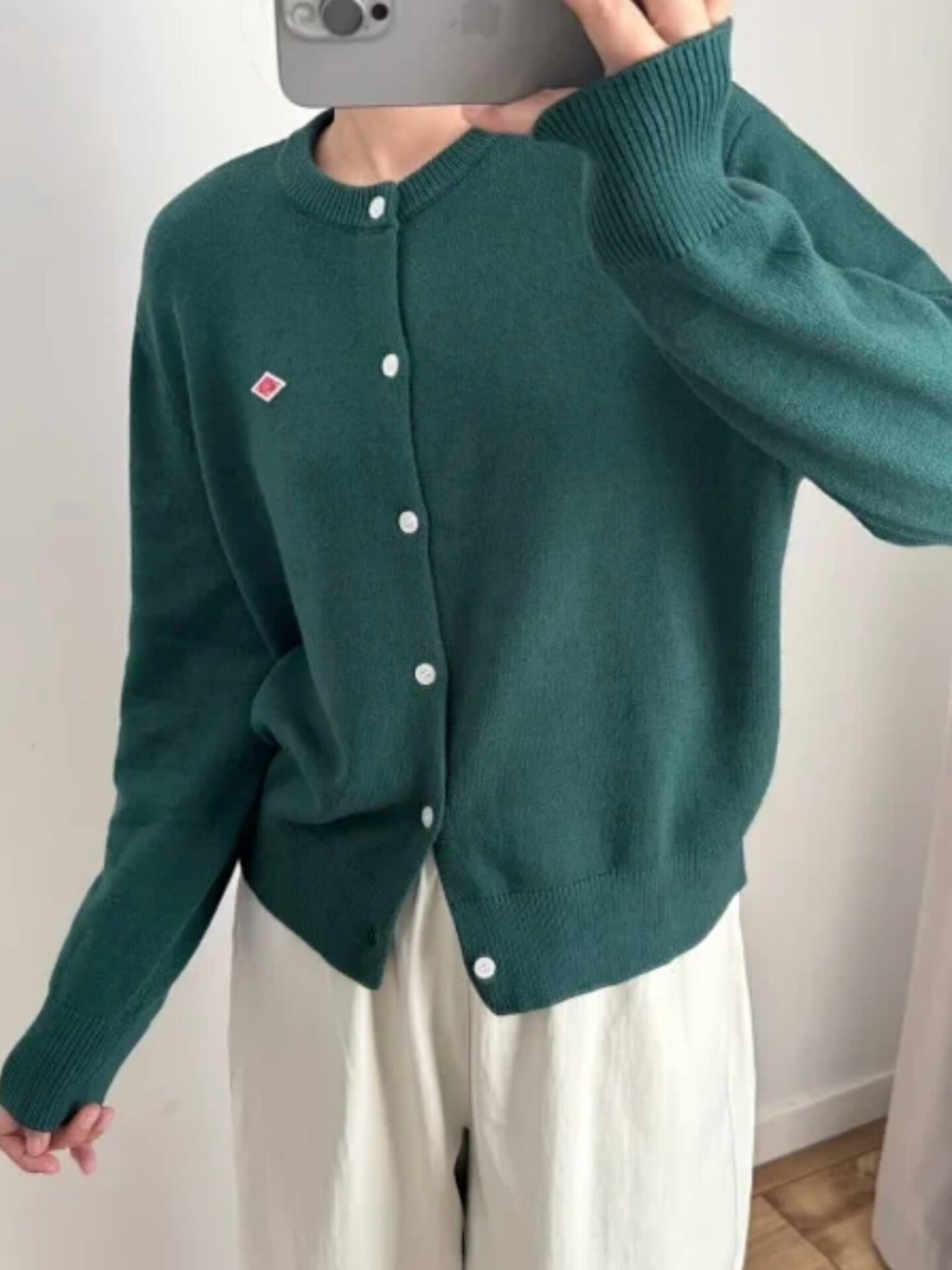 自畱高品質!日單@dant*n 復古布標刺綉軟糯羊毛顯瘦圓領毛衣開衫