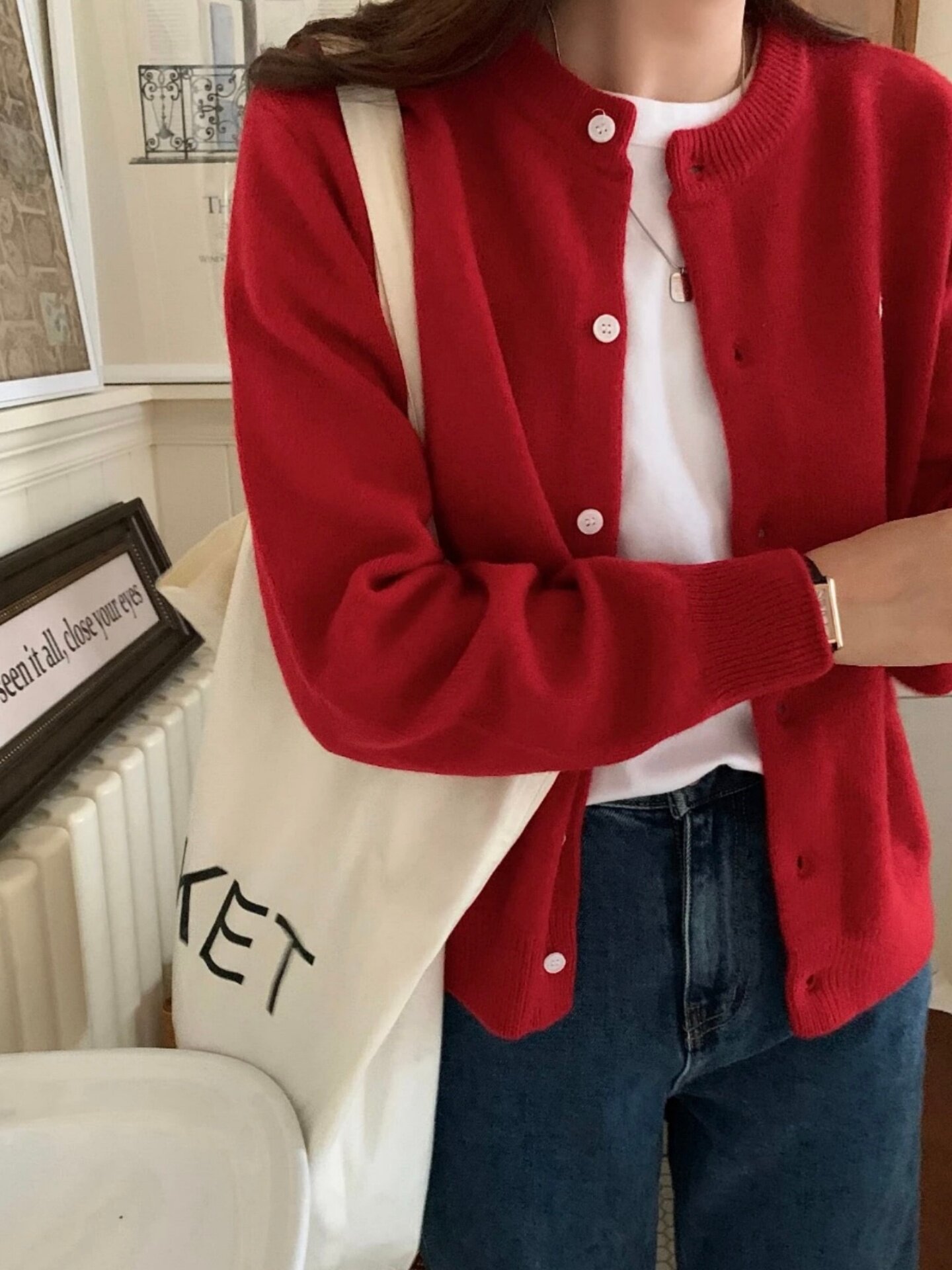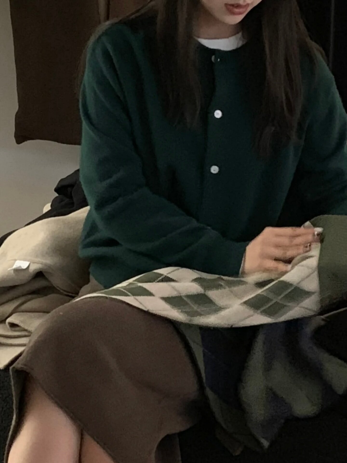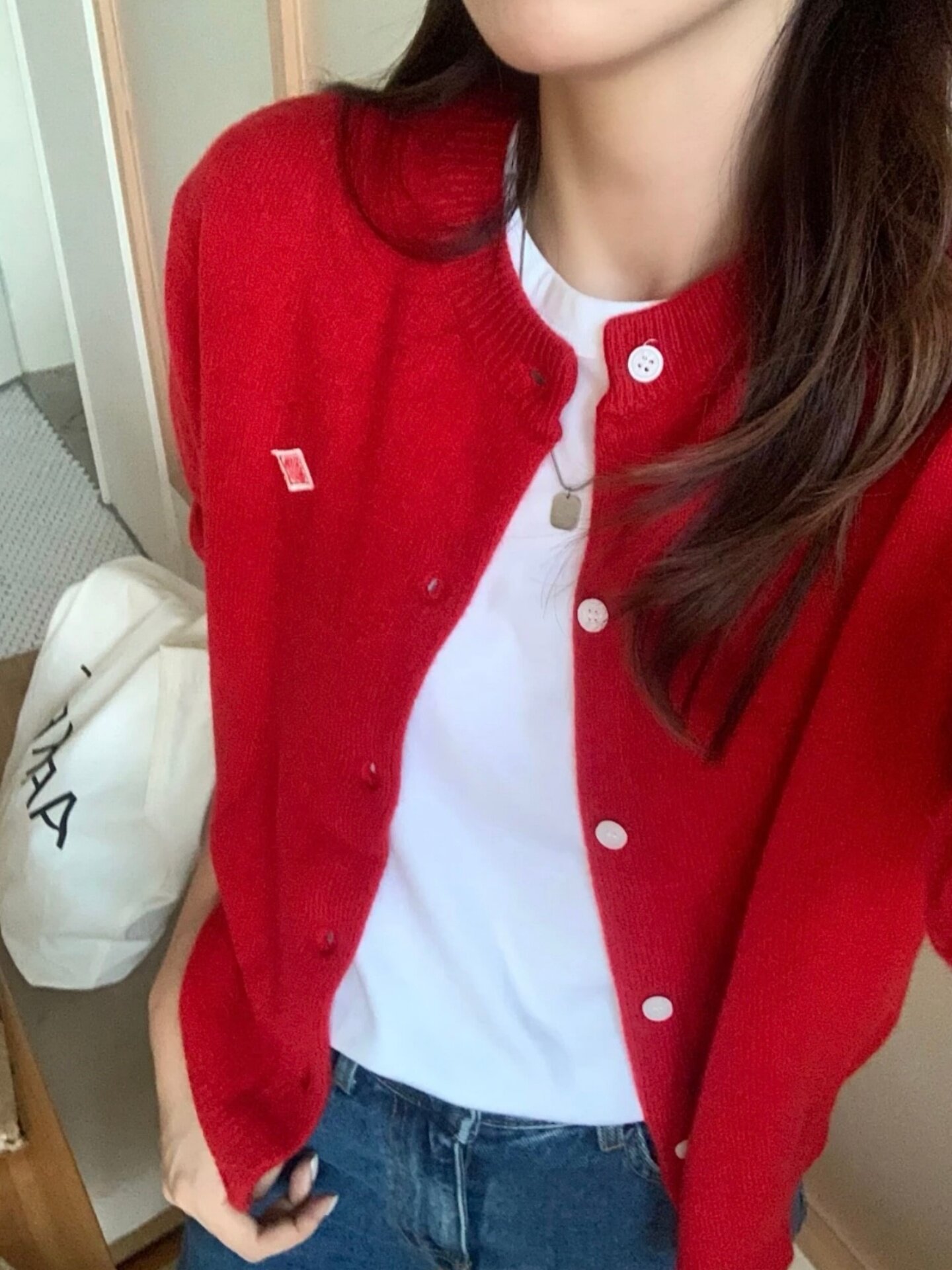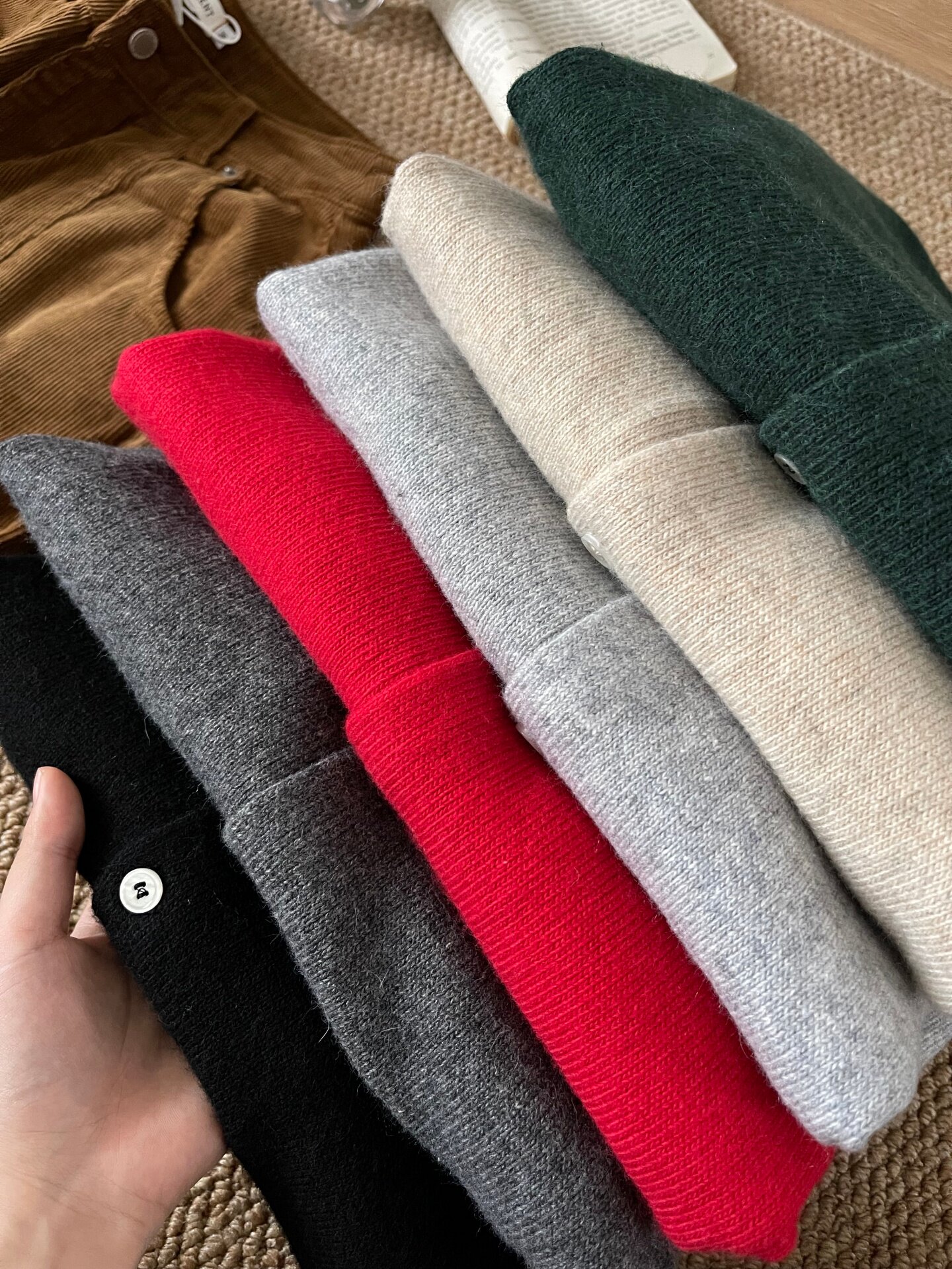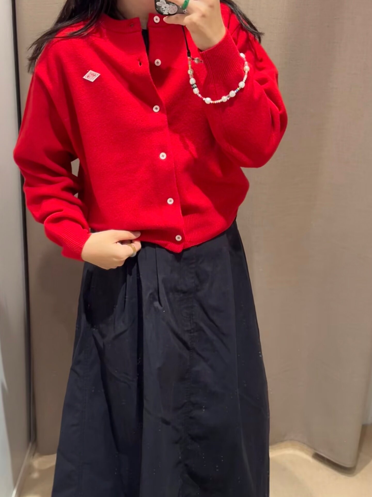 自畱高品質!日單@dant*n 復古布標刺綉軟糯羊毛顯瘦圓領毛衣開衫