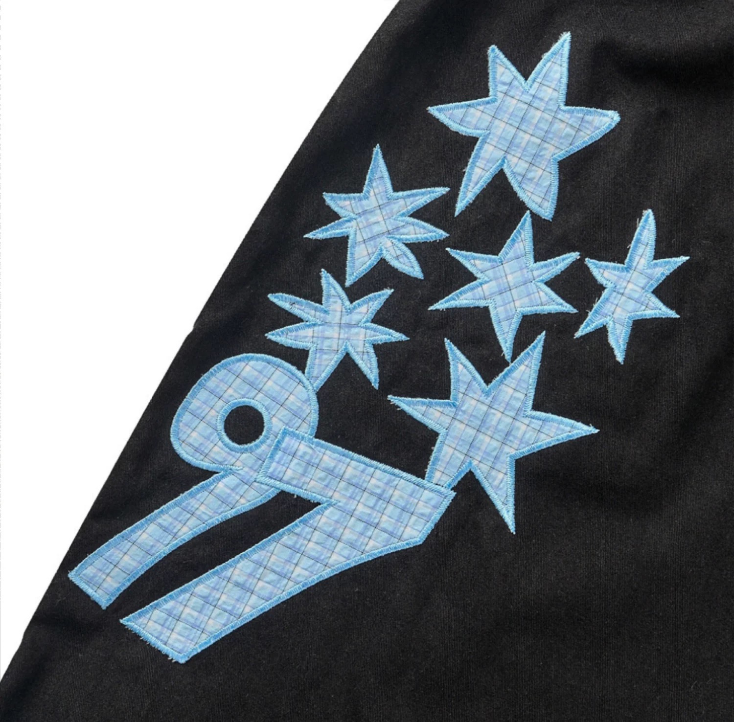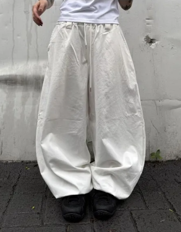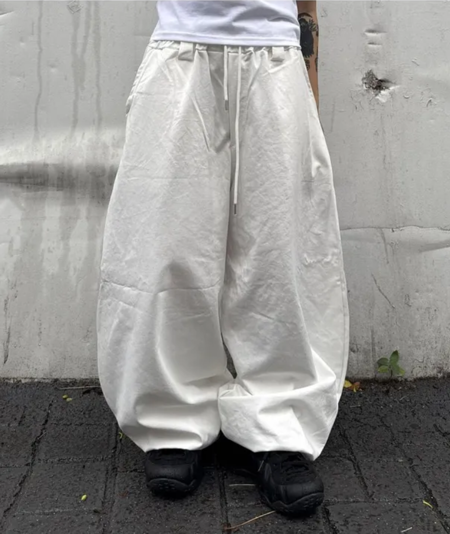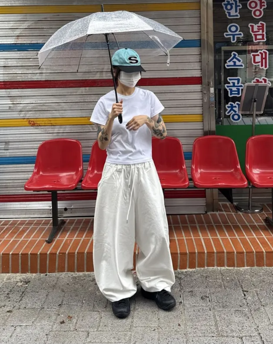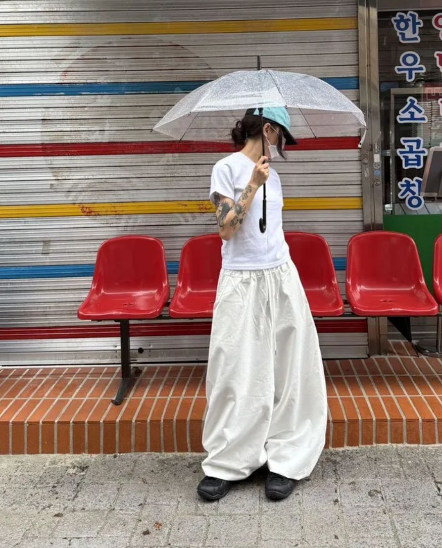 韓國五角星貼布刺綉厚斜紋帆布寬松濶腿褲彎刀褲長褲