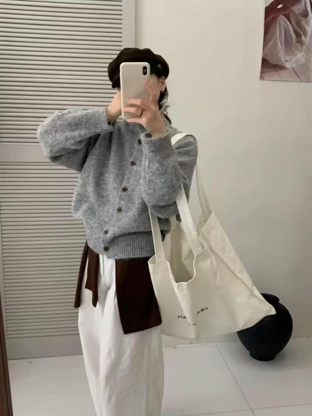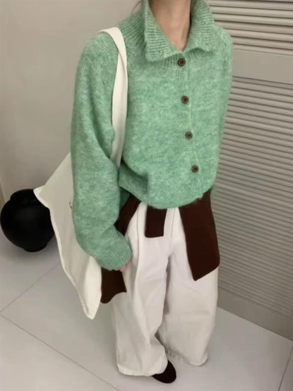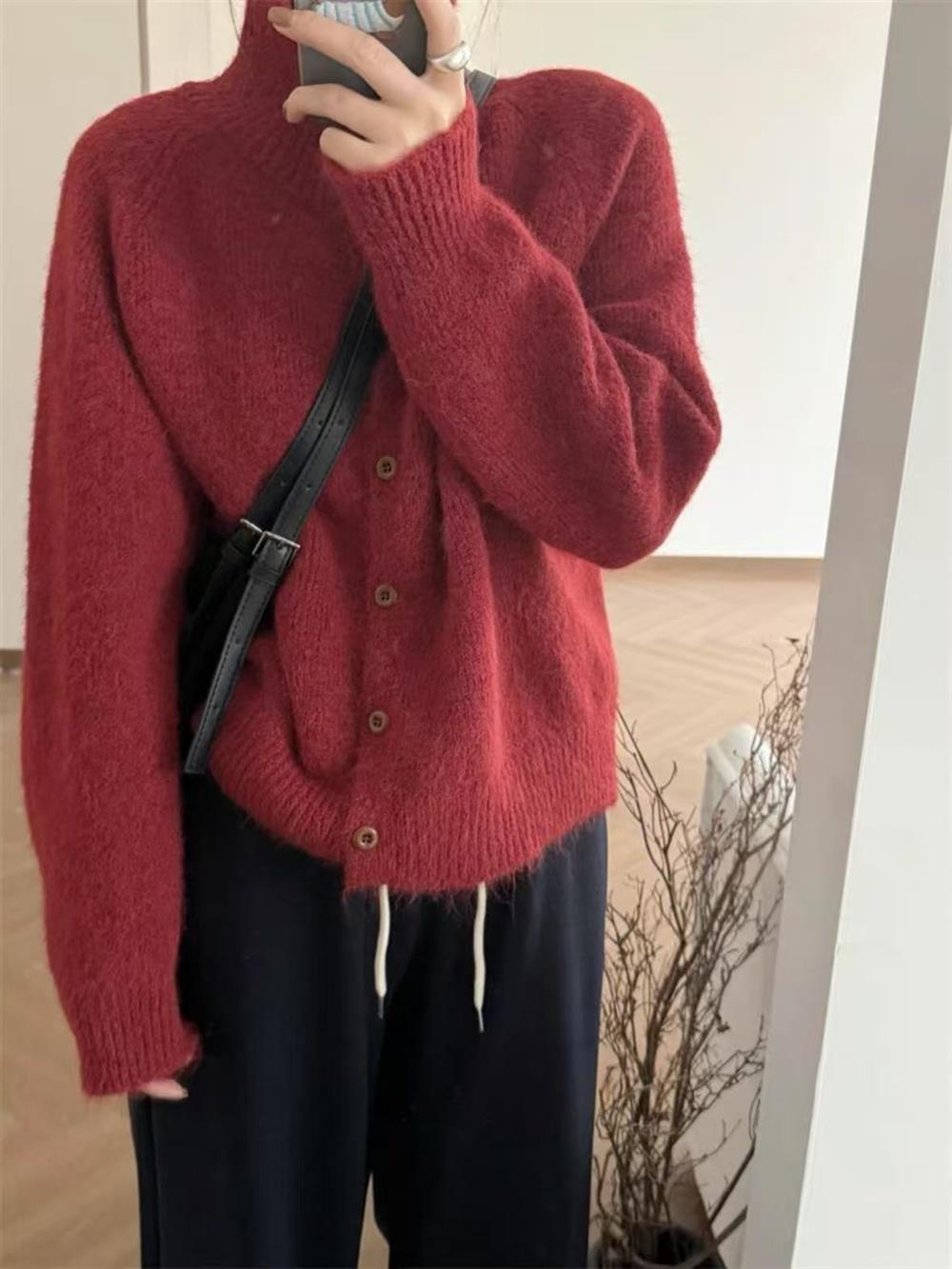 高級感立領針織開衫外套上衣女秋冬軟糯灰色內搭高領慵懶外穿毛衣