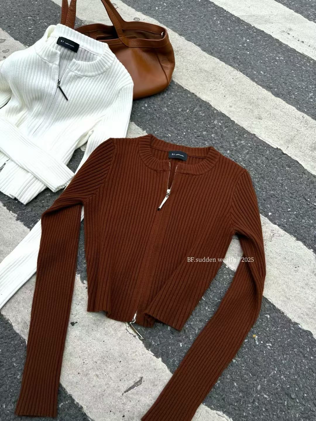 2025秋季新款韓版洋氣百搭ins雙拉鍊修身顯瘦針織開衫