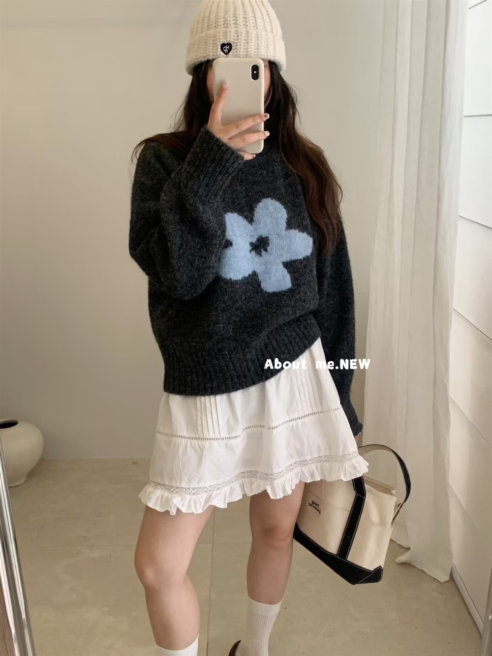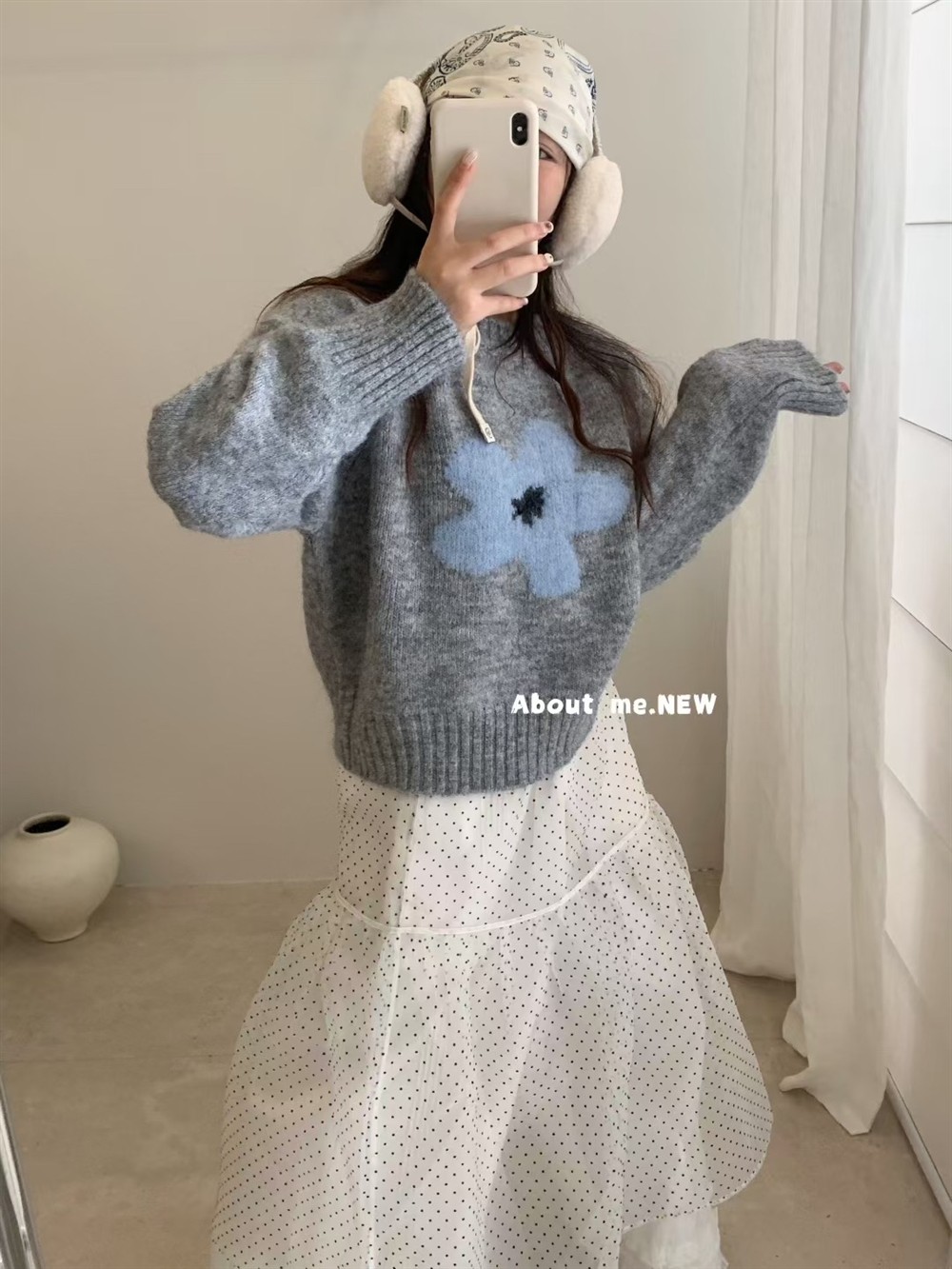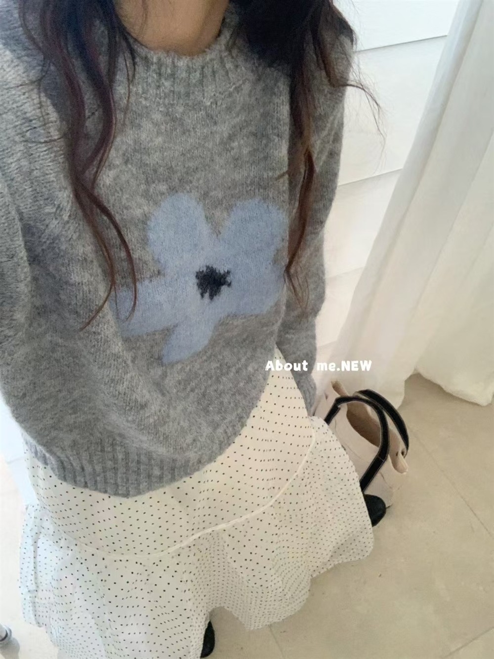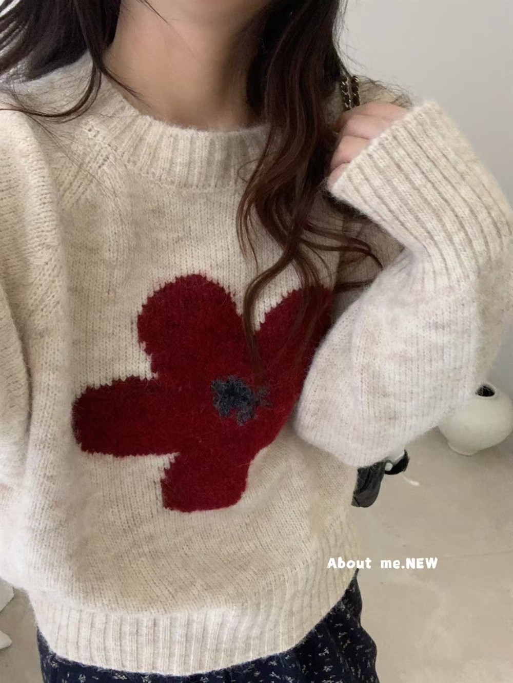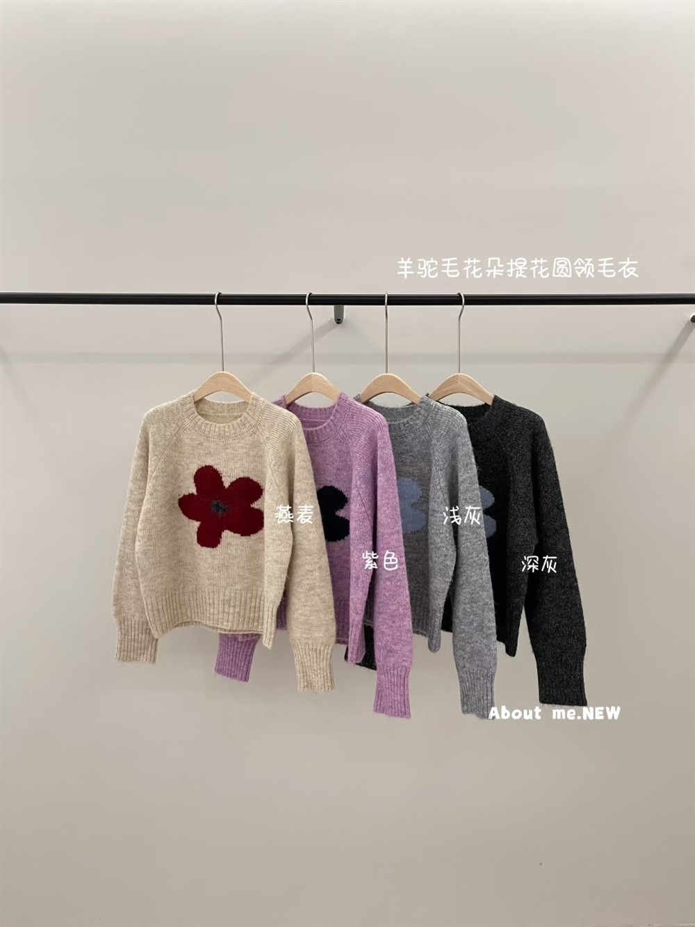 韓系花朵提花圓領毛衣女2025秋冬寬松洋氣短款套頭毛針織衫上衣潮