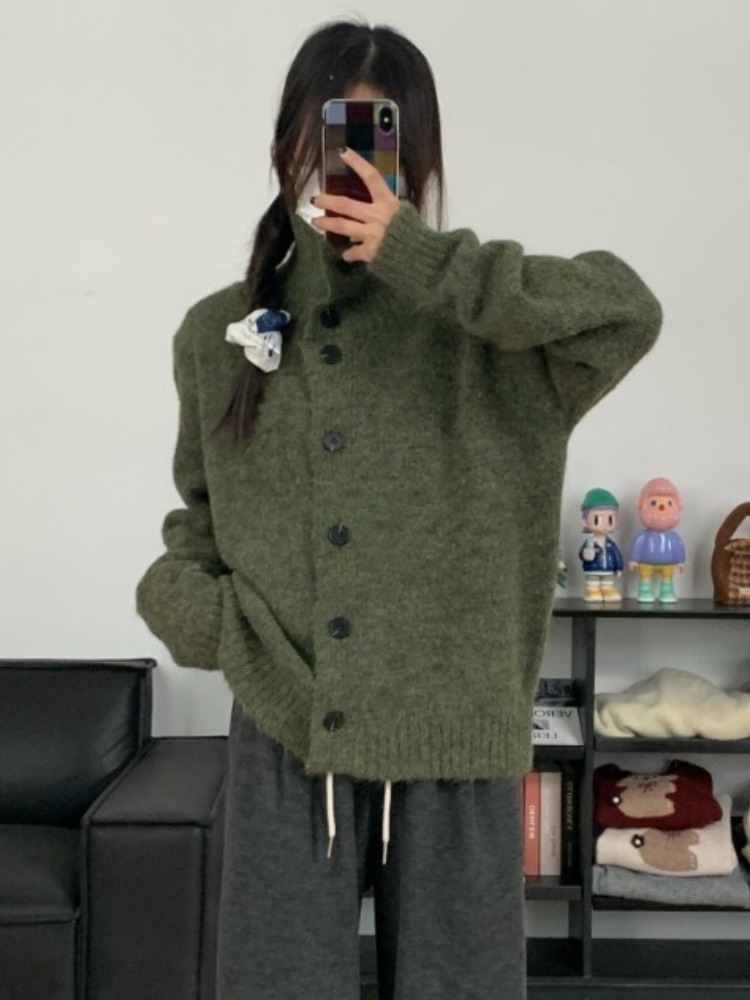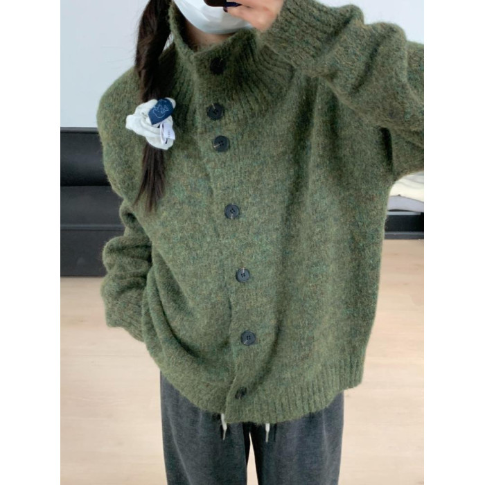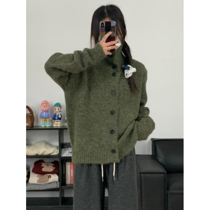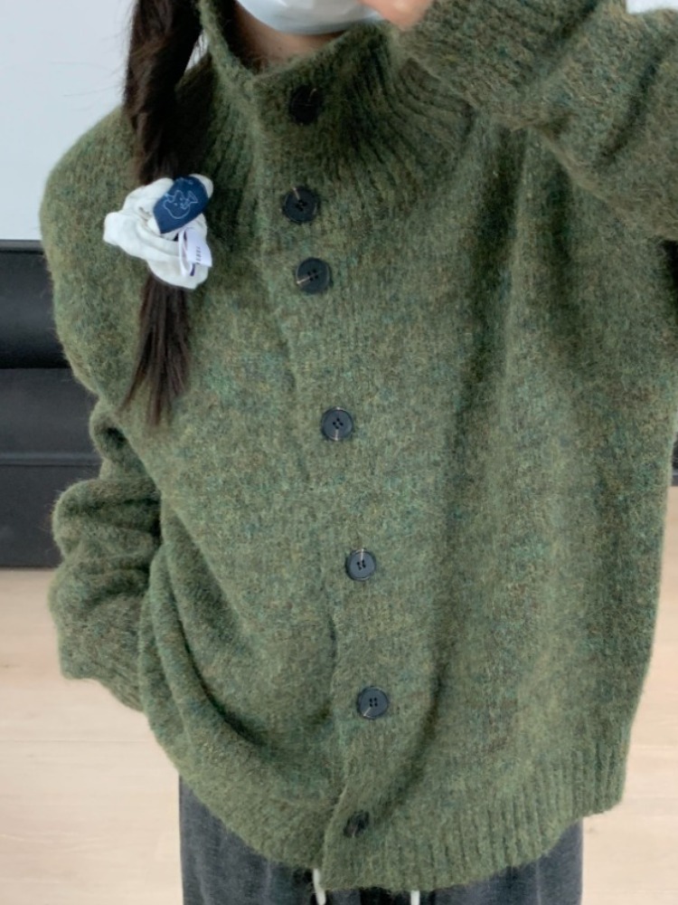 2025新款聖誕綠色毛衣外套慵懶高級感奶呼呼軟糯藝術生寬松上衣女