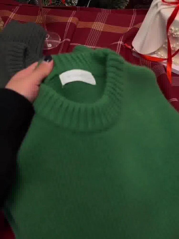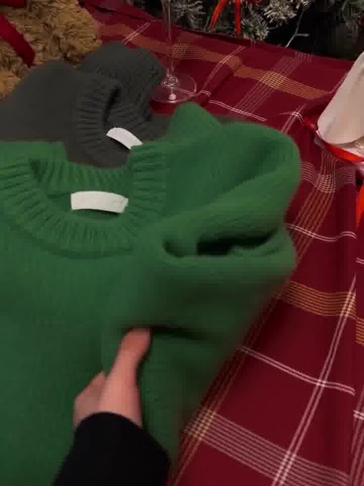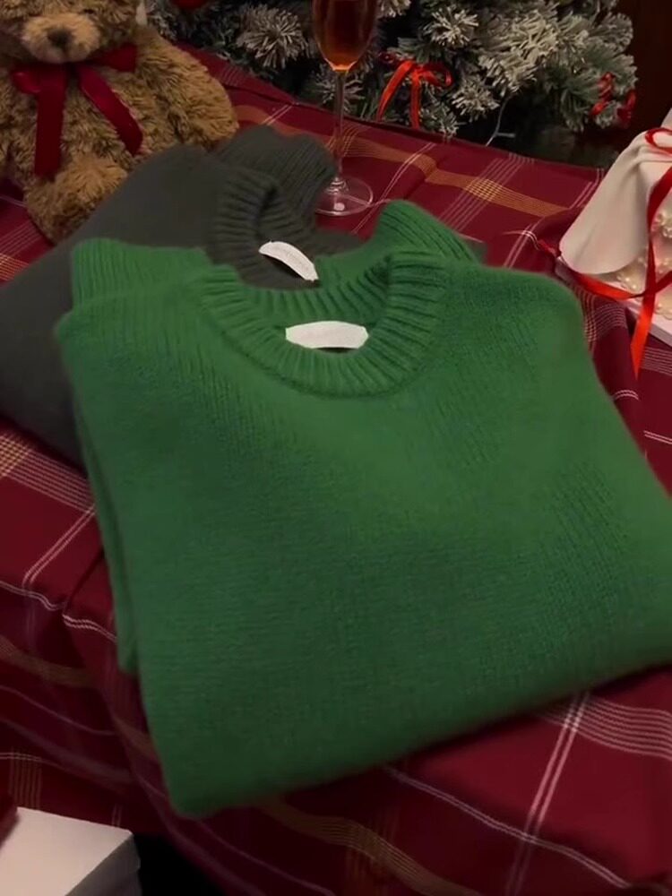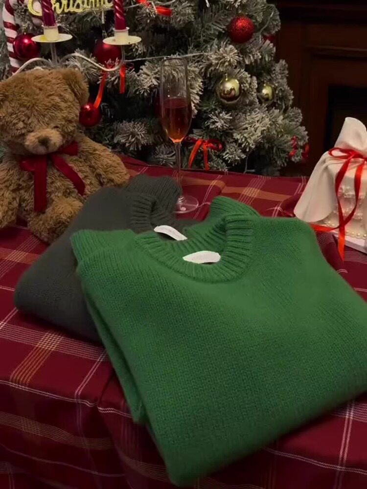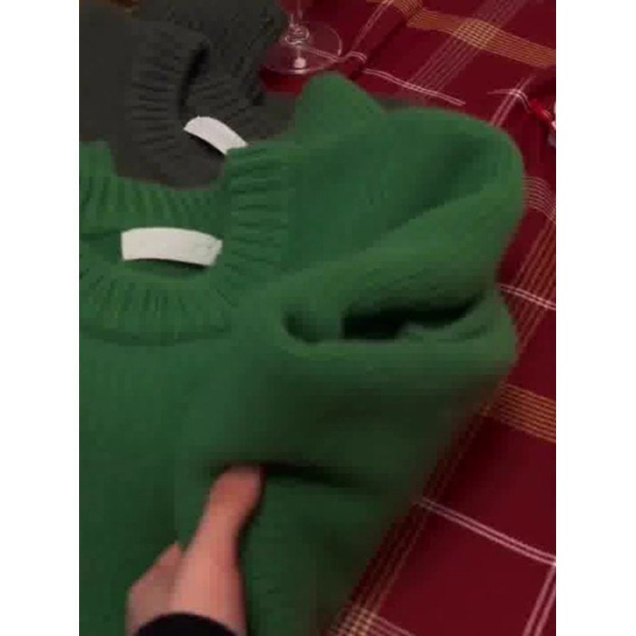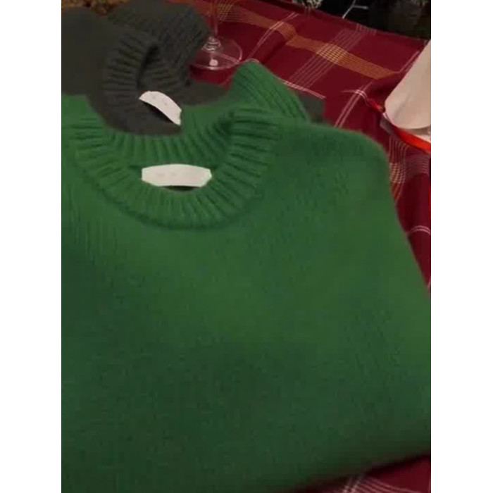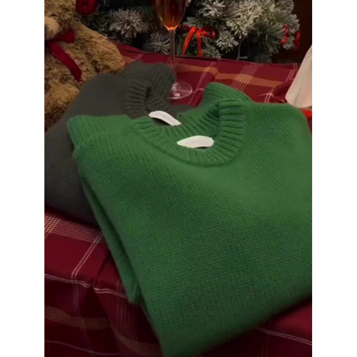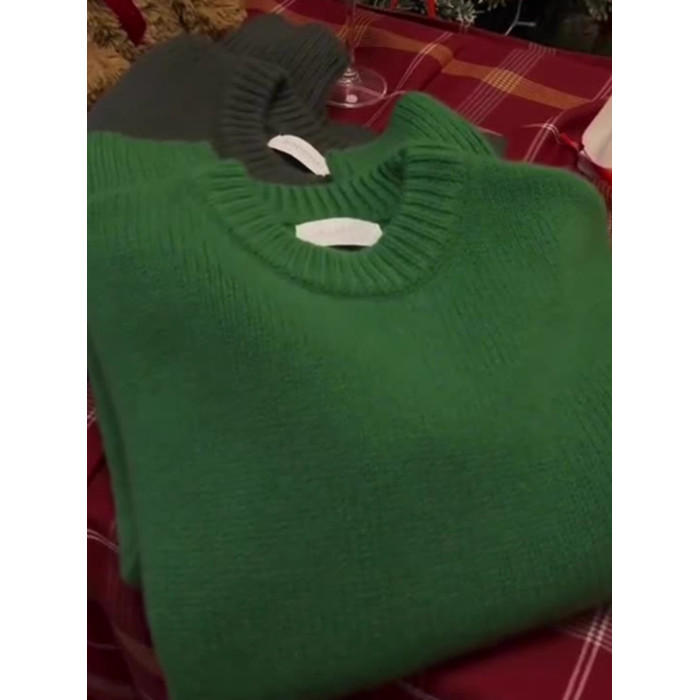 歐貨高級秋冬季2024年新款女裝穿搭上衣漂亮聖誕綠色針織套頭毛衣