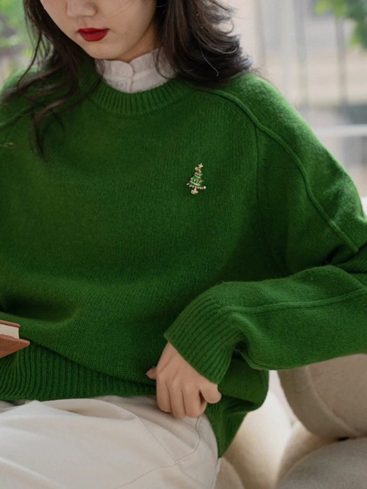 牛X貨 巨炸裂!聖誕綠色圓領長袖毛衣女秋冬慵懶風寬松針織衫上衣