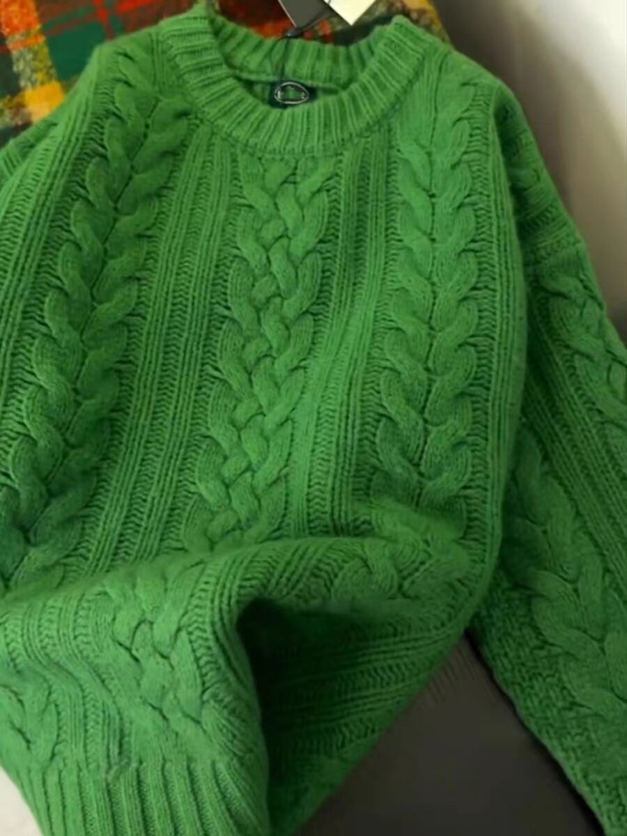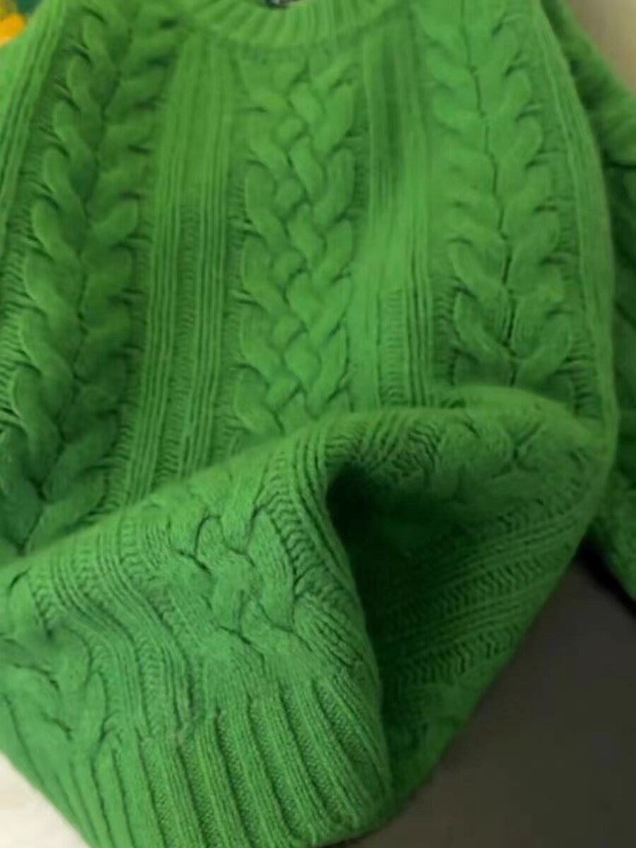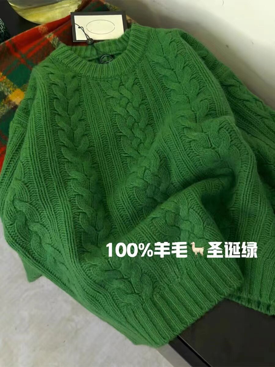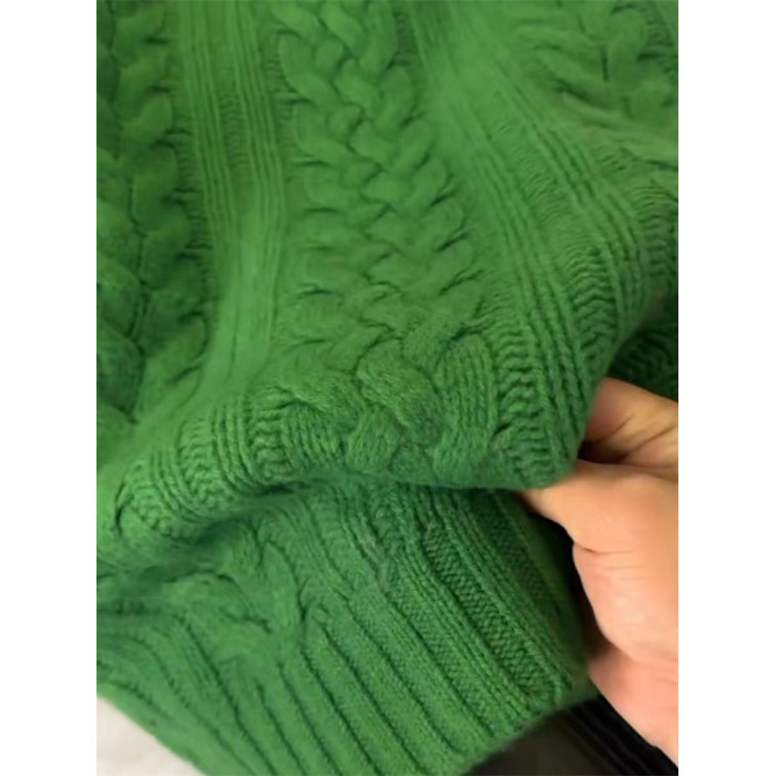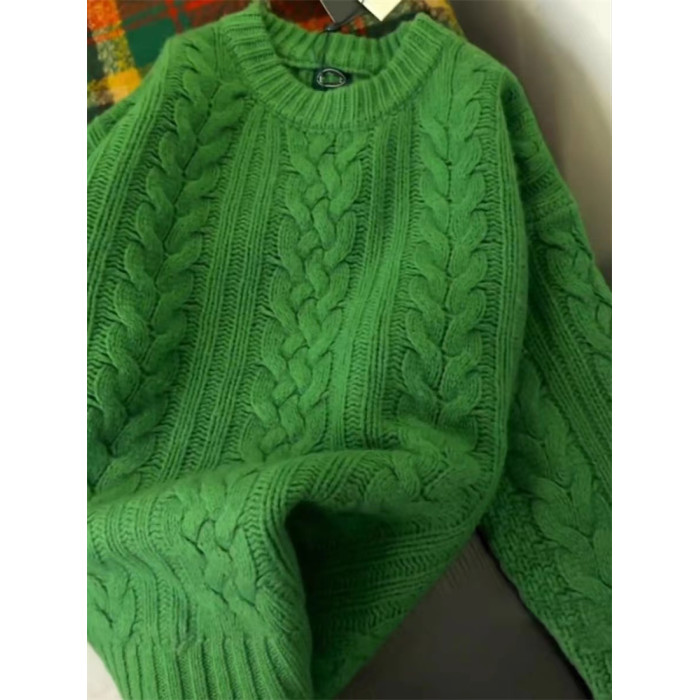專櫃撤迴聖誕綠色麻花加厚套頭毛衣秋冬濮院慵懶風羊毛針織衫