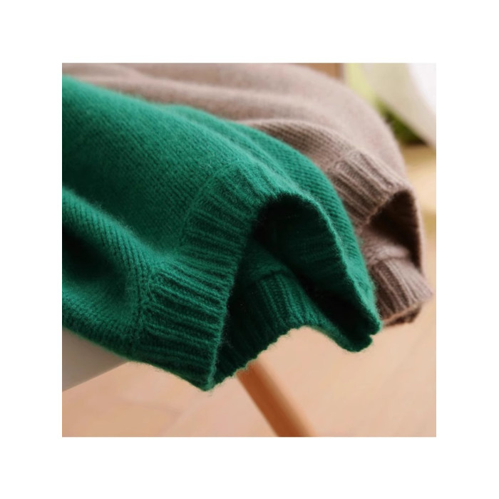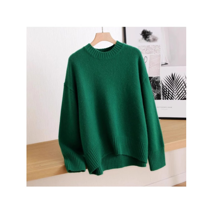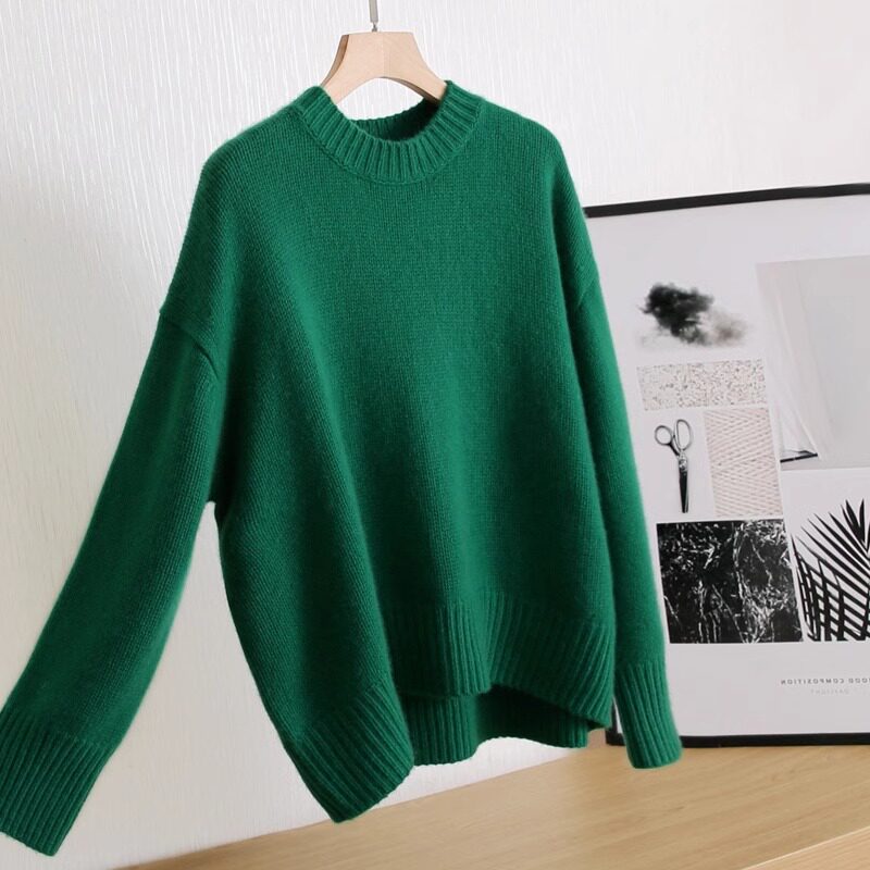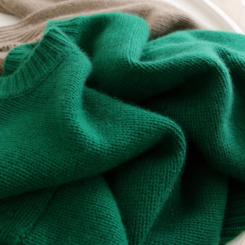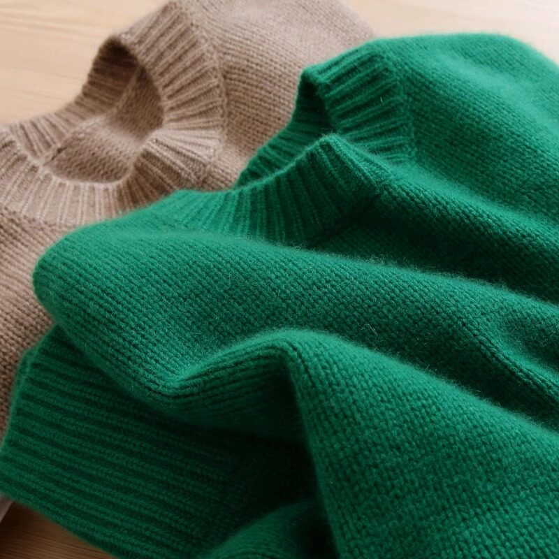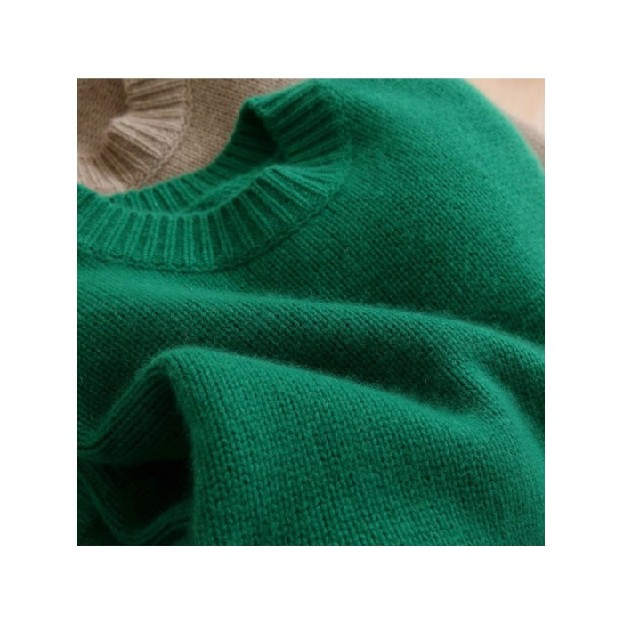 歐貨高級聖誕綠色圓領新年毛衣女秋冬新款高級感軟糯純色針織上衣
