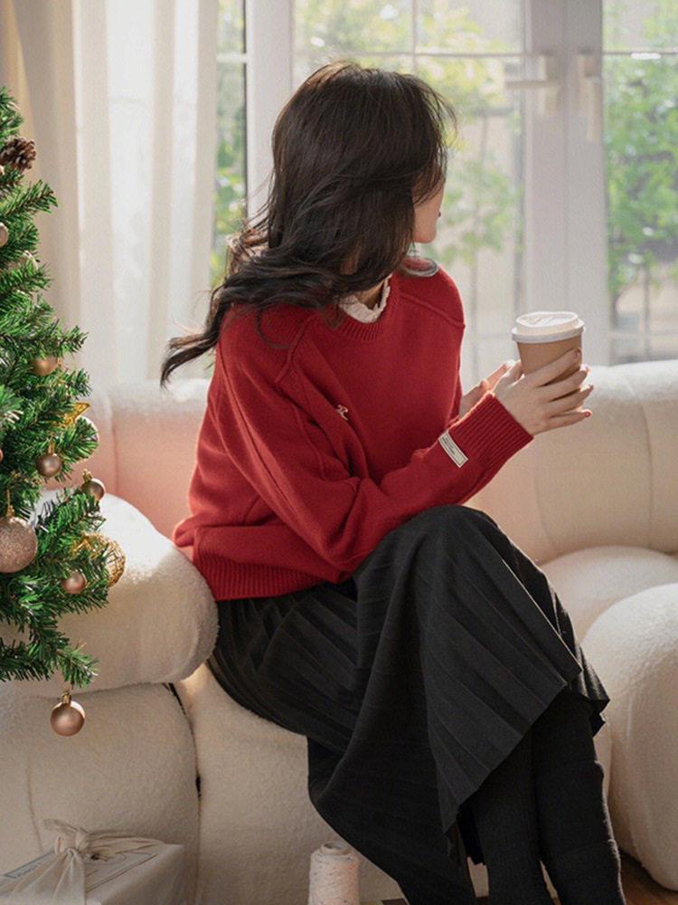 聖誕綠色毛衣女秋冬小個子慵懶風超好看針織衫學院風圓領上衣長袖
