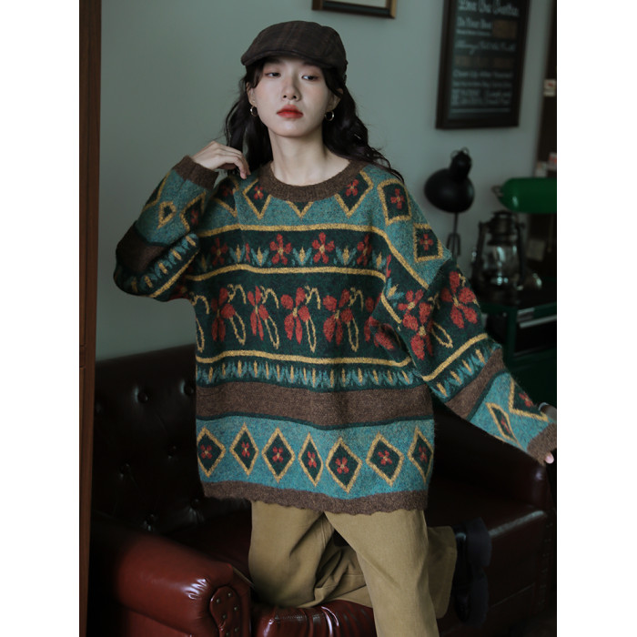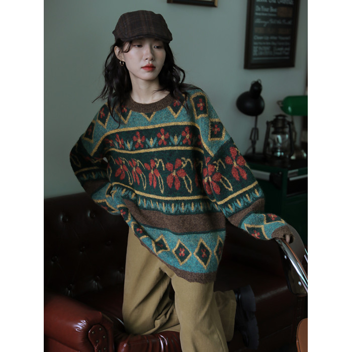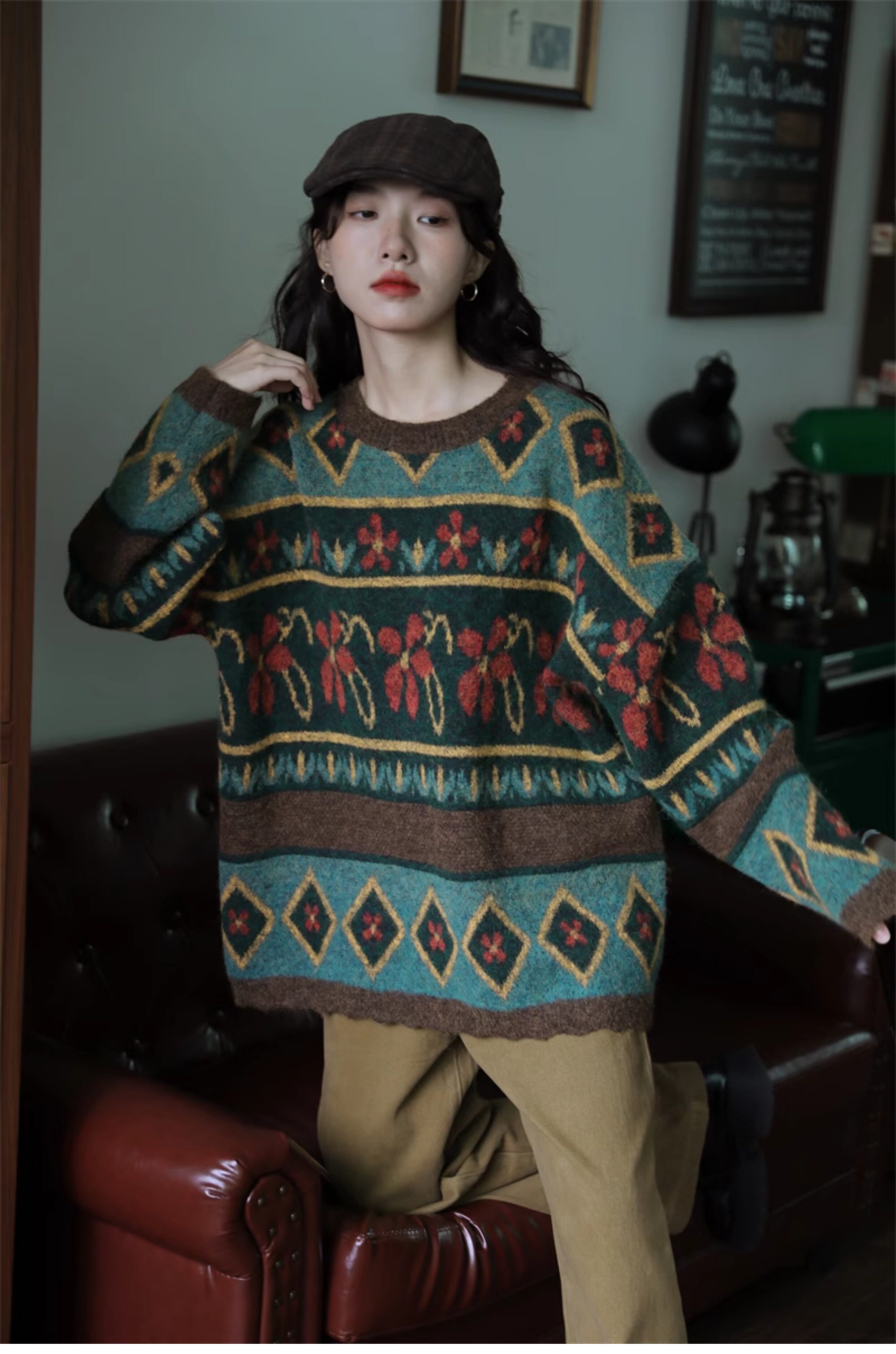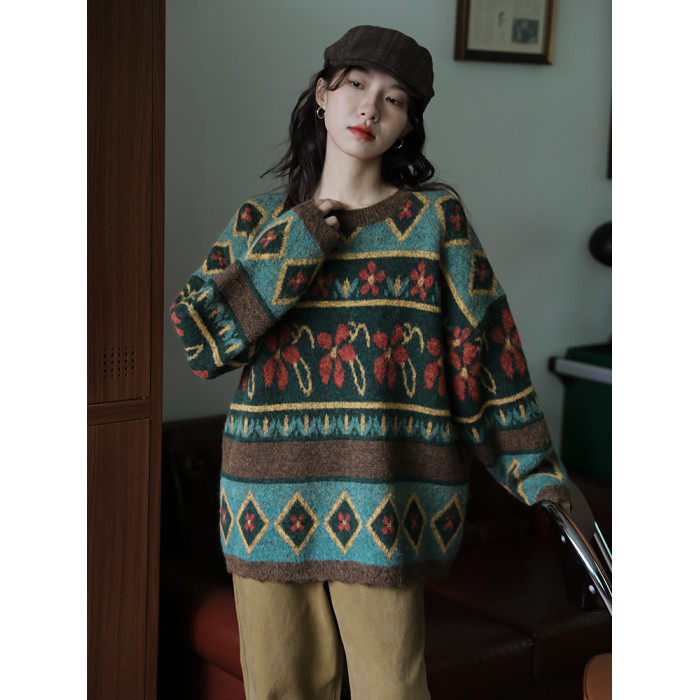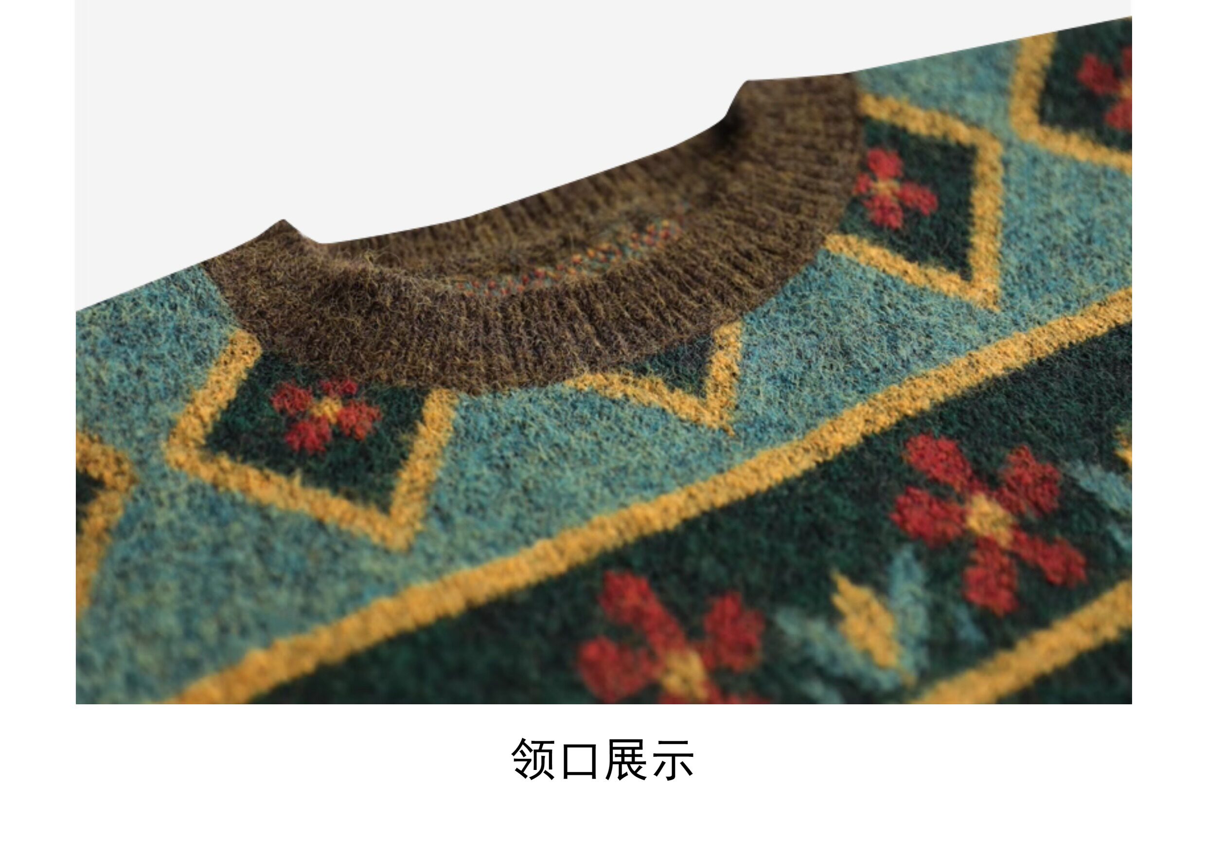 blj快時尚港風復古聖誕綠色加厚圓領套頭毛衣女秋冬新款氣質上衣