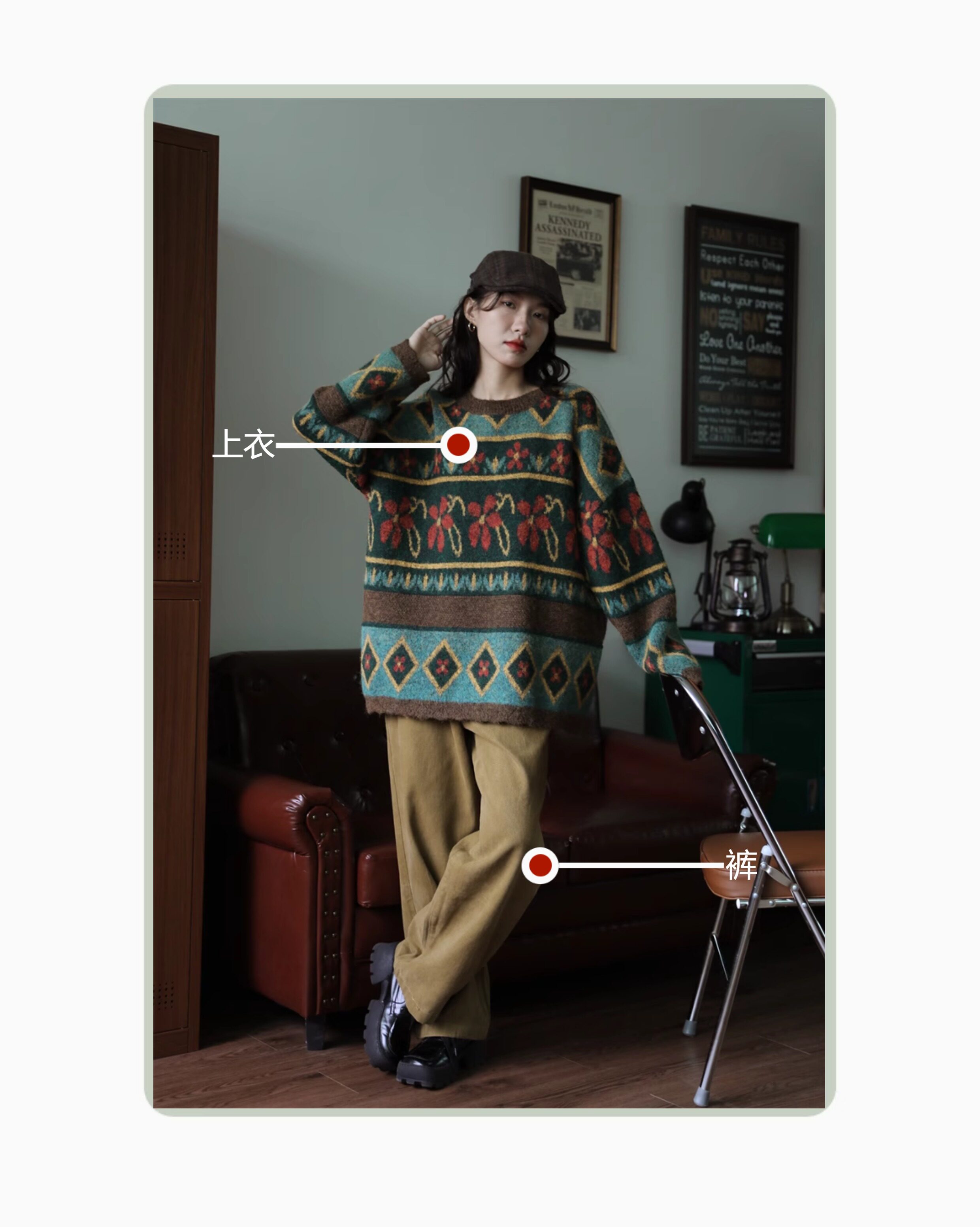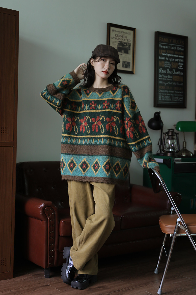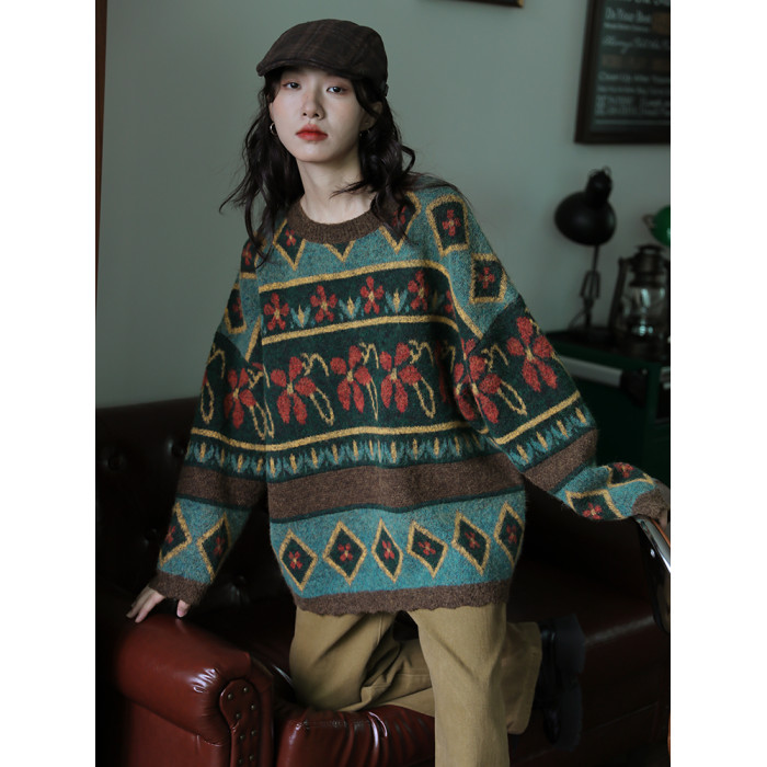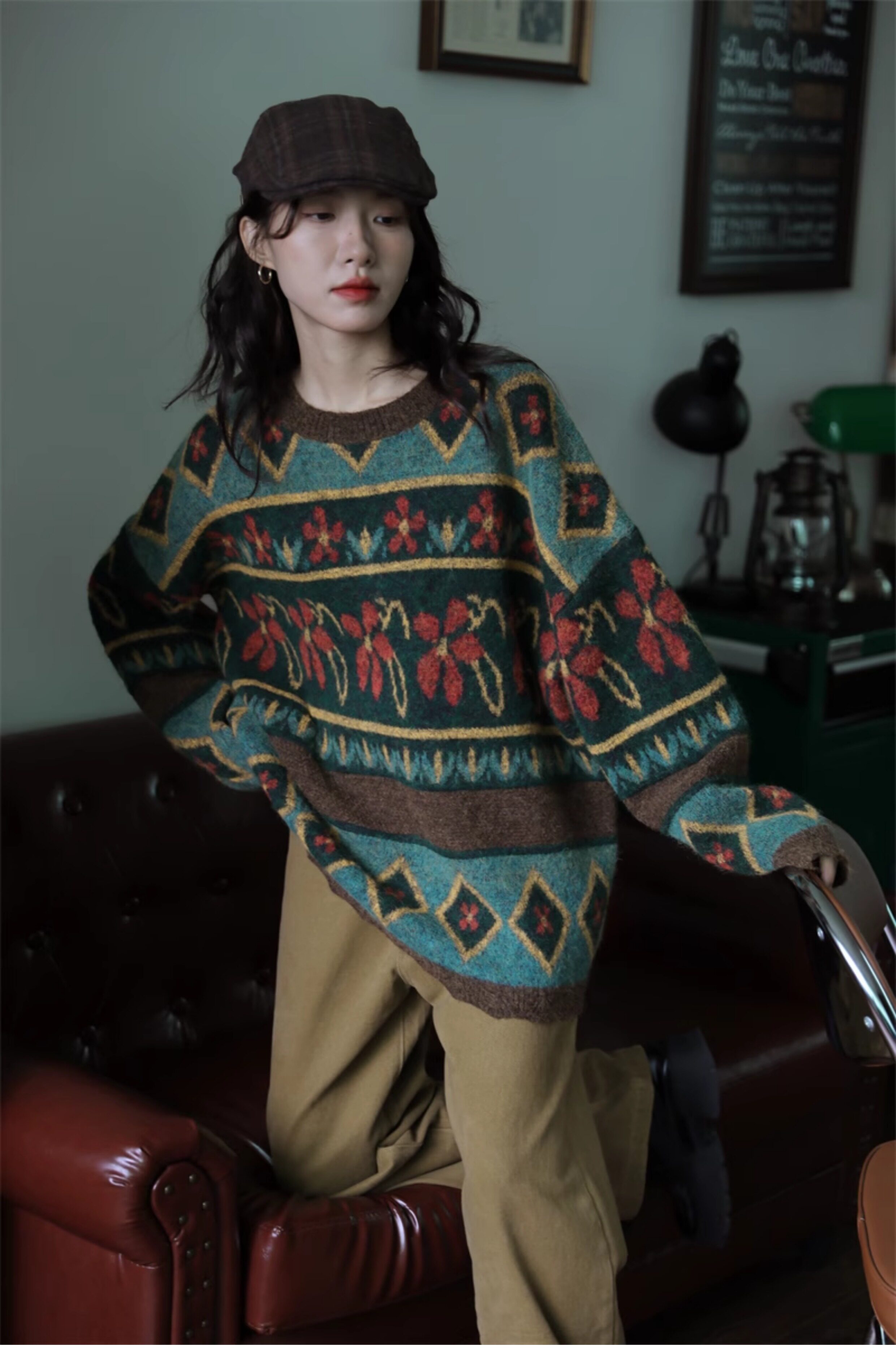 blj快時尚港風復古聖誕綠色加厚圓領套頭毛衣女秋冬新款氣質上衣