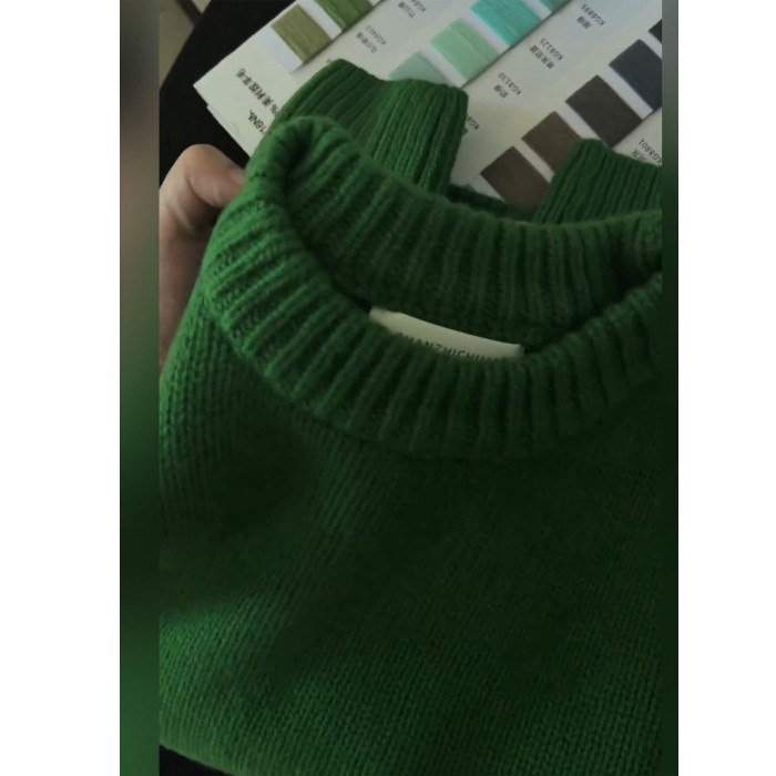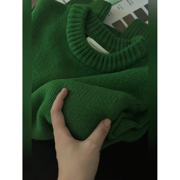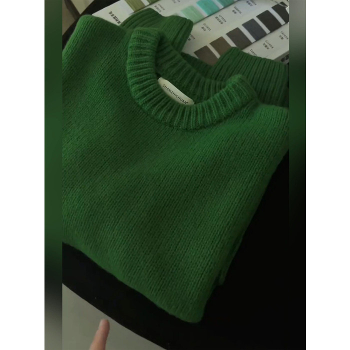 氛圍感聖誕綠色毛衣女秋冬季寬松加厚高級感慵懶風套頭針織衫上衣