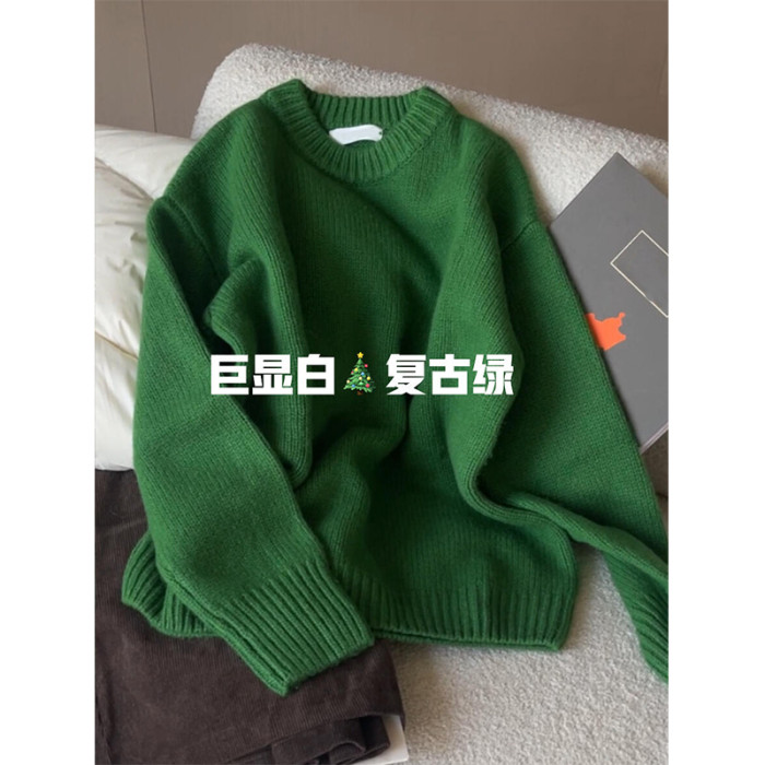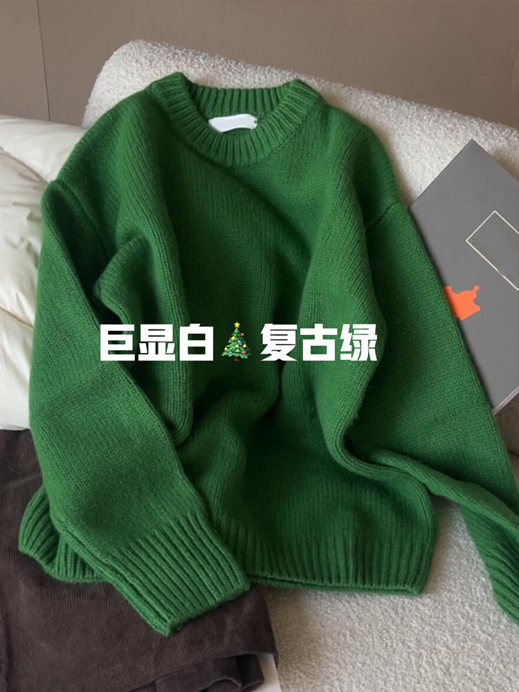 氛圍感聖誕綠色毛衣女秋冬季寬松加厚高級感慵懶風套頭針織衫上衣