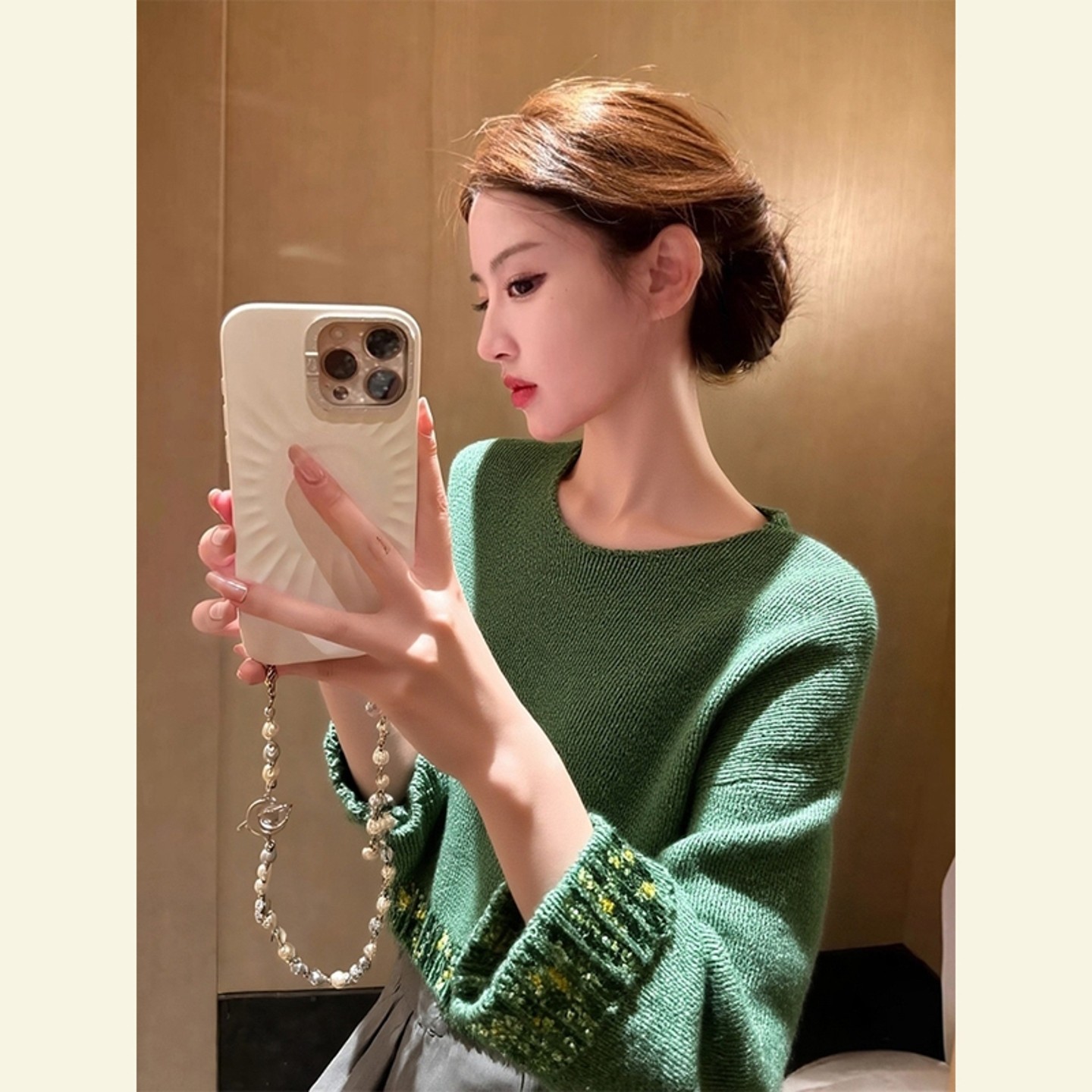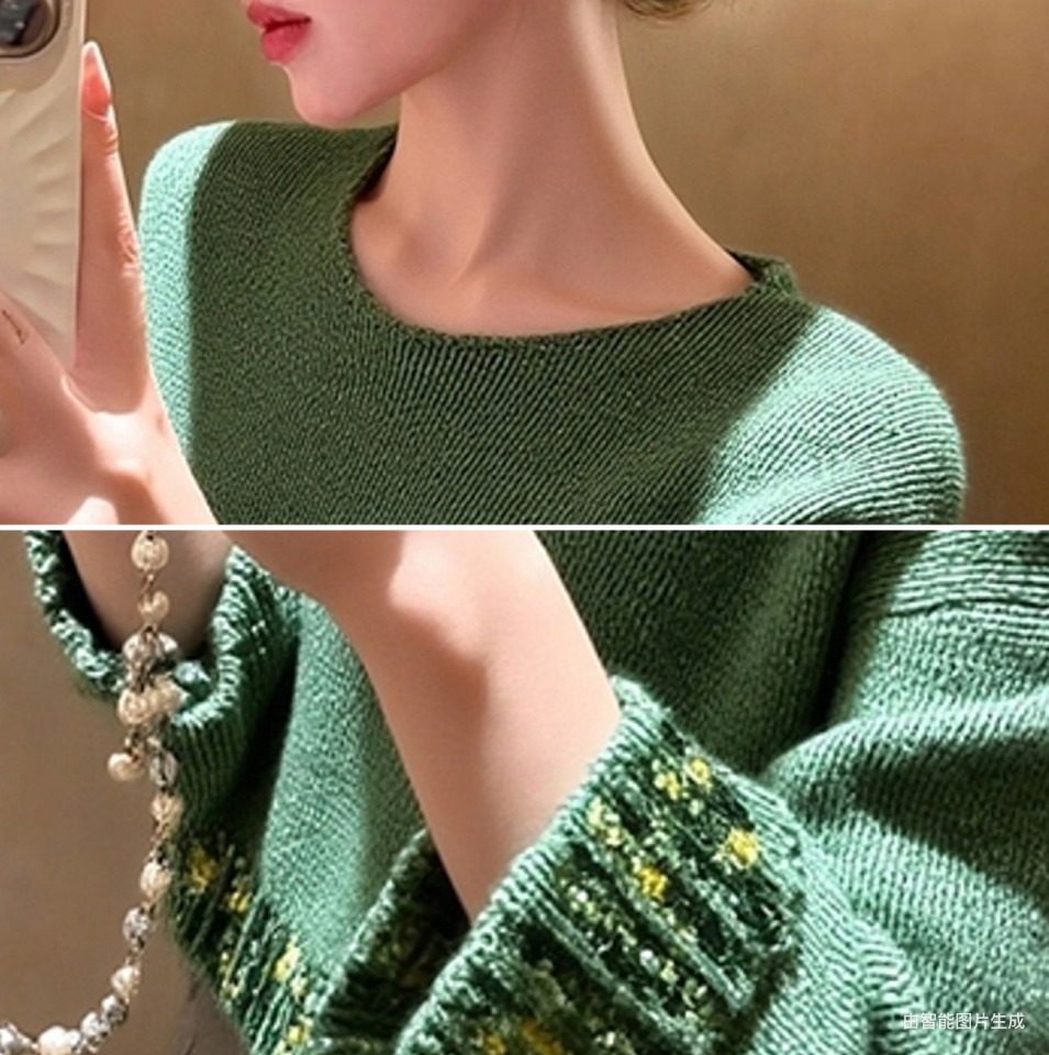 ()高知穿搭氣質女士上衣絕美巨好看復古聖誕綠亮片拼接毛衣