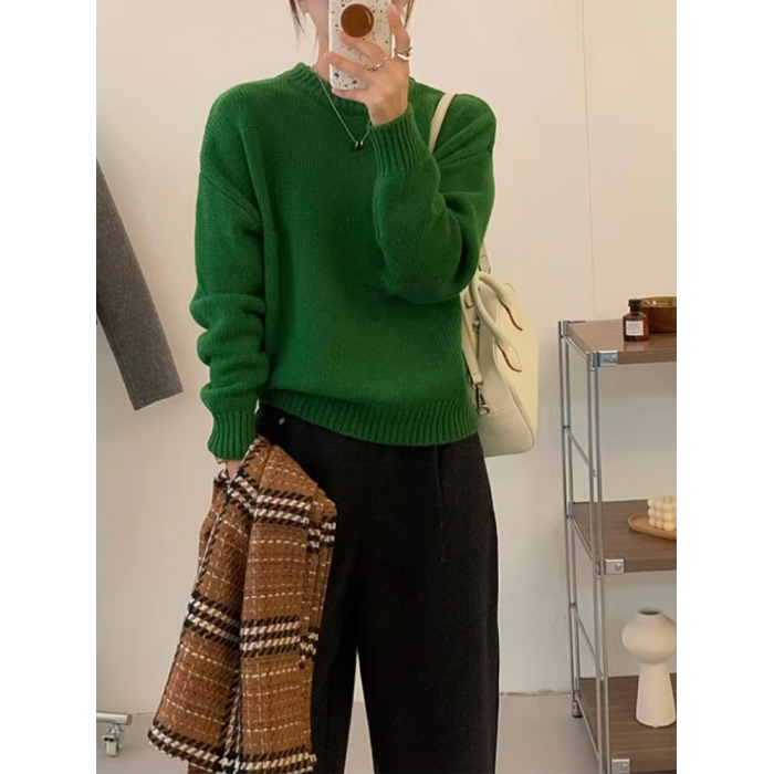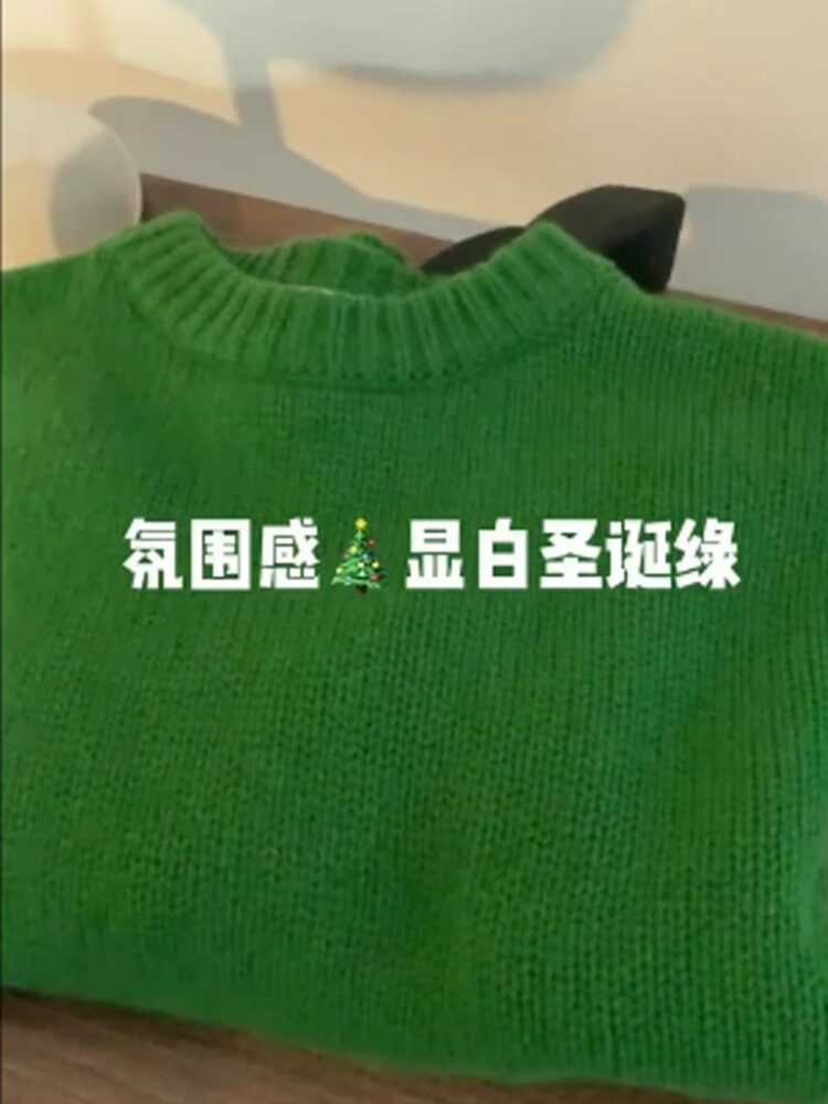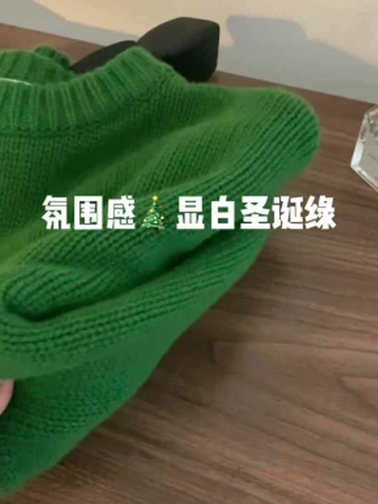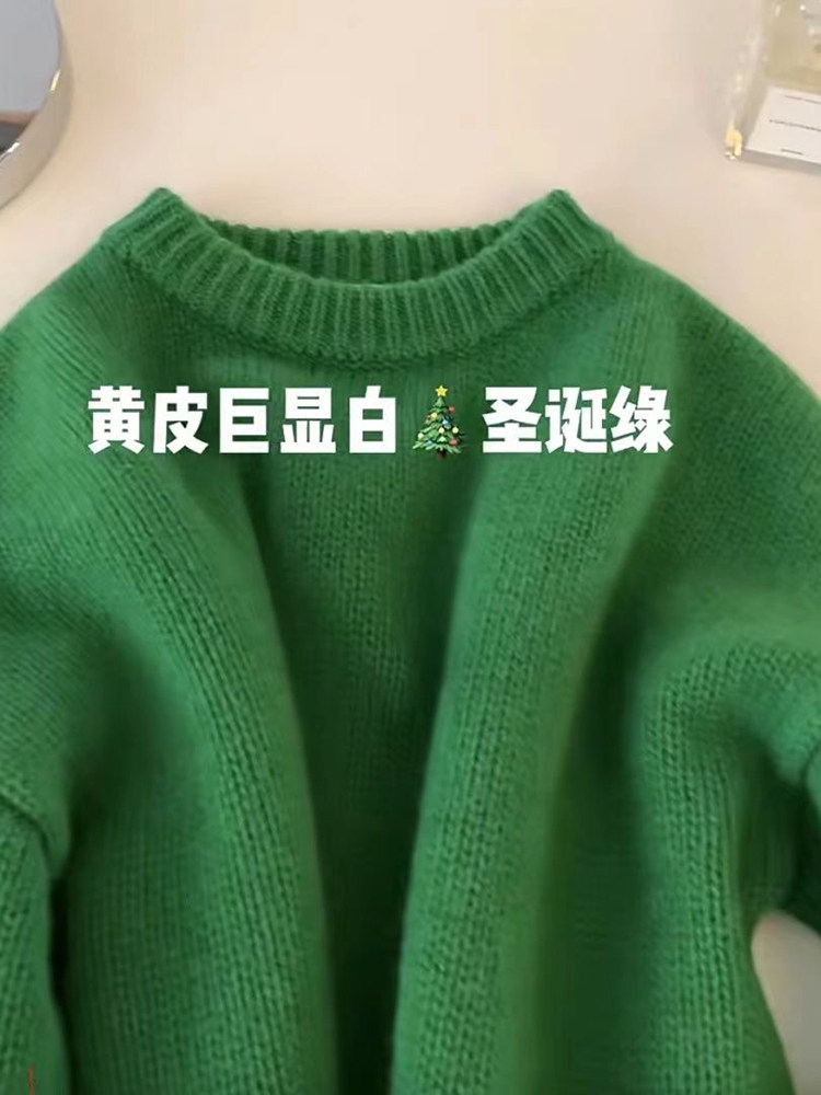 氛圍感聖誕綠色毛衣女秋冬季寬松加厚高級感慵懶風套頭針織衫上衣
