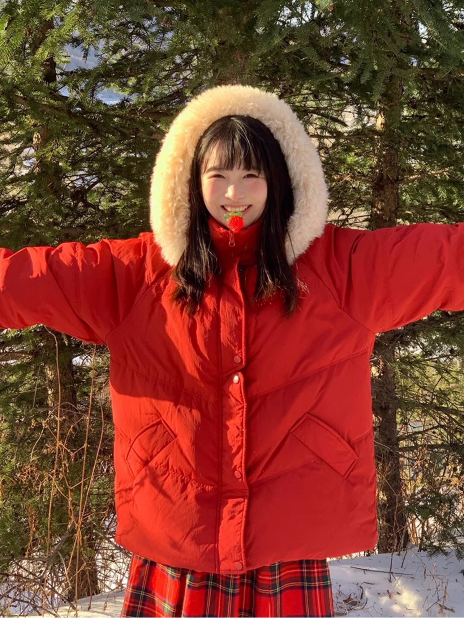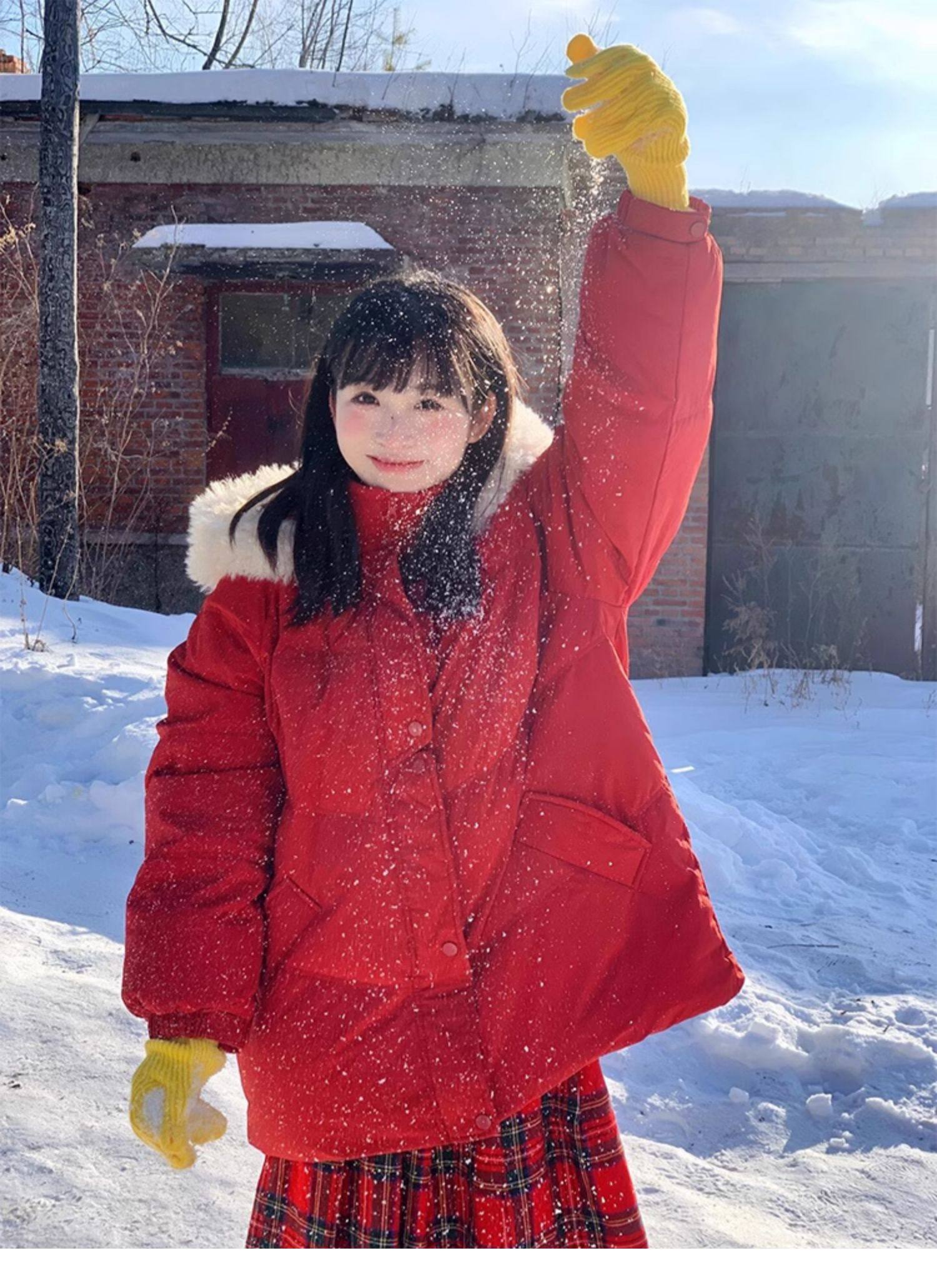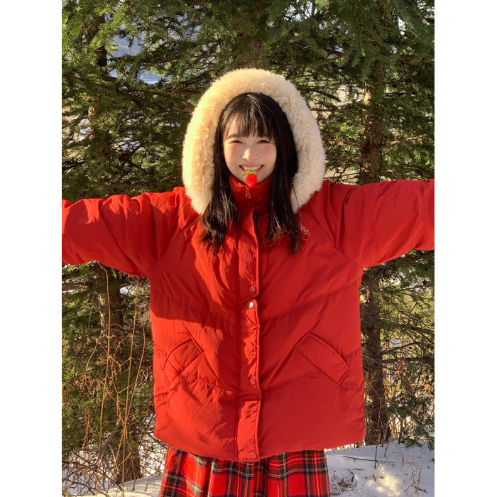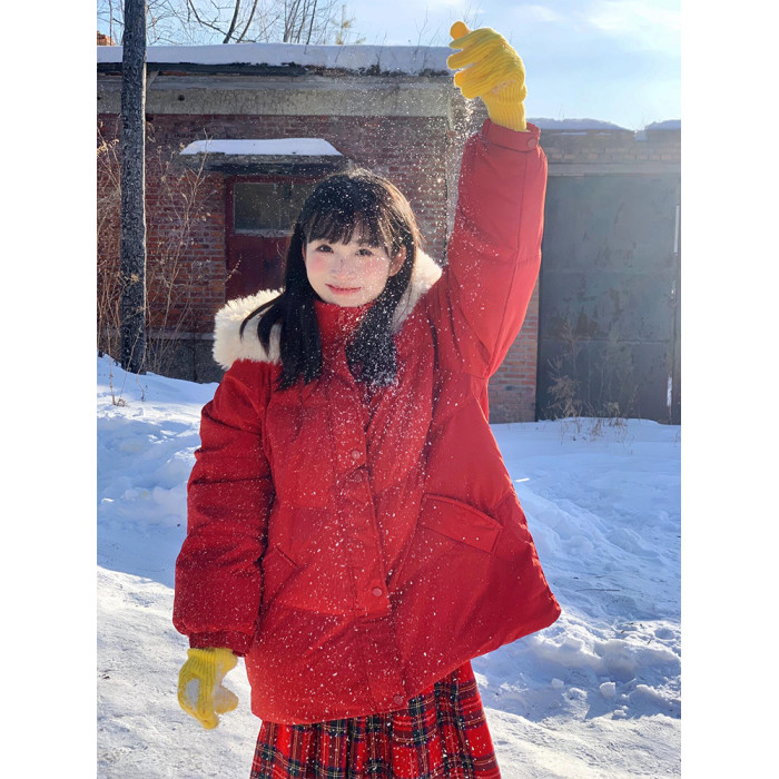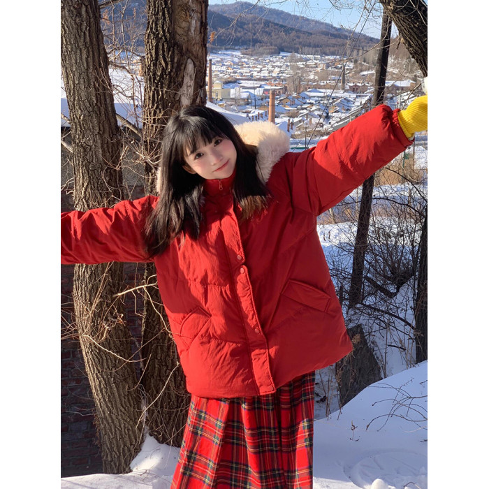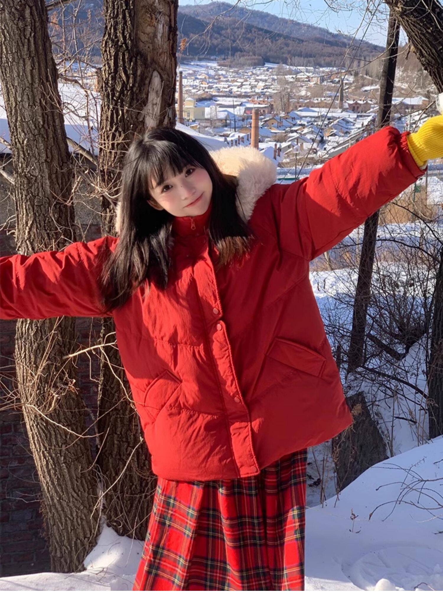 大碼女裝聖誕紅超好看短款羽絨棉服女胖mm冬季加厚甜美麵包服外套