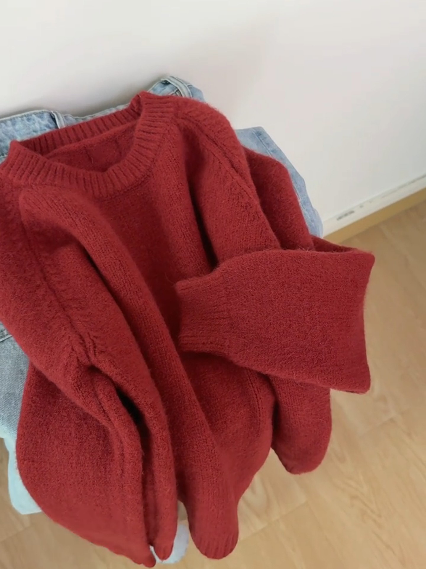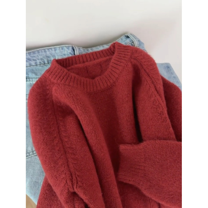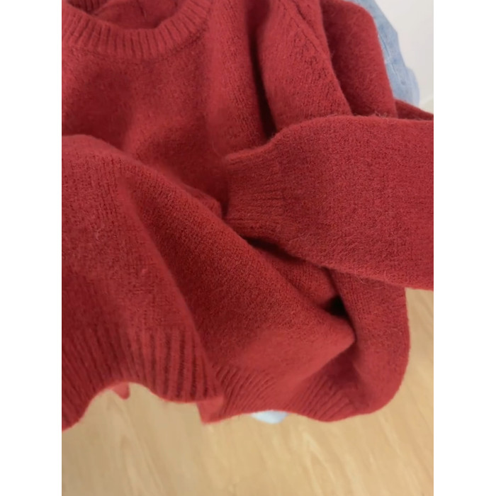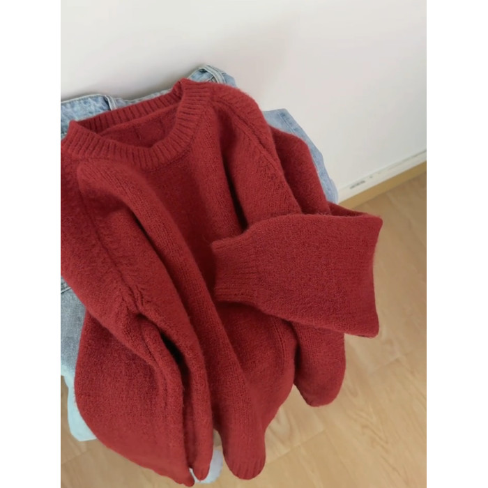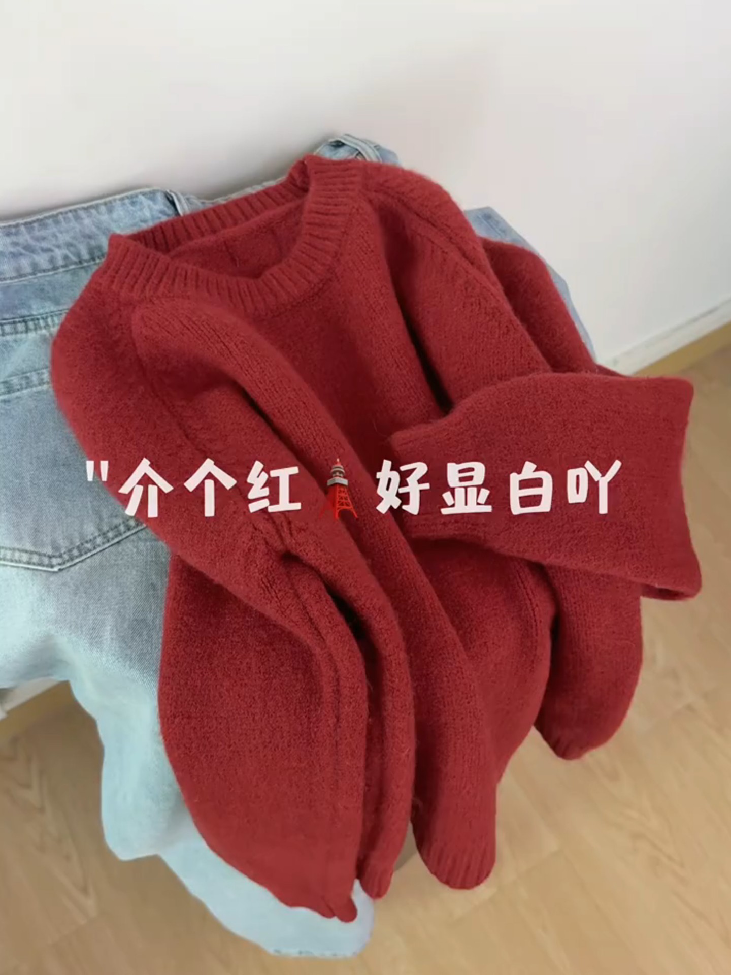 復古高級感聖誕紅色浣熊絨套頭毛衣女秋冬季慵懶風加厚新年針織衫