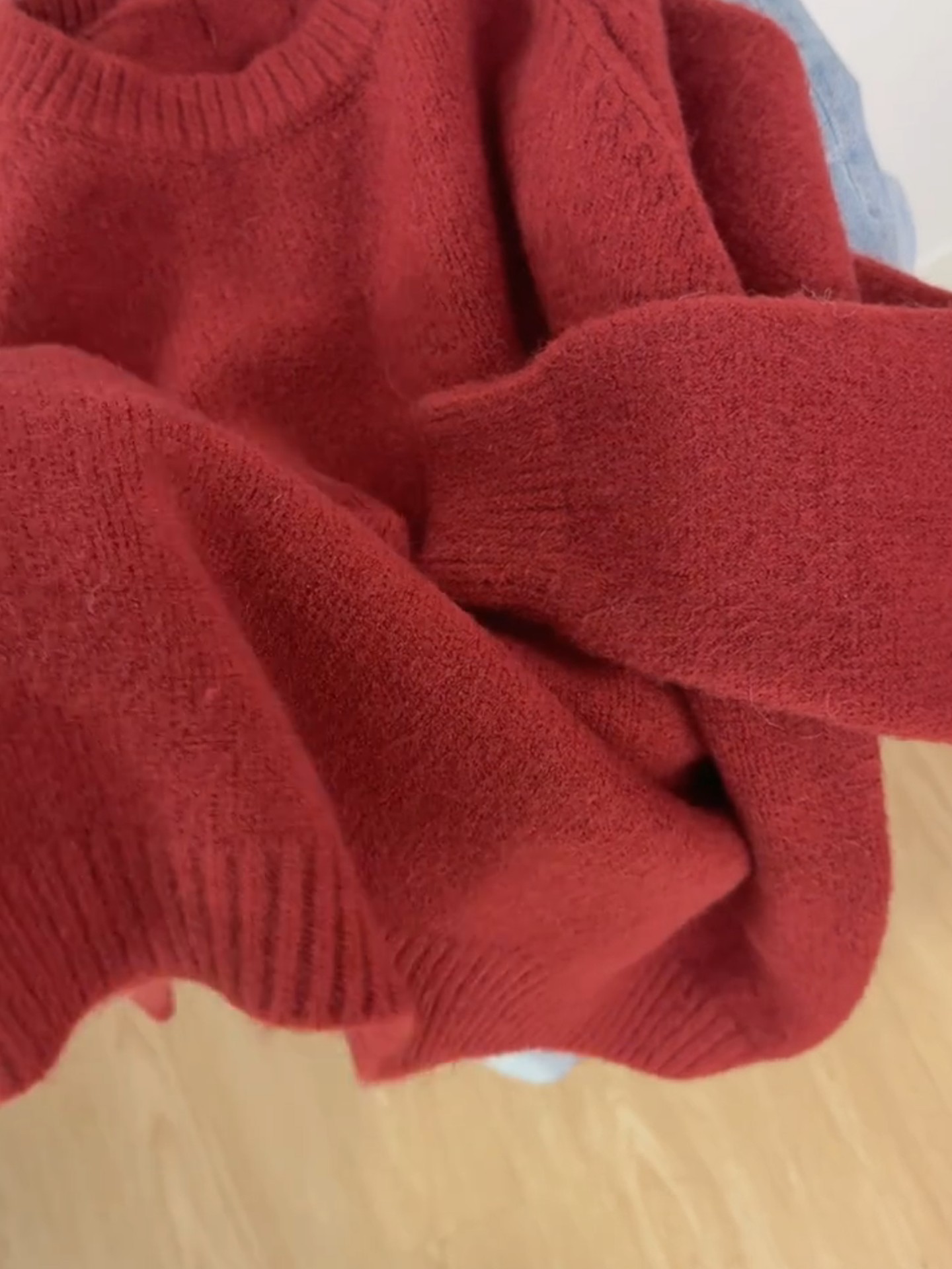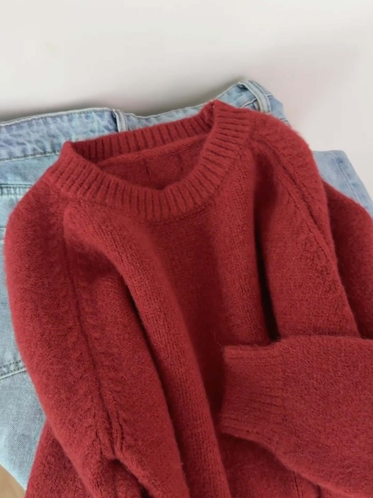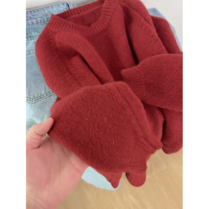 復古高級感聖誕紅色浣熊絨套頭毛衣女秋冬季慵懶風加厚新年針織衫