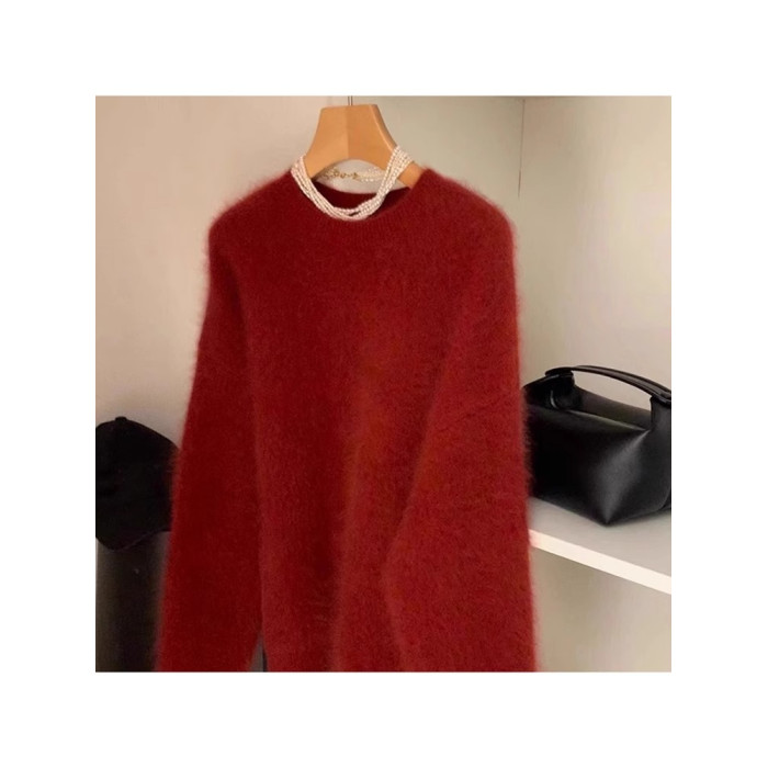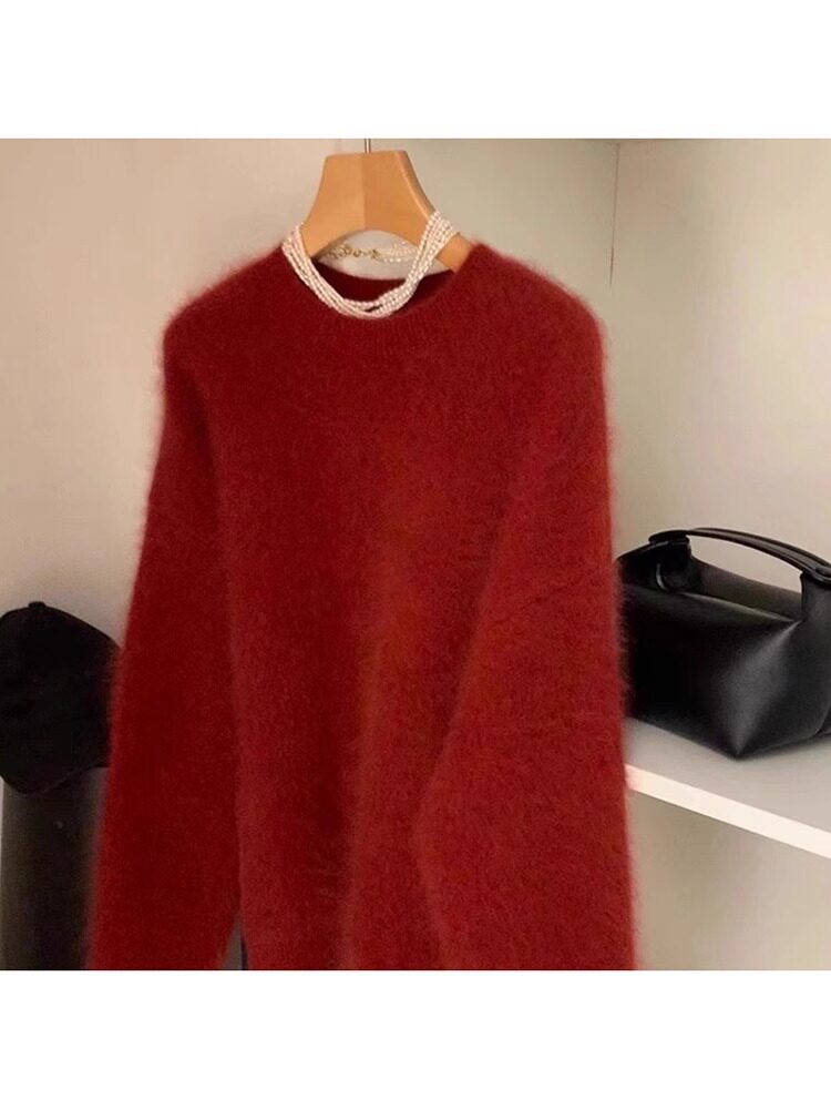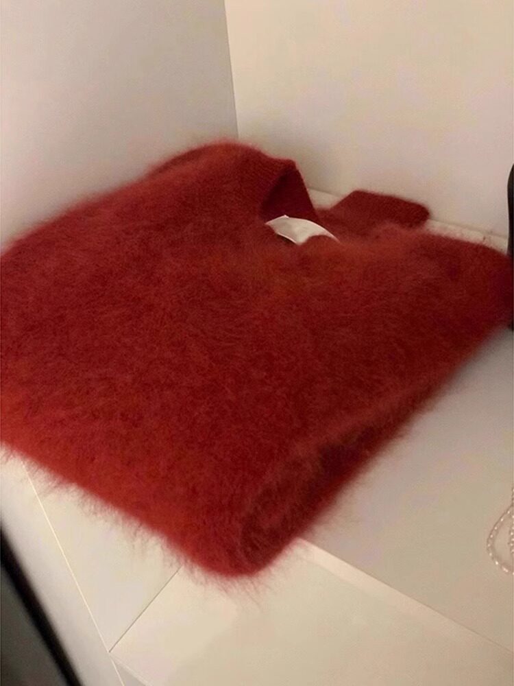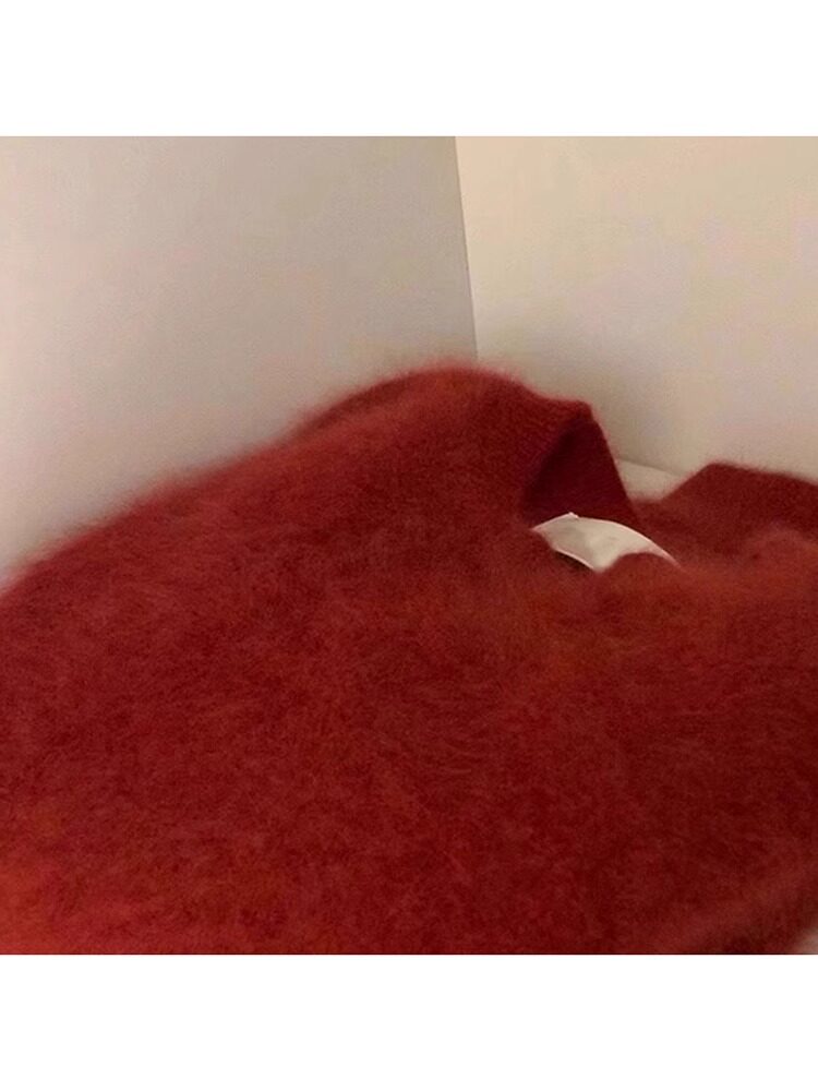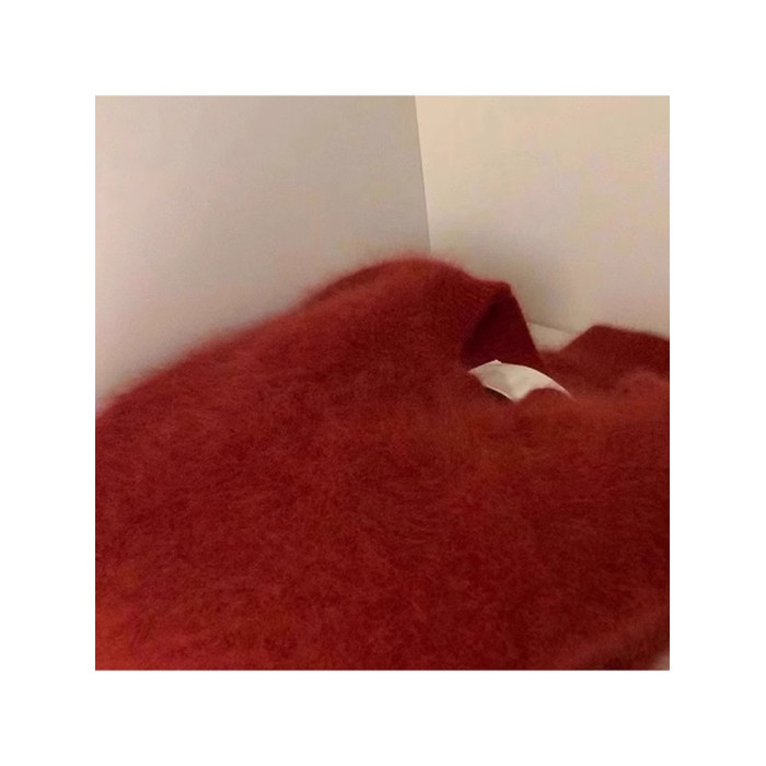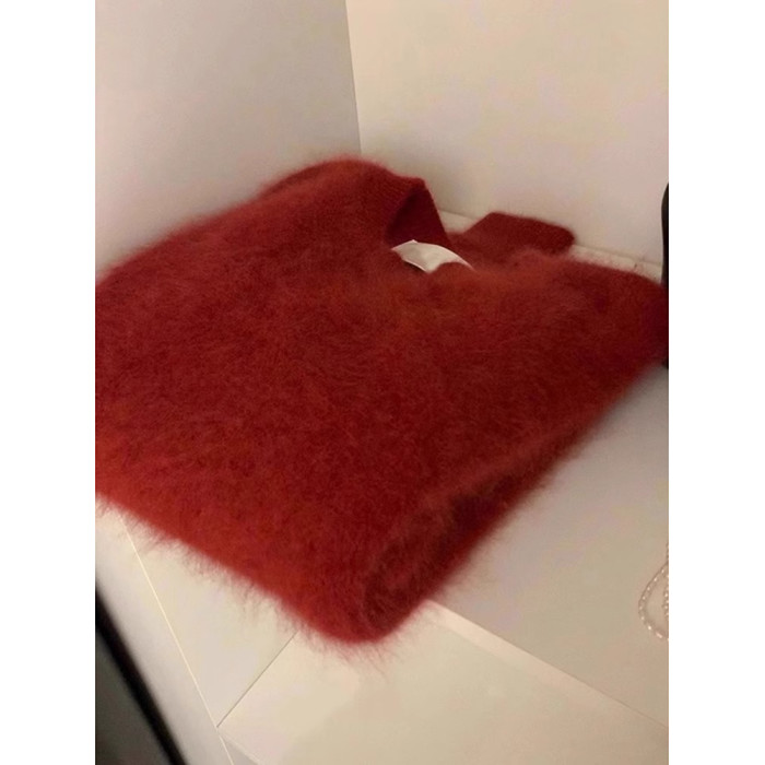 新年聖誕紅色水貂絨毛衣女秋冬高級感超好看針織衫歐貨漂亮上衣厚