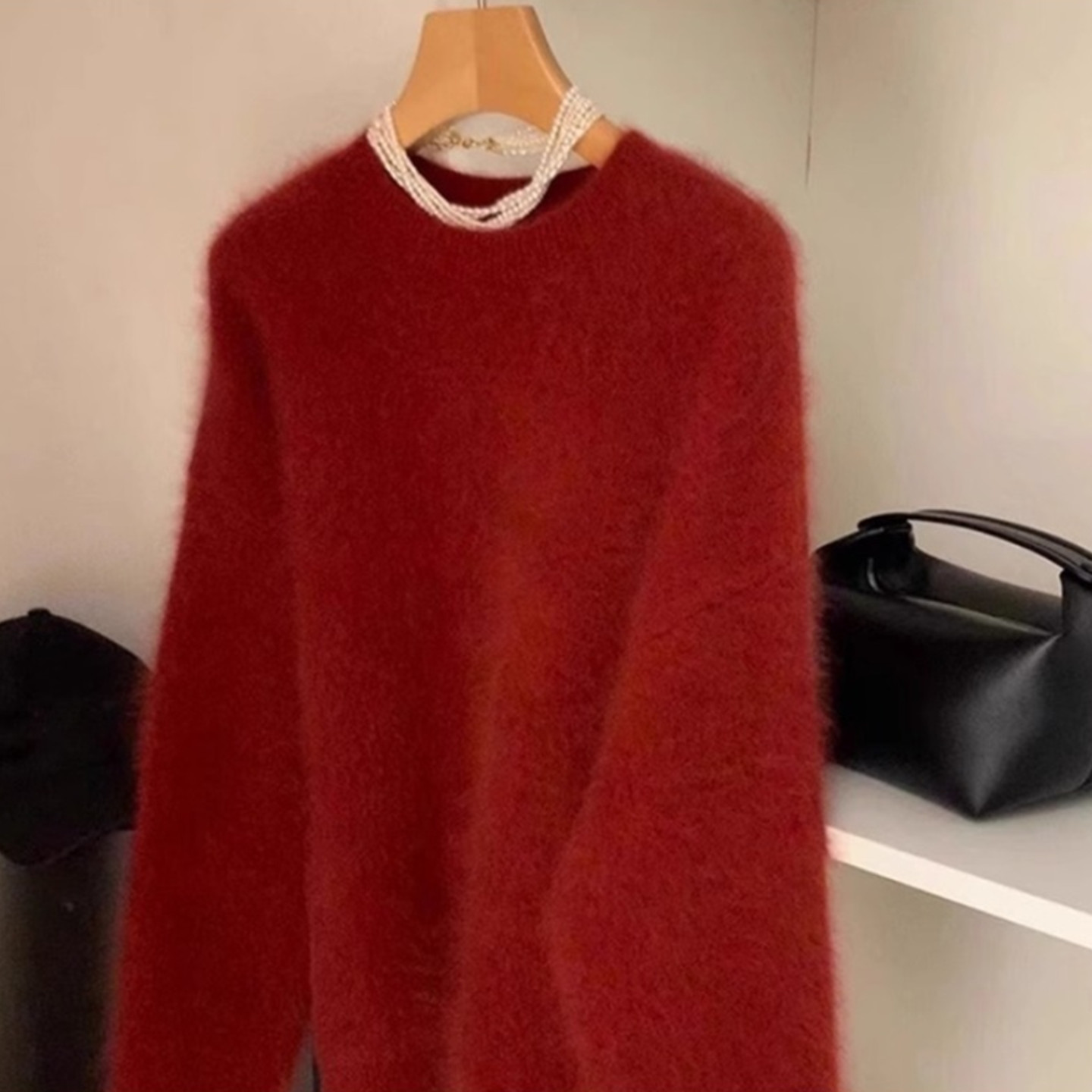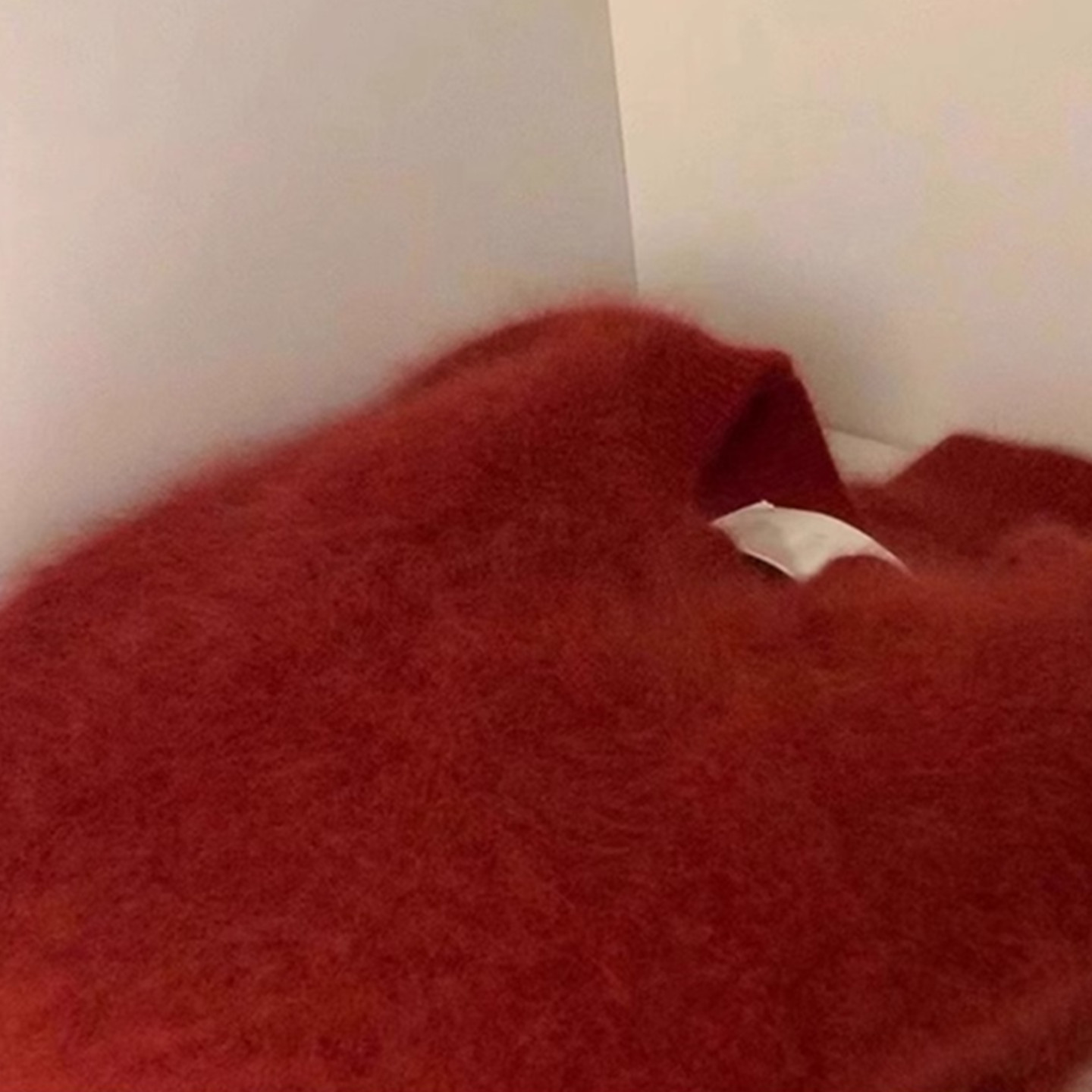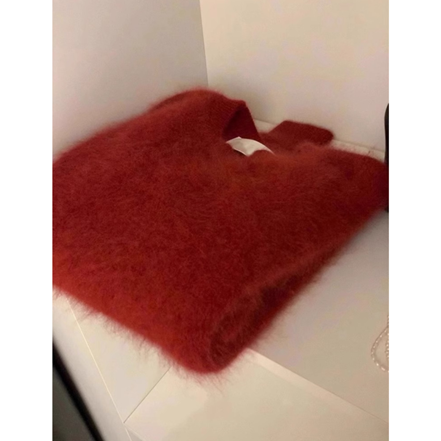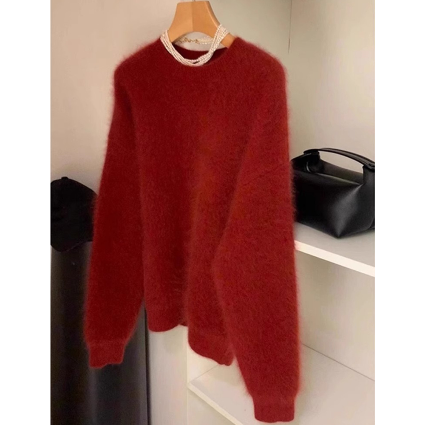 過年本命年紅色套頭毛衣女秋冬慵懶高級感寬松軟糯馬海毛針織上衣