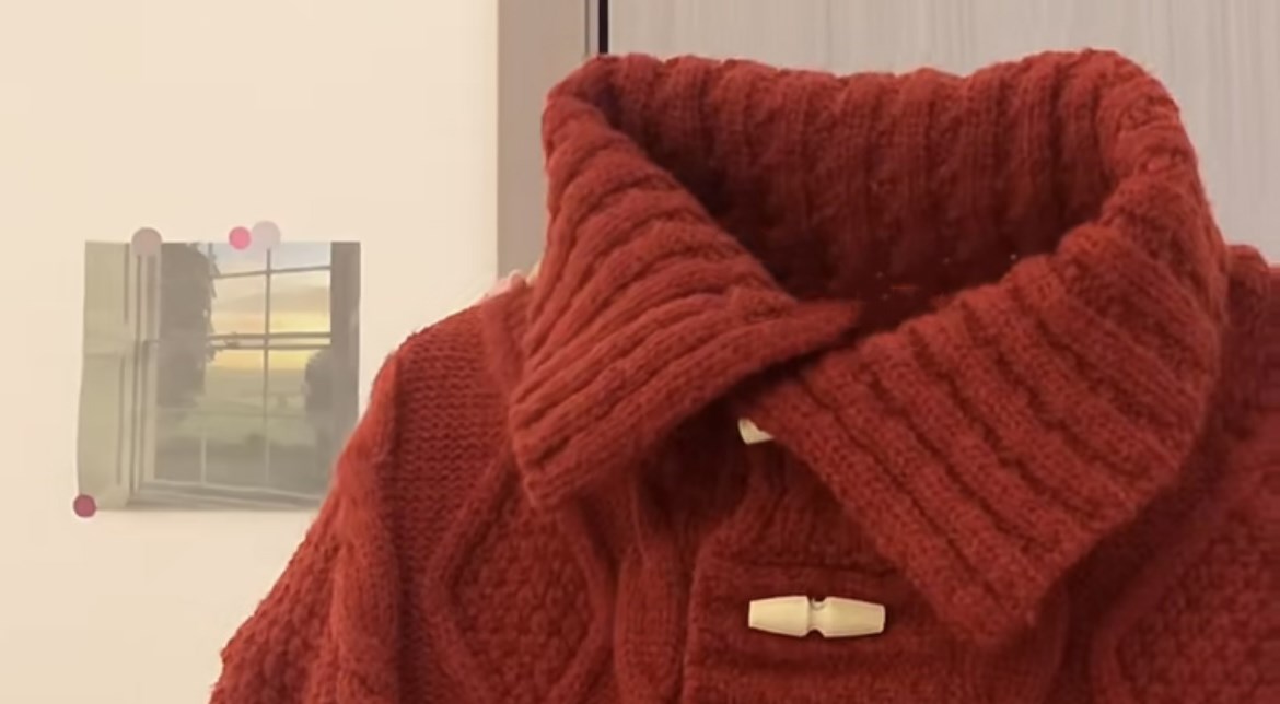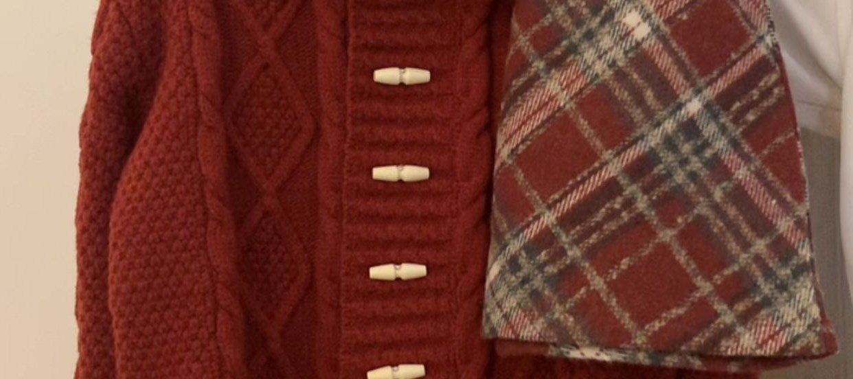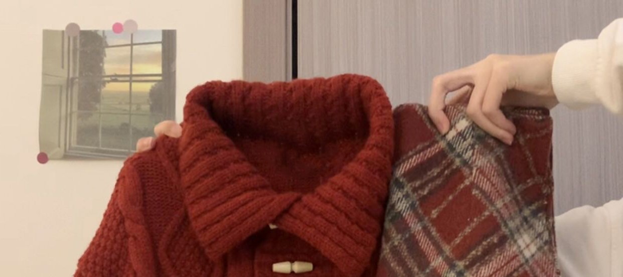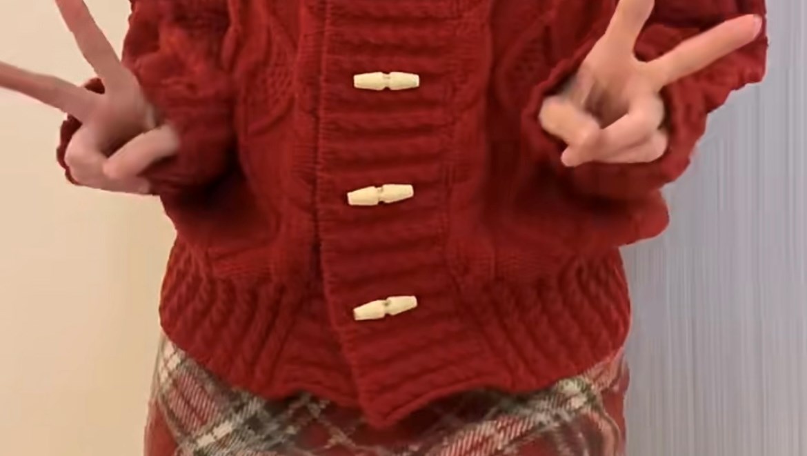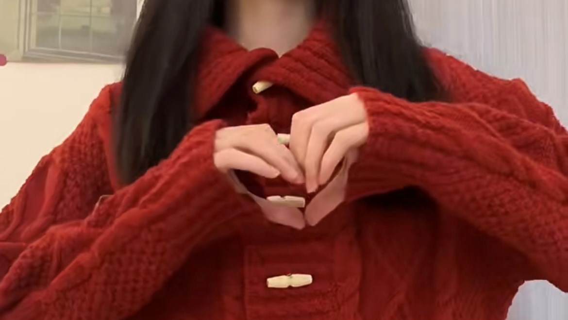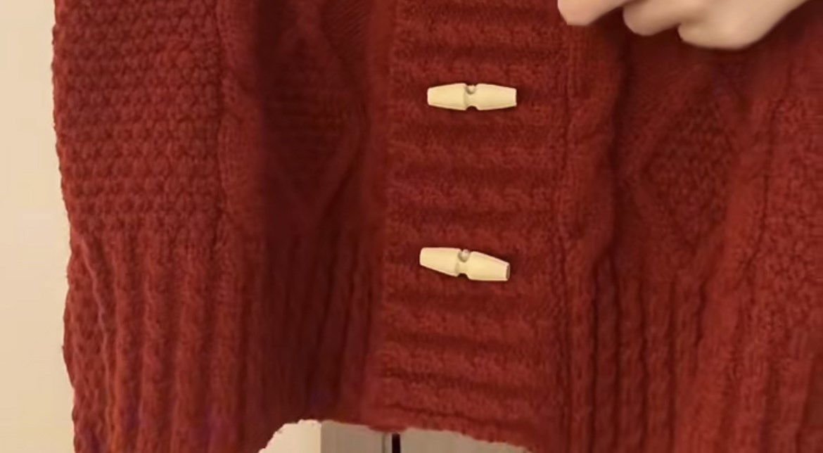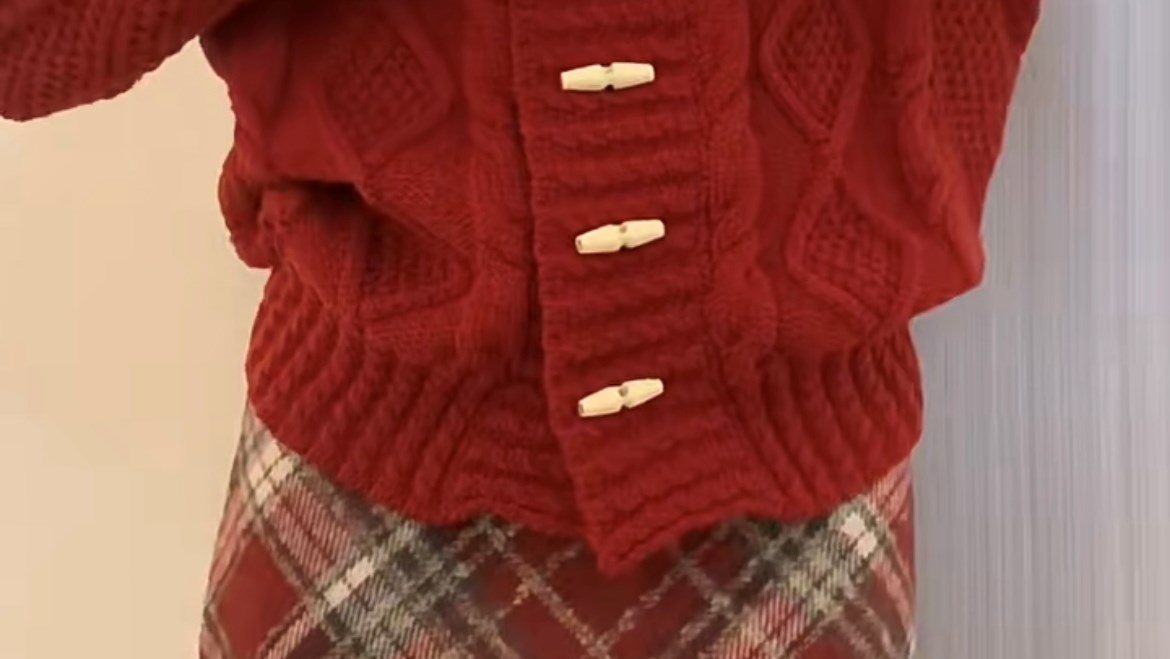 重工學院風聖誕紅色麻花牛角釦毛衣外套女秋冬本命年翻領針織開衫