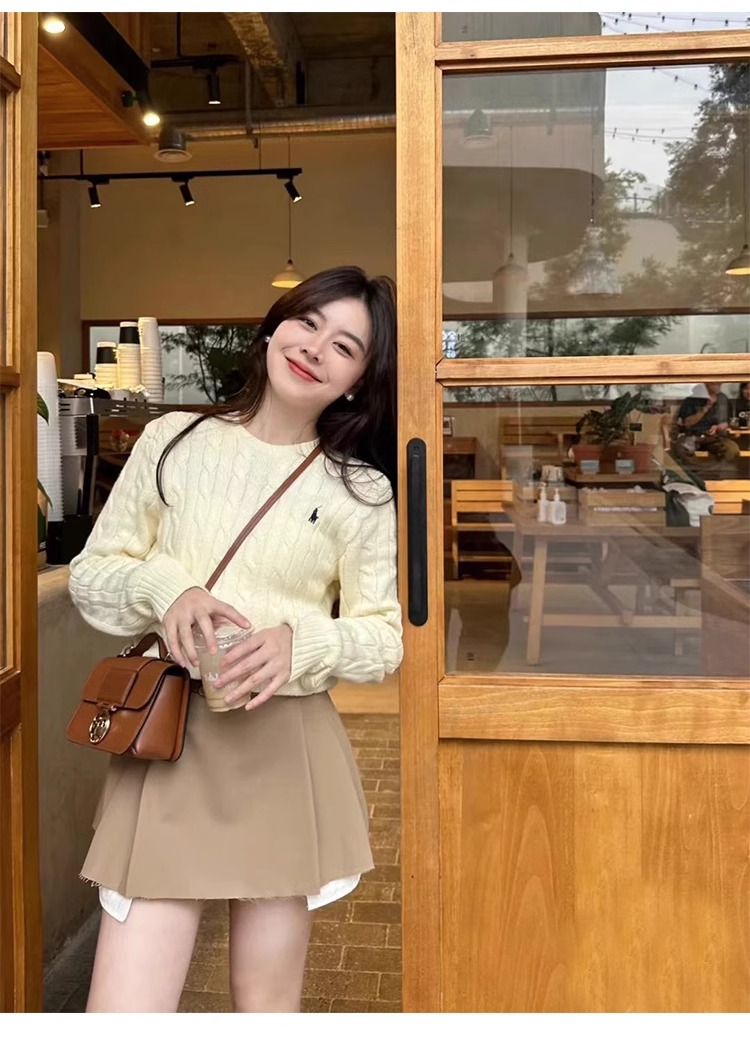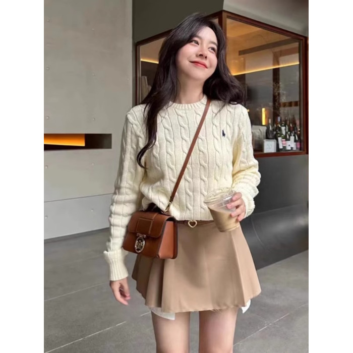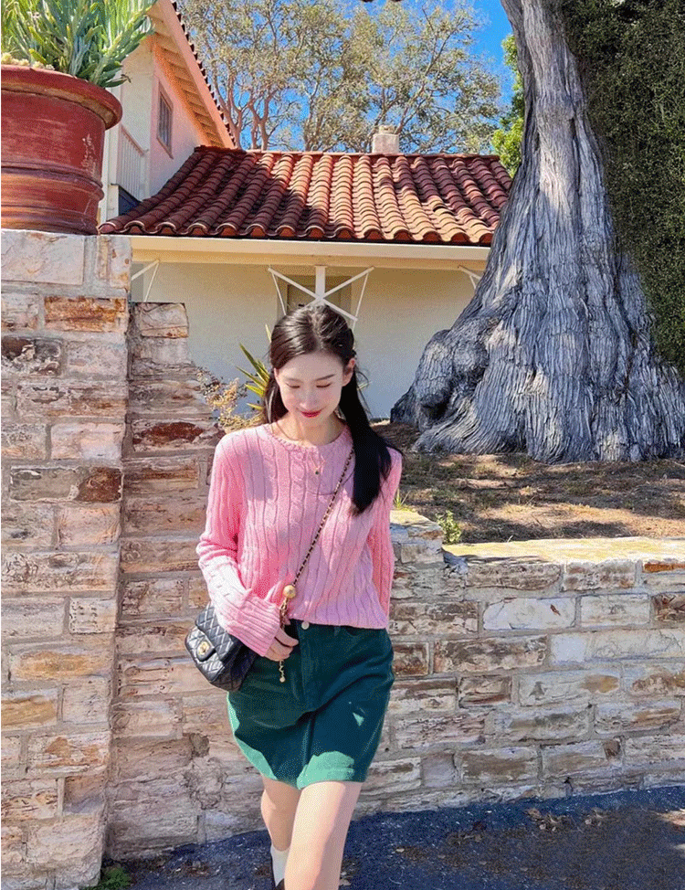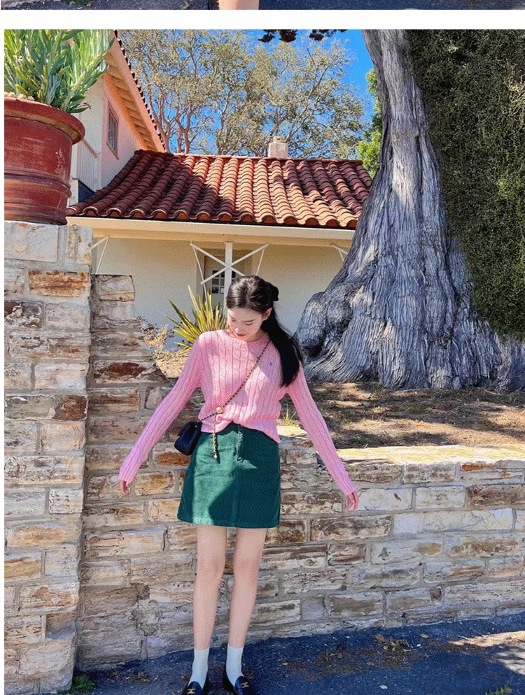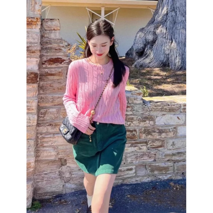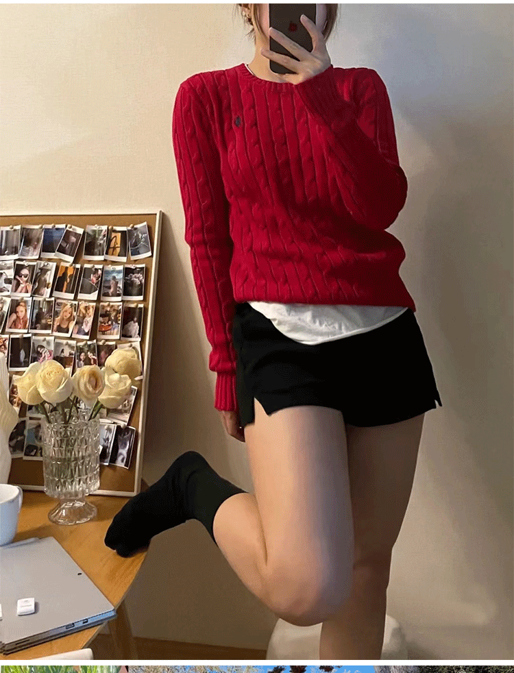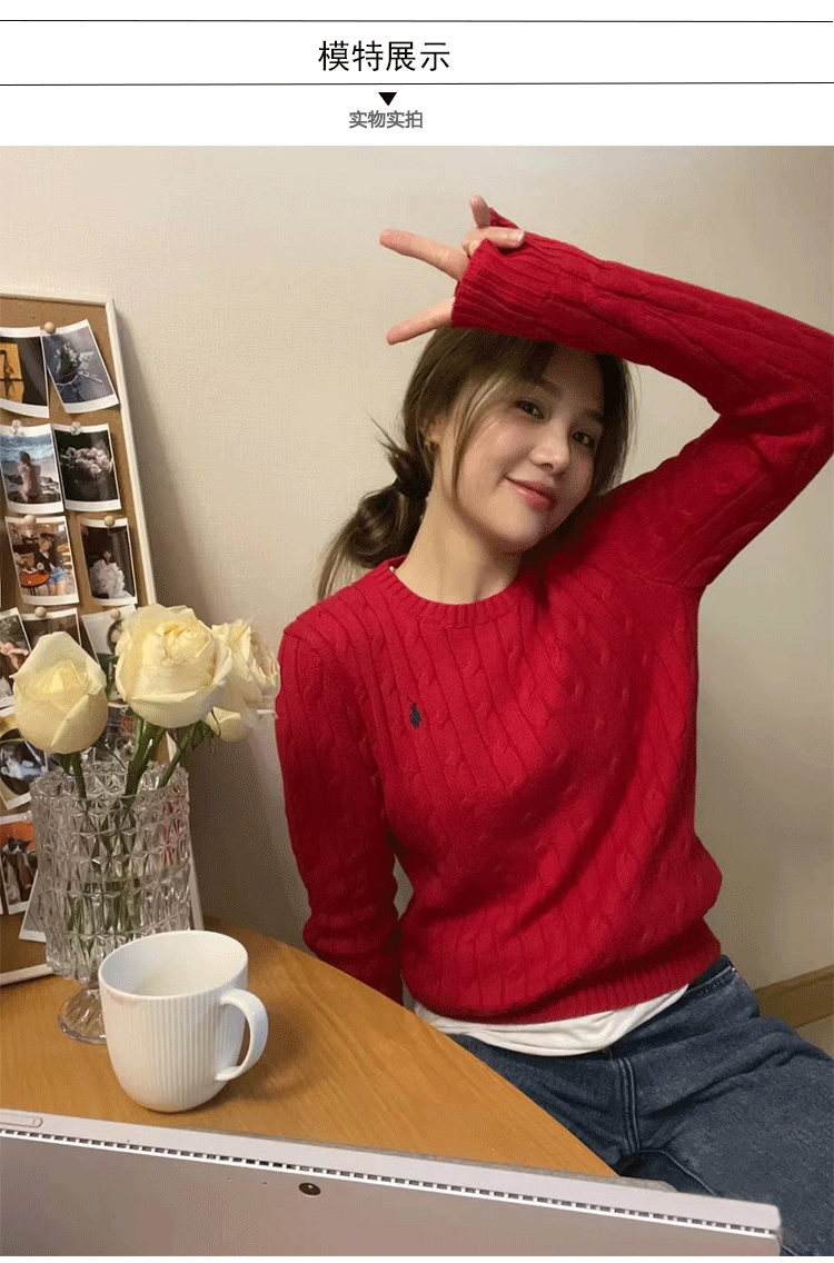 聖誕紅色毛衣女套頭麻花新年本命年圓領針織衫上衣打底衫內搭秋冬