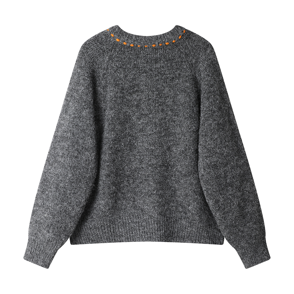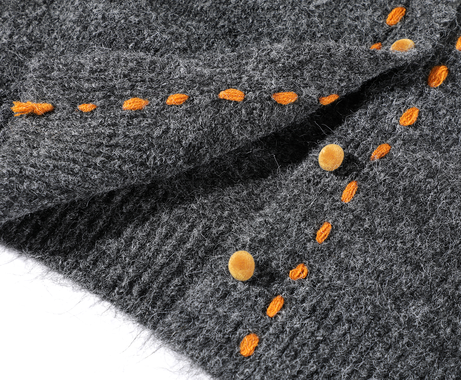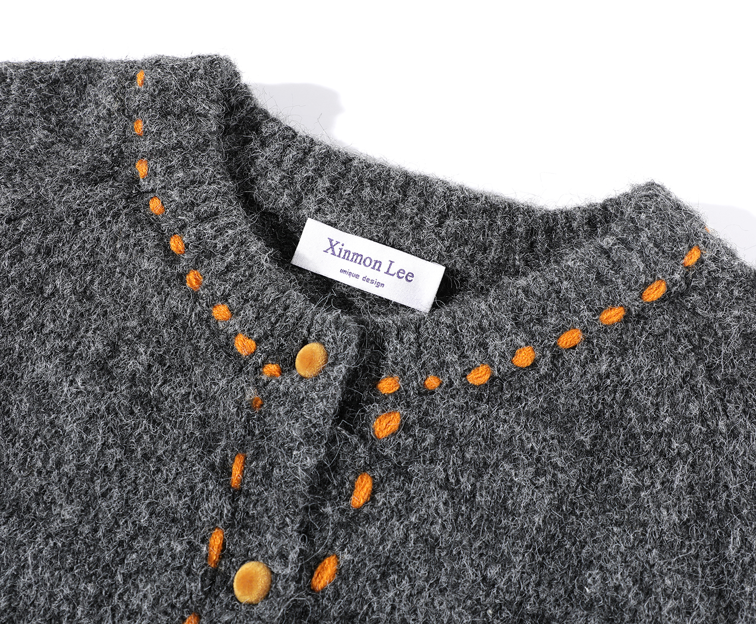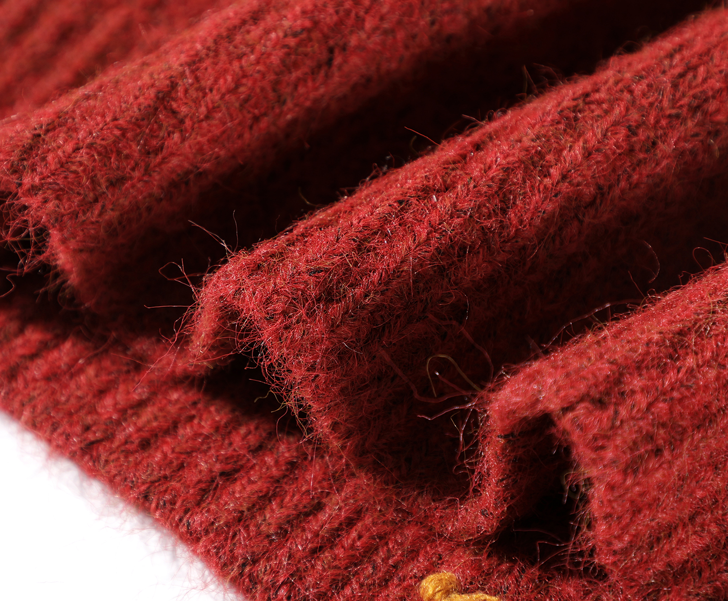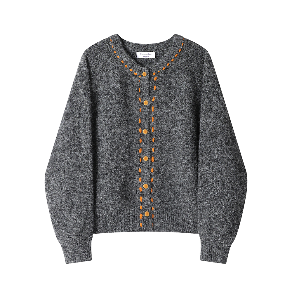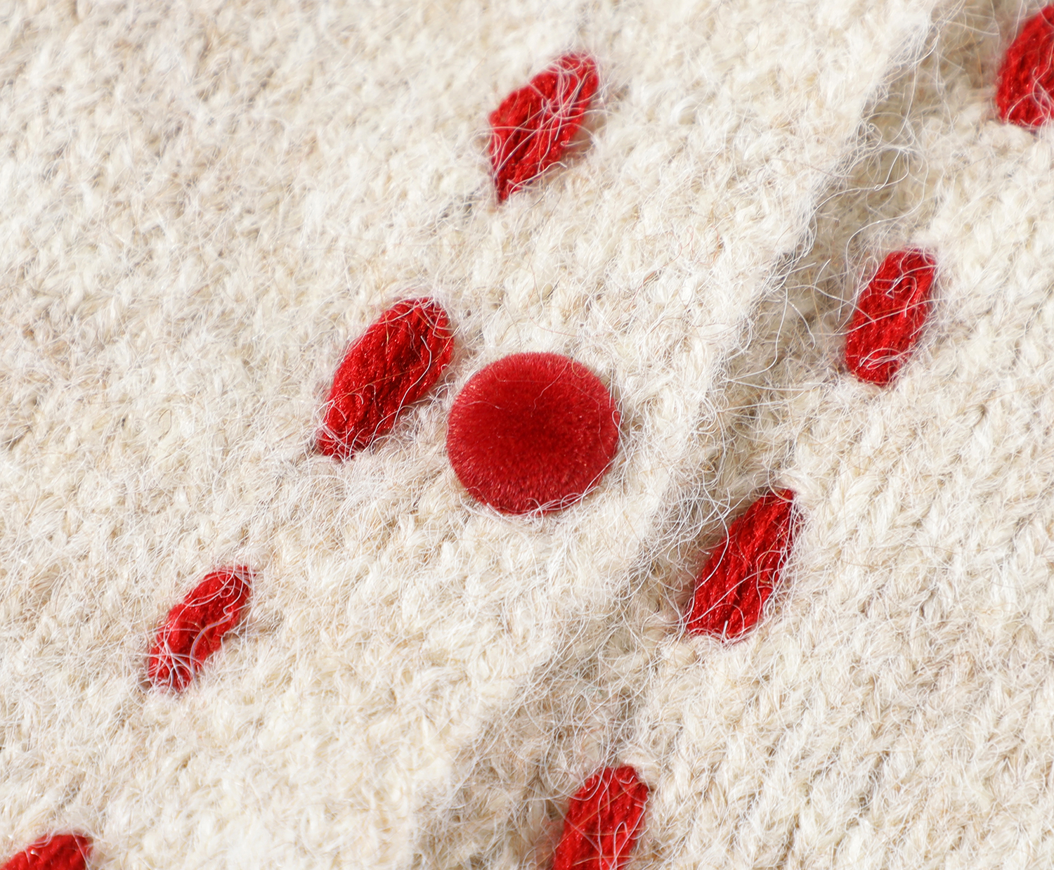 XinmonLee法式復古軟糯虛線絲絨釦圓領開衫冬季聖誕紅色毛衣外套