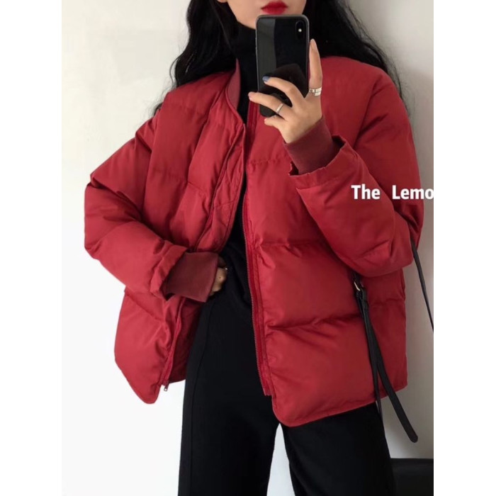 高級感棒球服韓版短款棉衣棉服女2025秋冬季ins保暖聖誕紅色外套