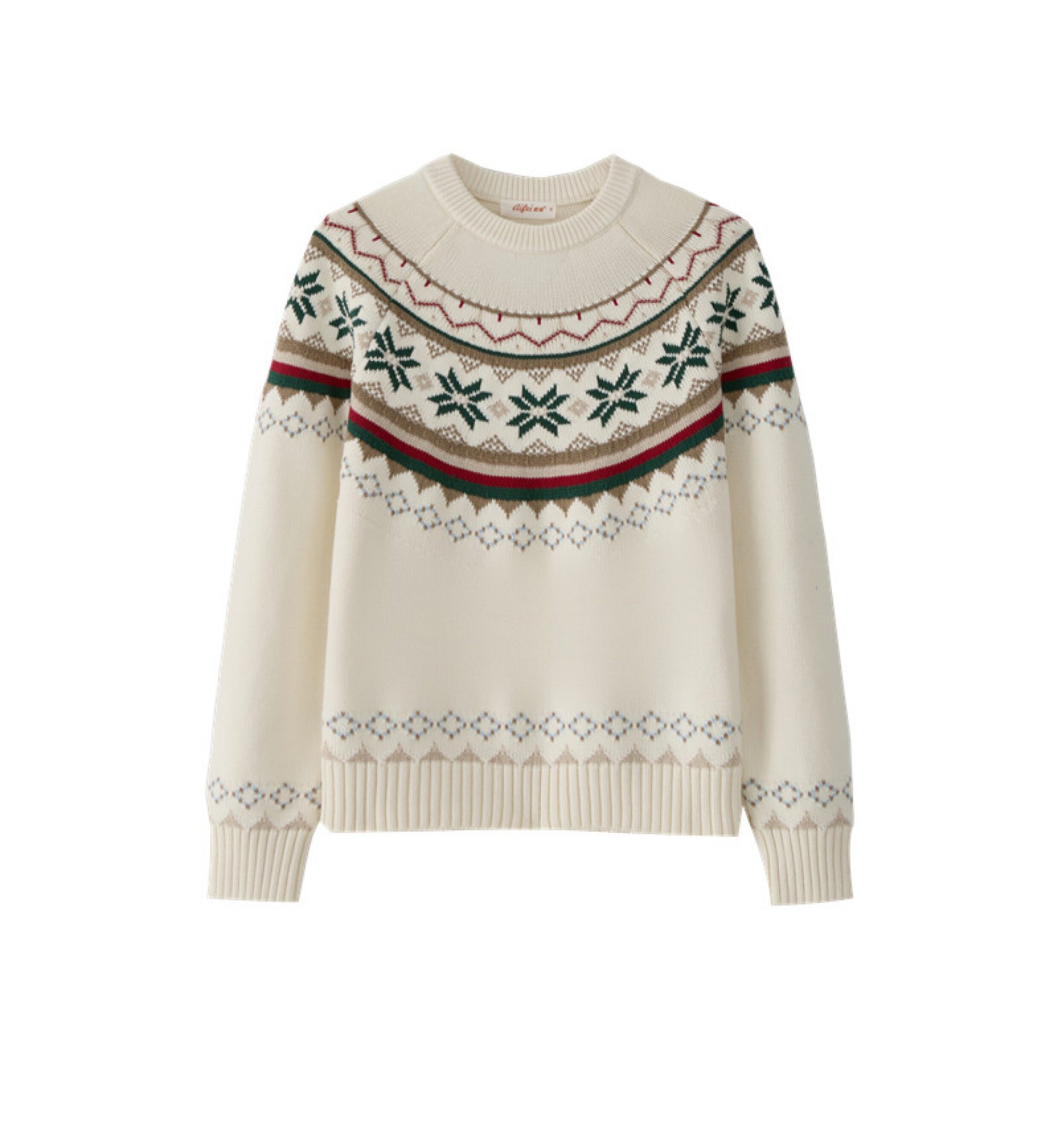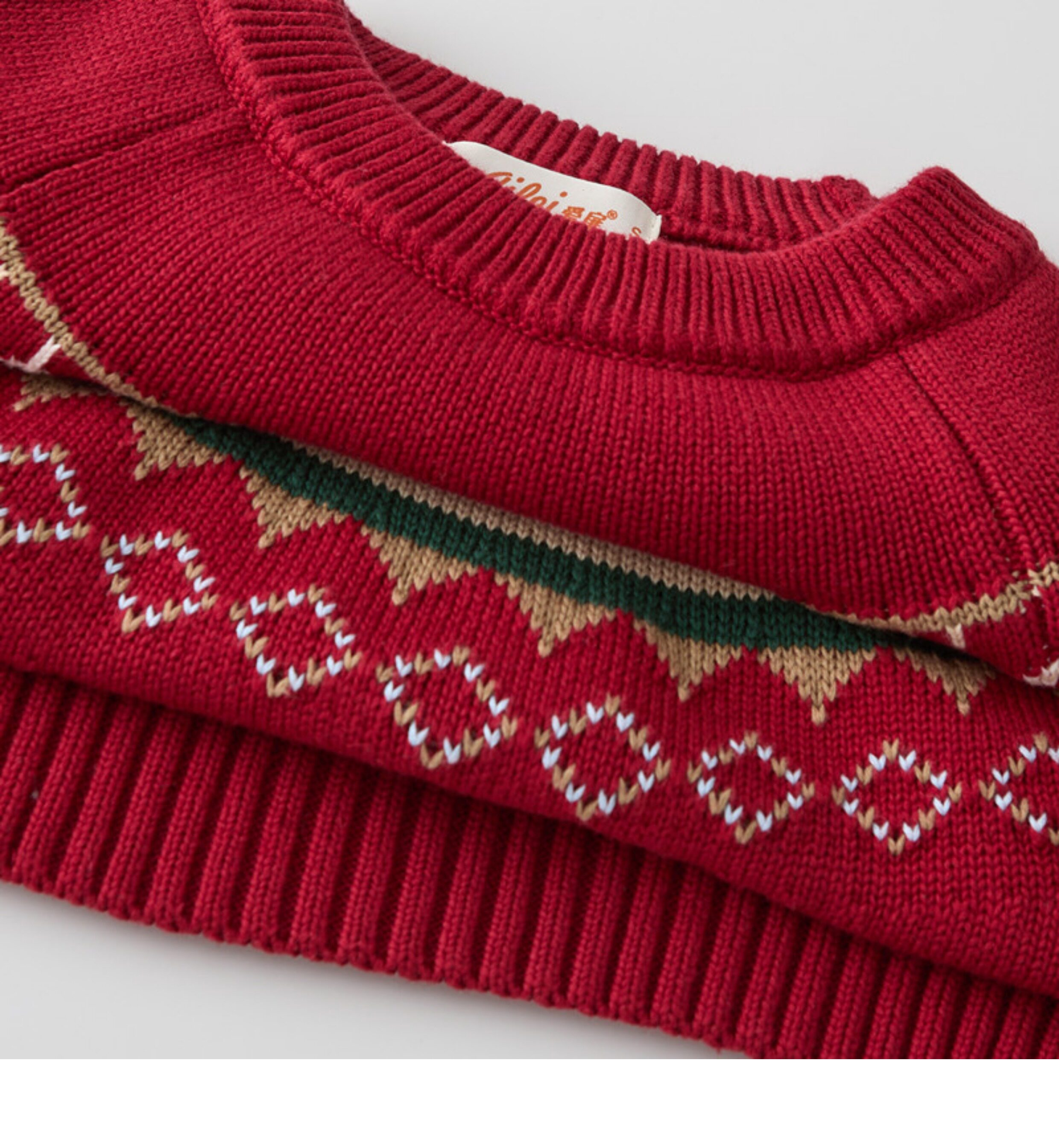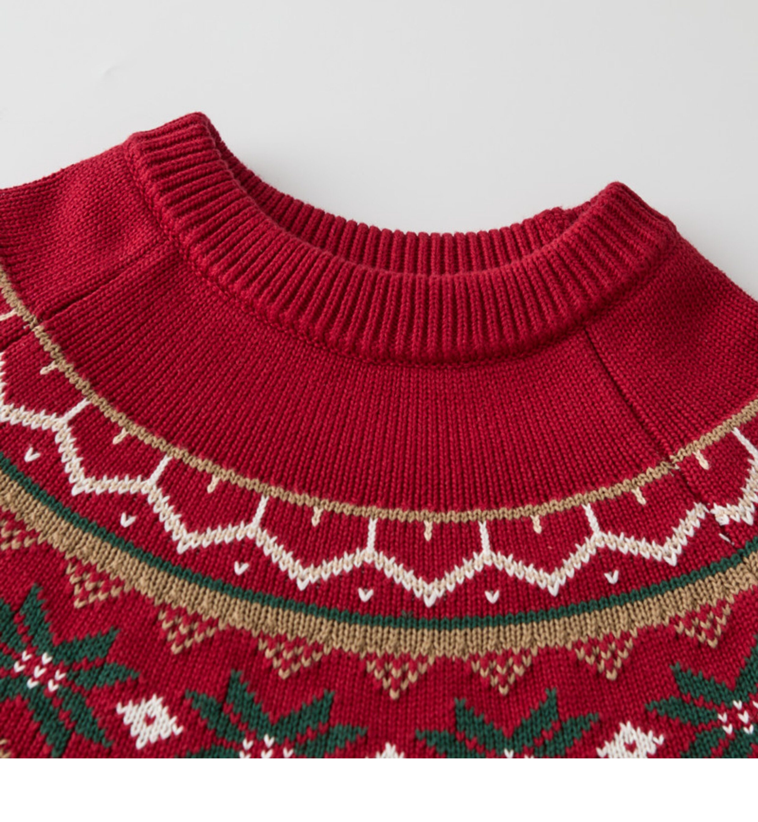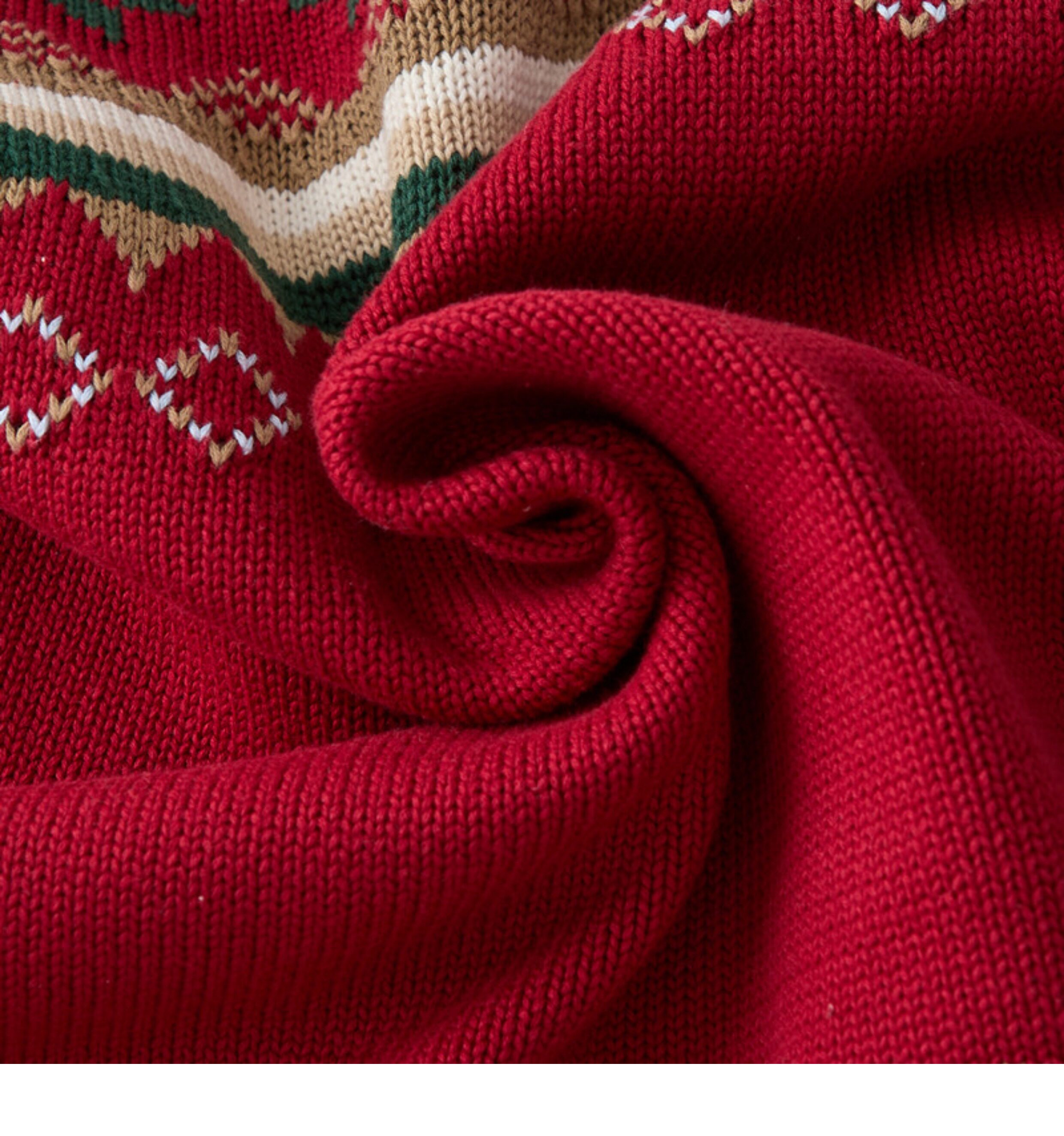 100%全棉線費爾島聖誕紅彩色圓領寬松針織衫女士單穿百搭加厚毛衣