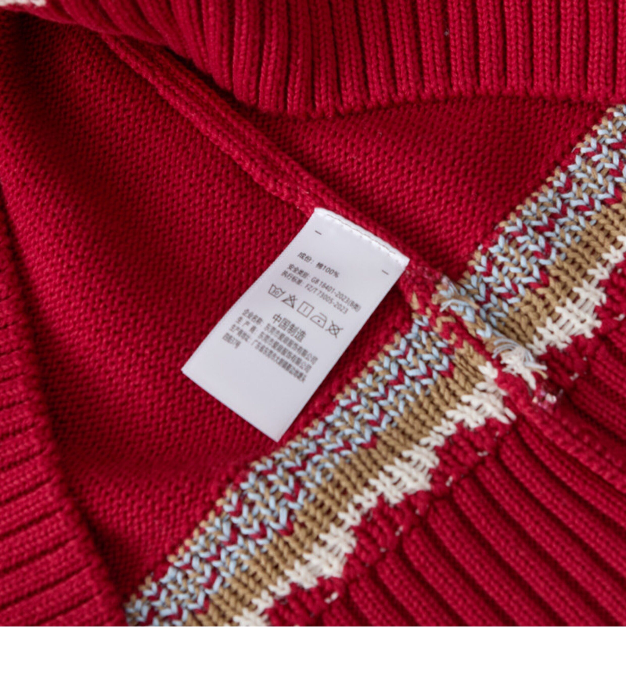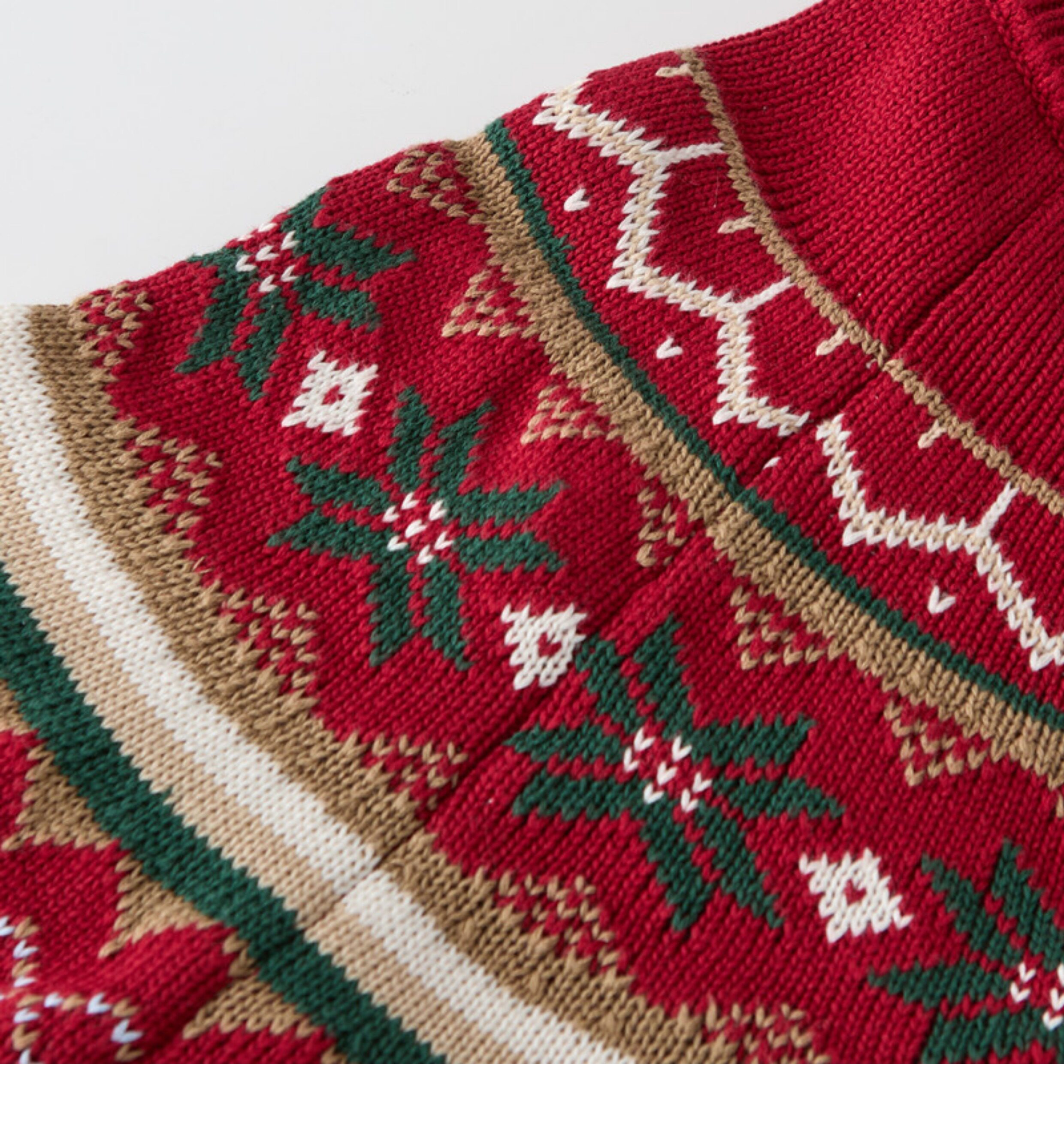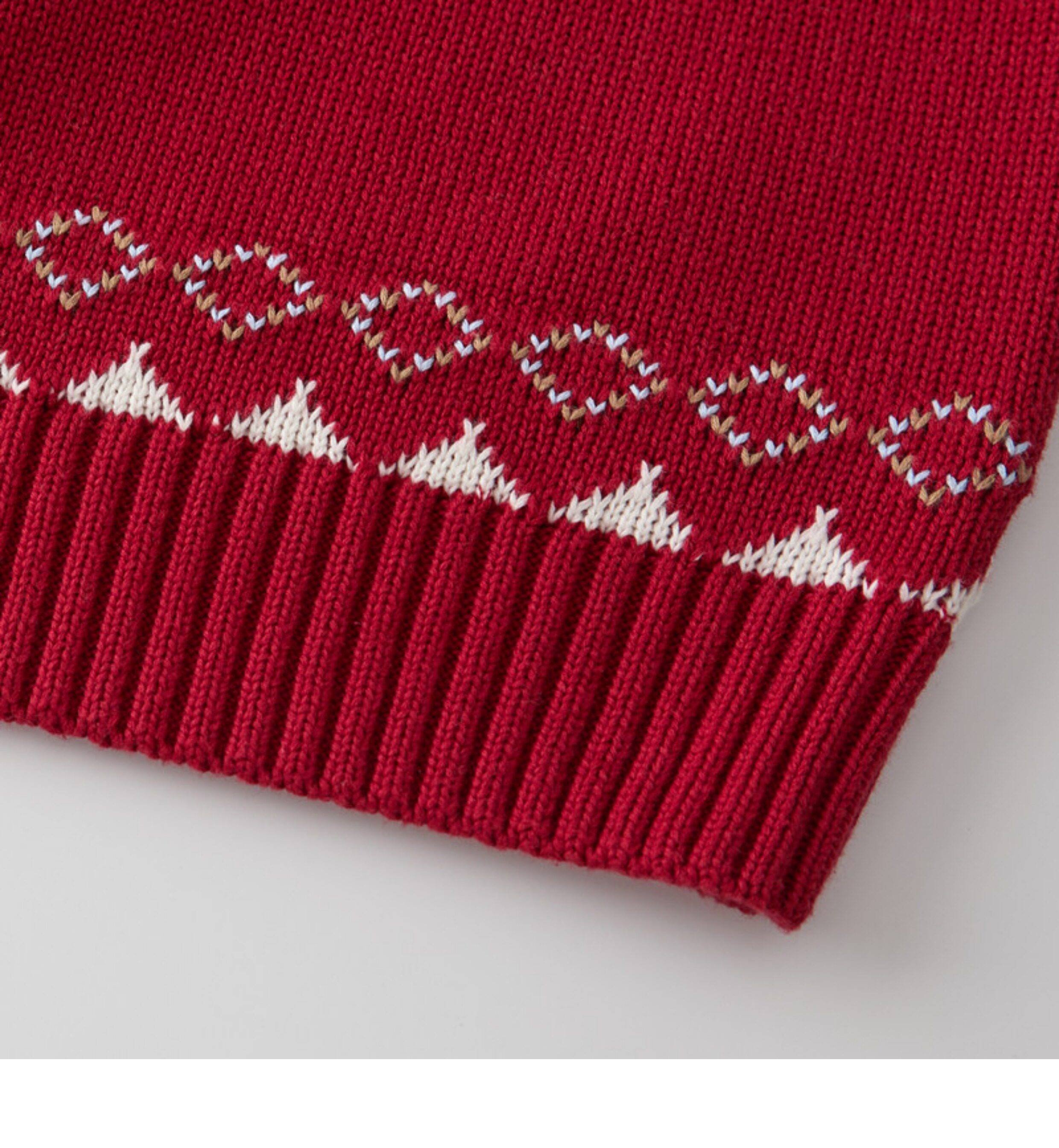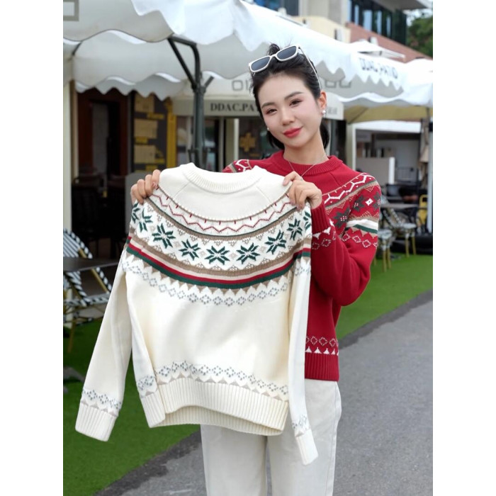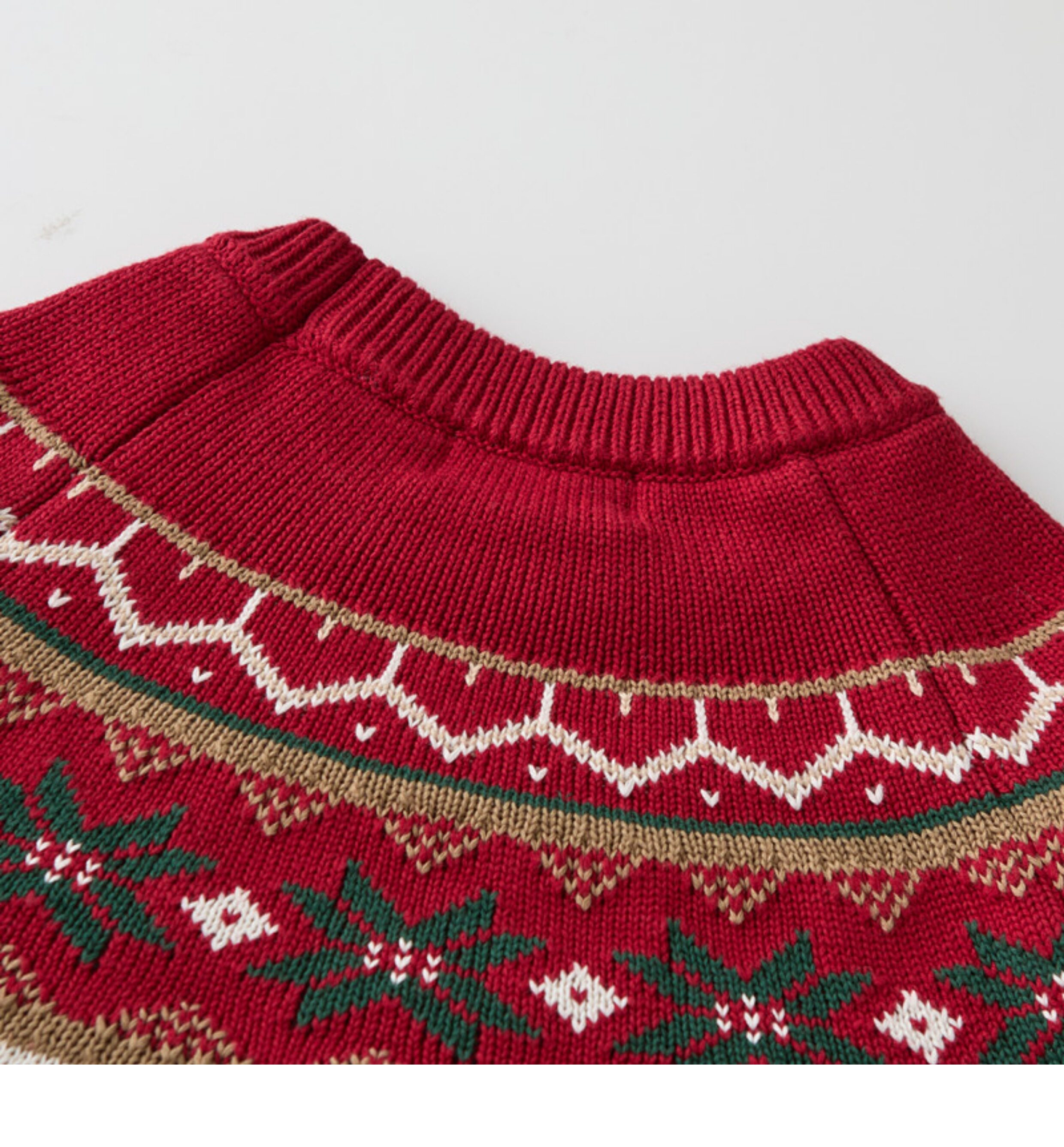 100%全棉線費爾島聖誕紅彩色圓領寬松針織衫女士單穿百搭加厚毛衣