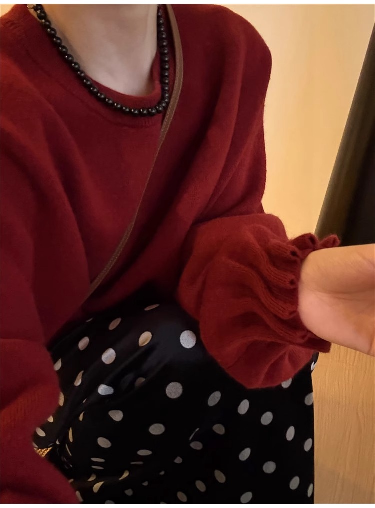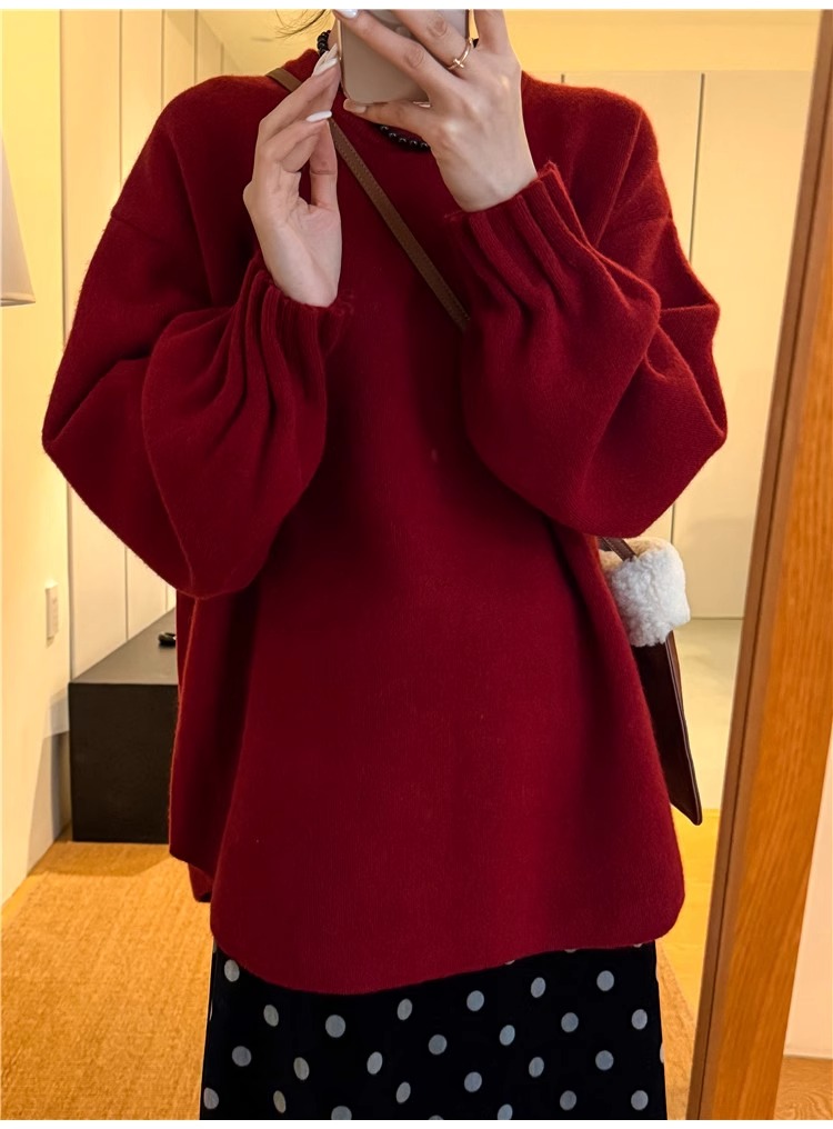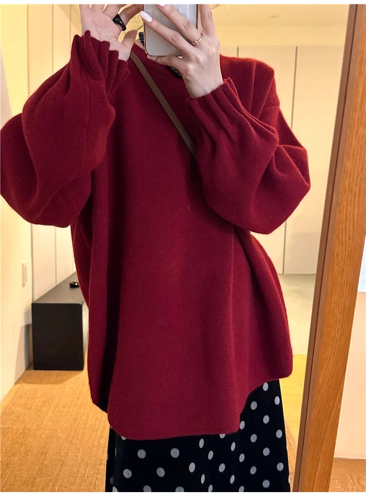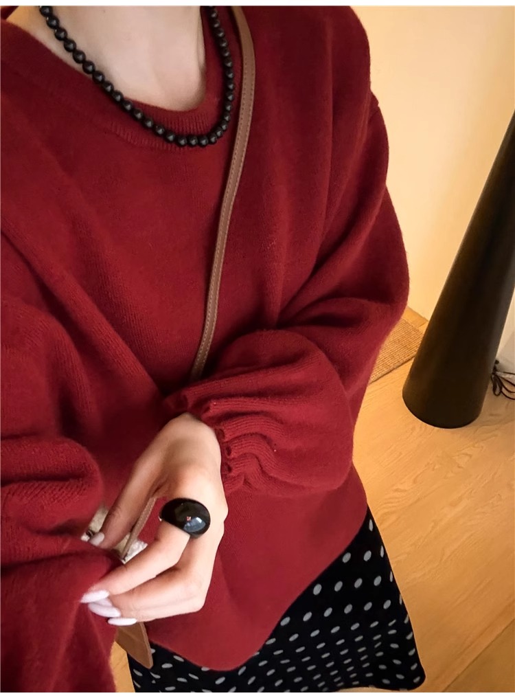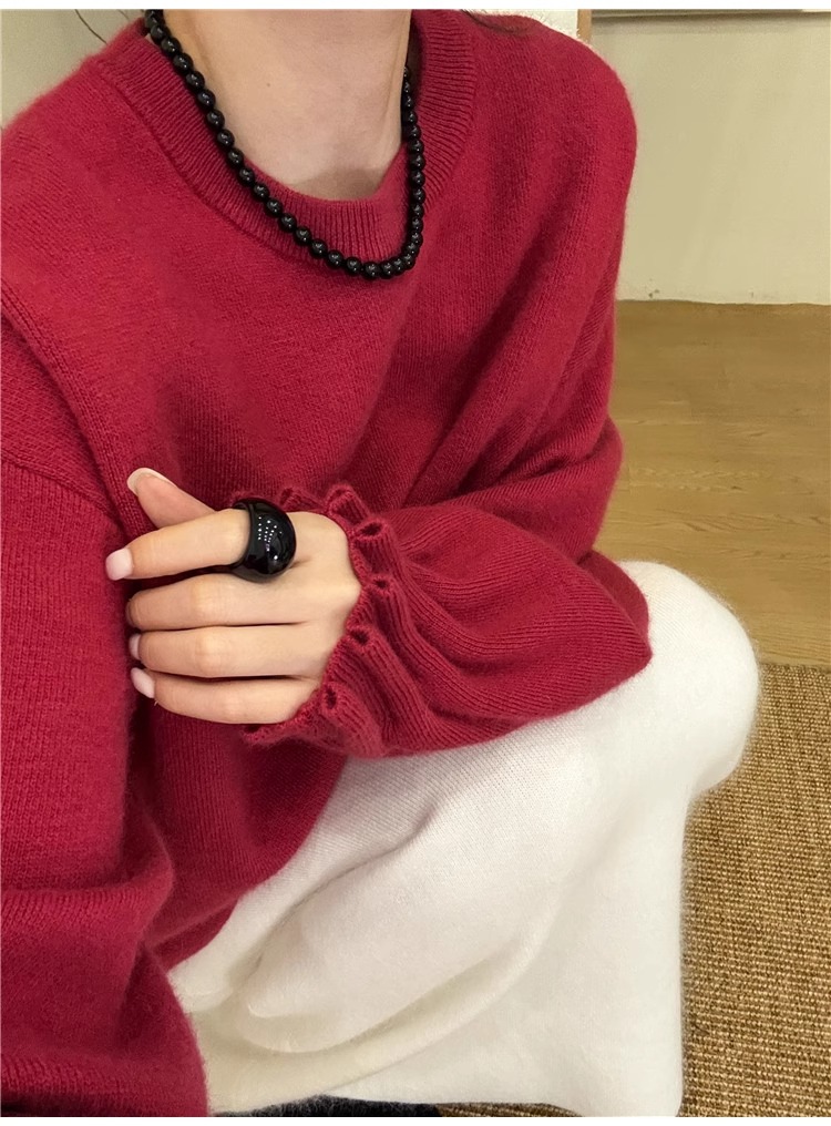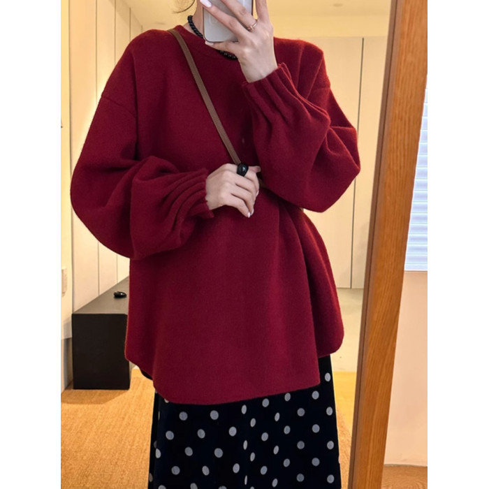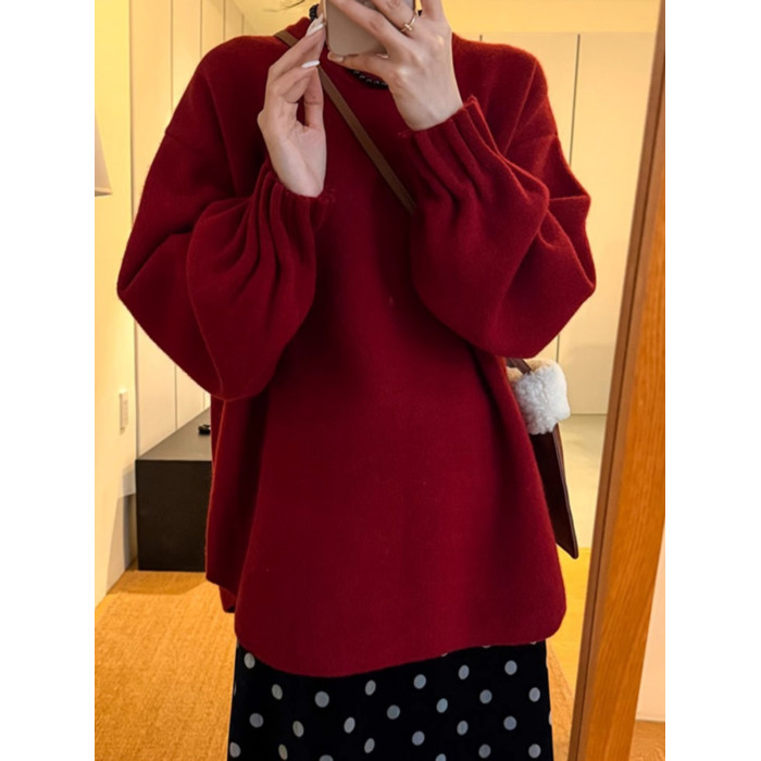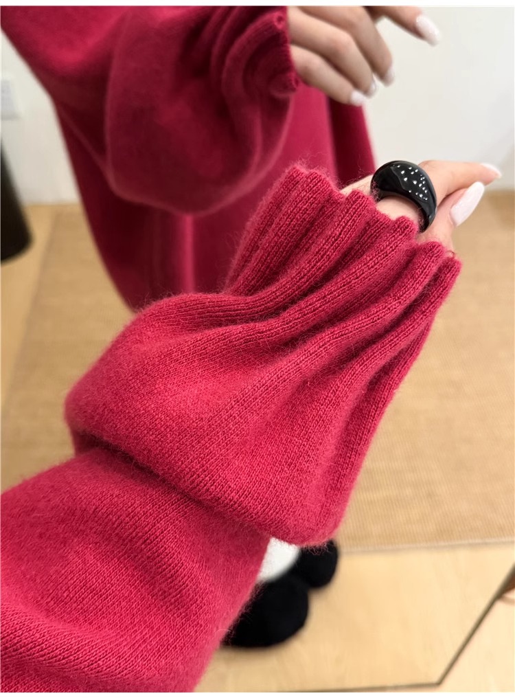 新年聖誕紅色浣熊絨中長款毛衣女秋冬軟糯慵懶高級感套頭針織上衣