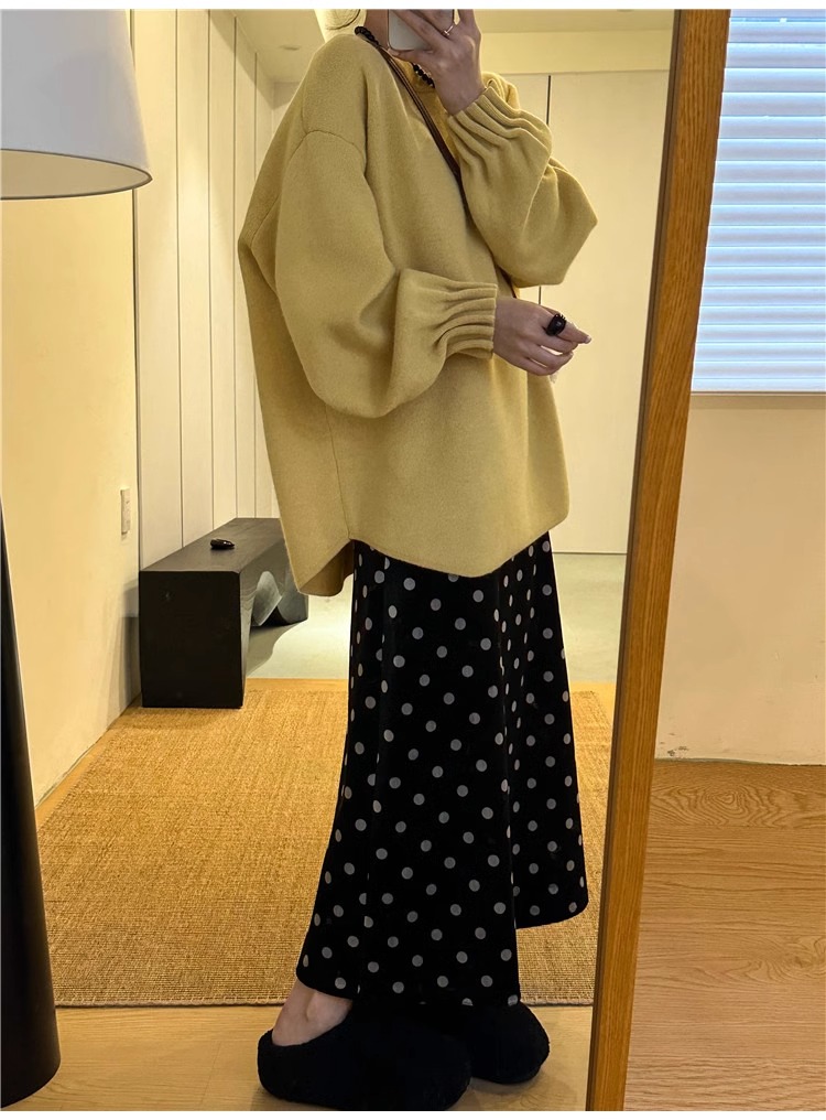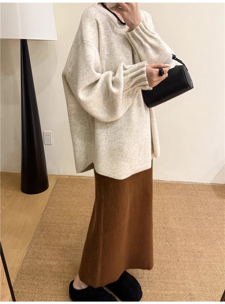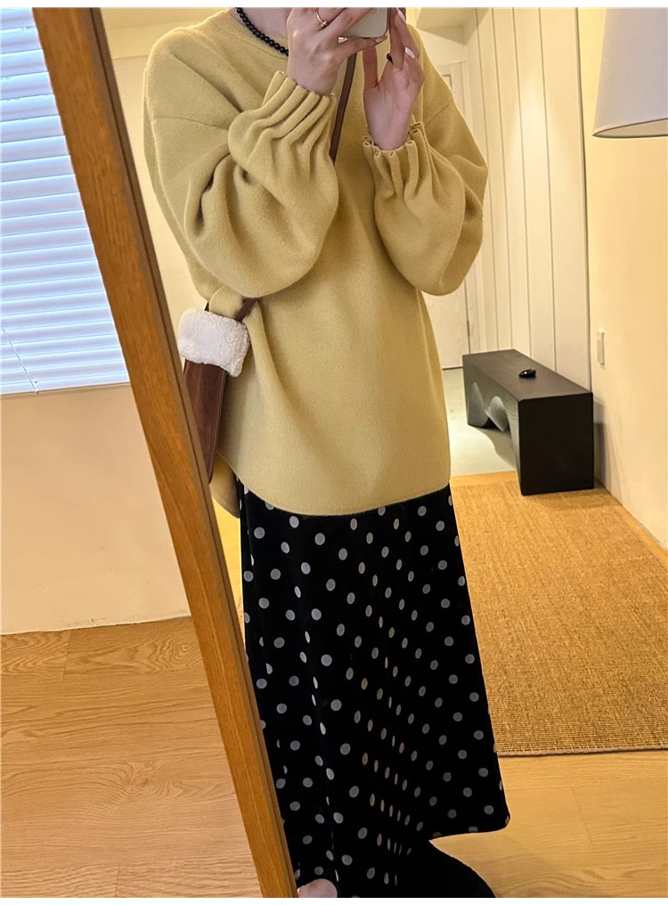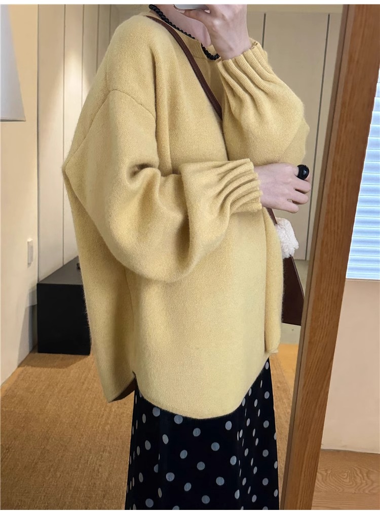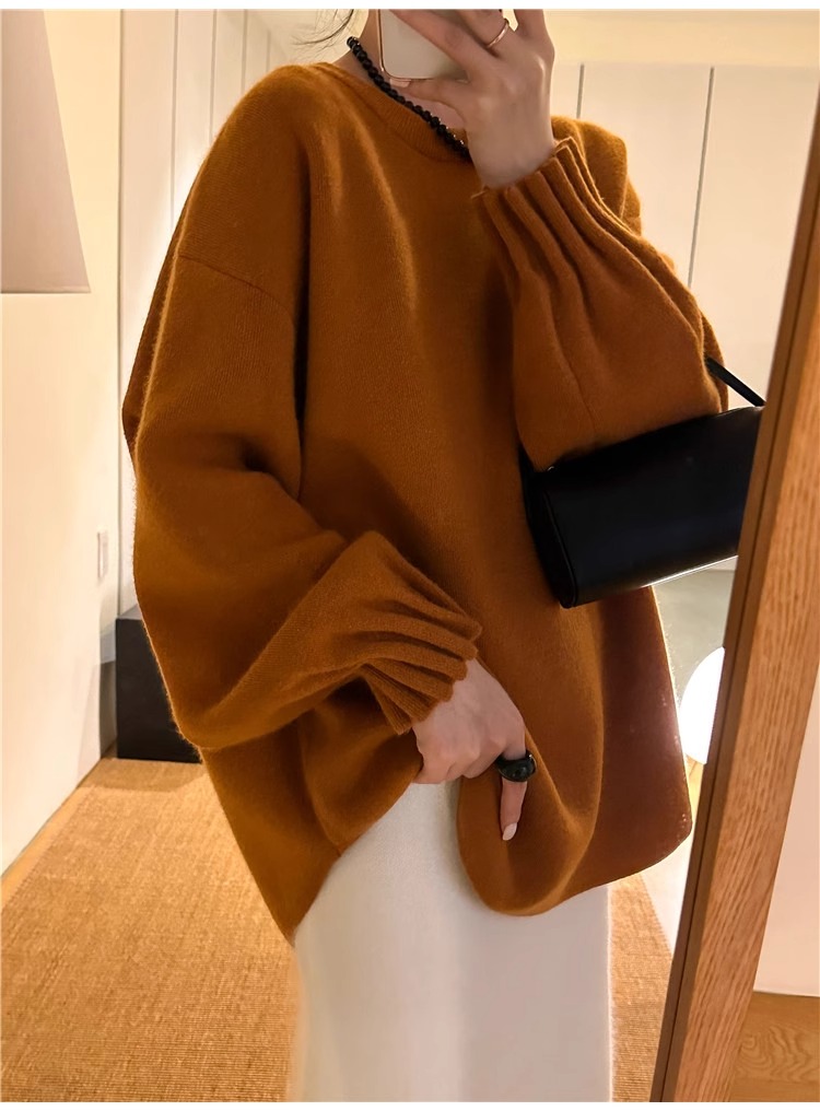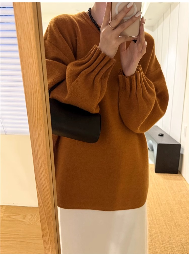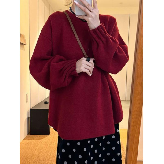 新年聖誕紅色浣熊絨中長款毛衣女秋冬軟糯慵懶高級感套頭針織上衣
