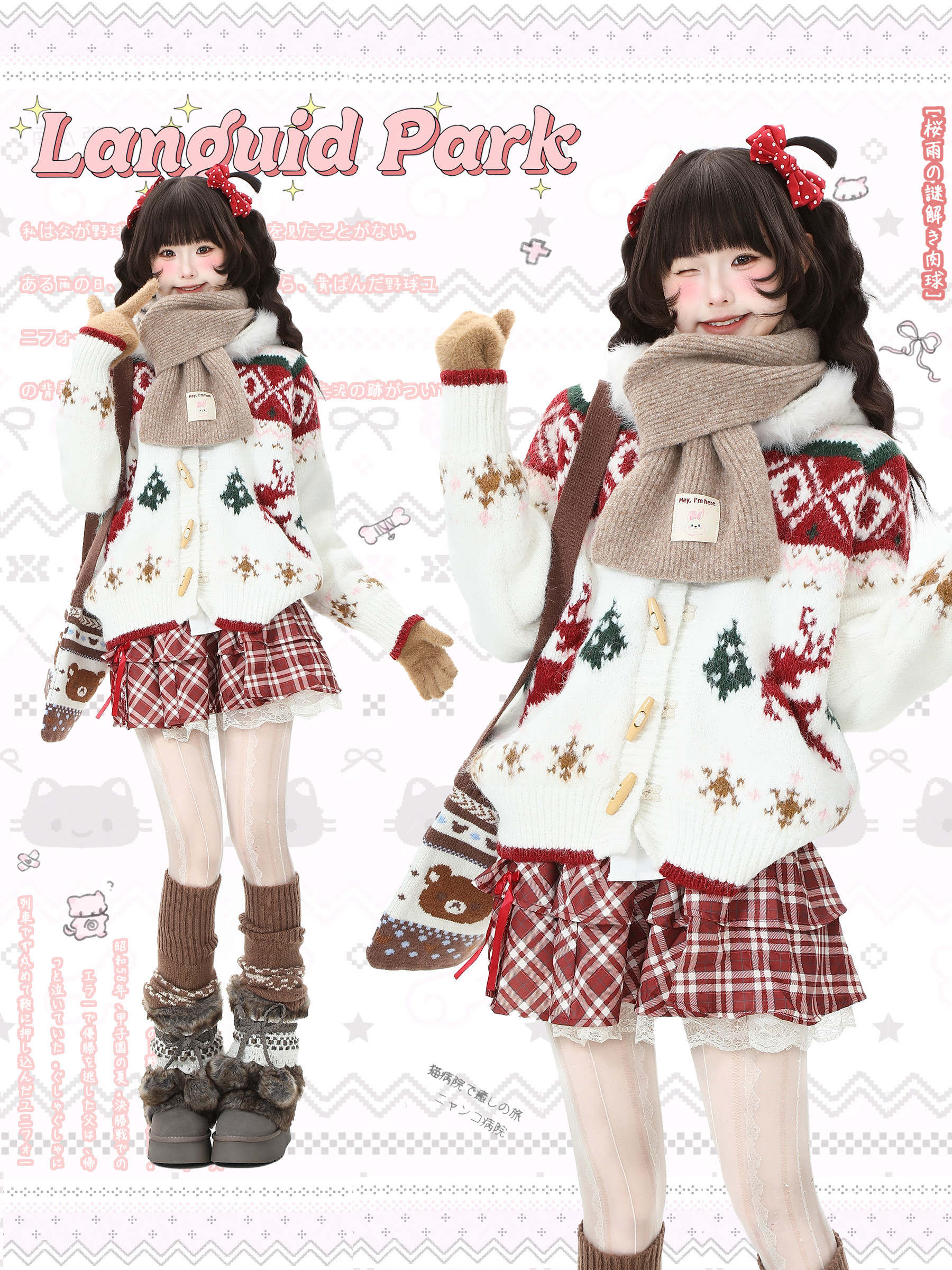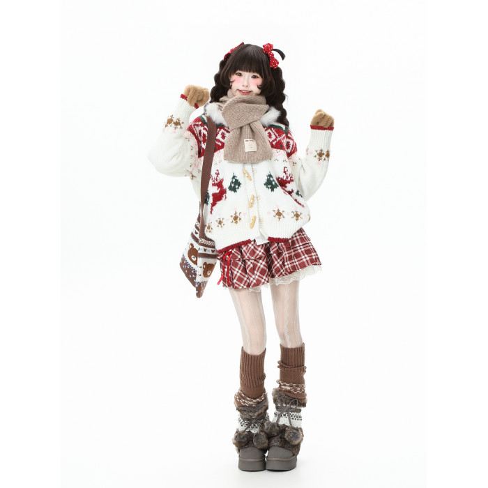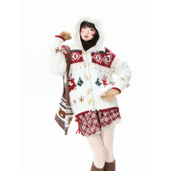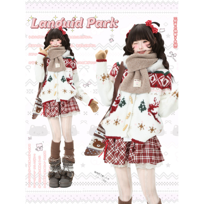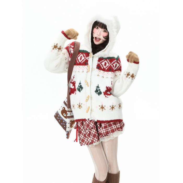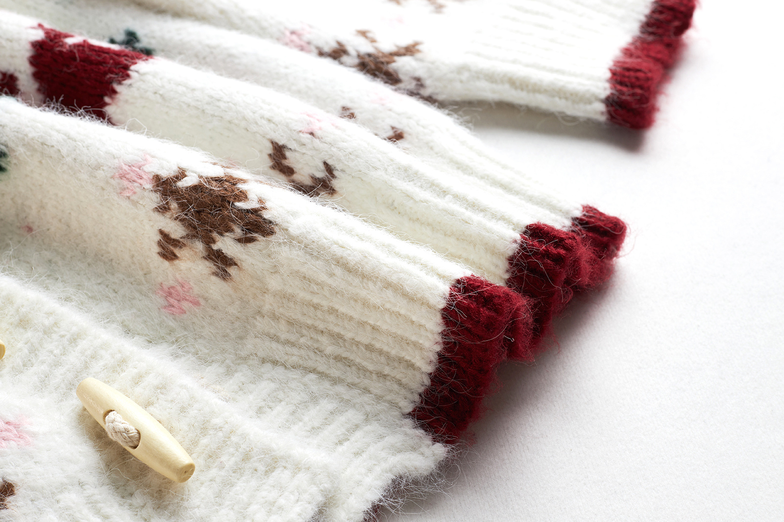 藍鬼公園Languid Park聖誕紅色費爾島牛角釦毛衣女秋季毛絨絨外套