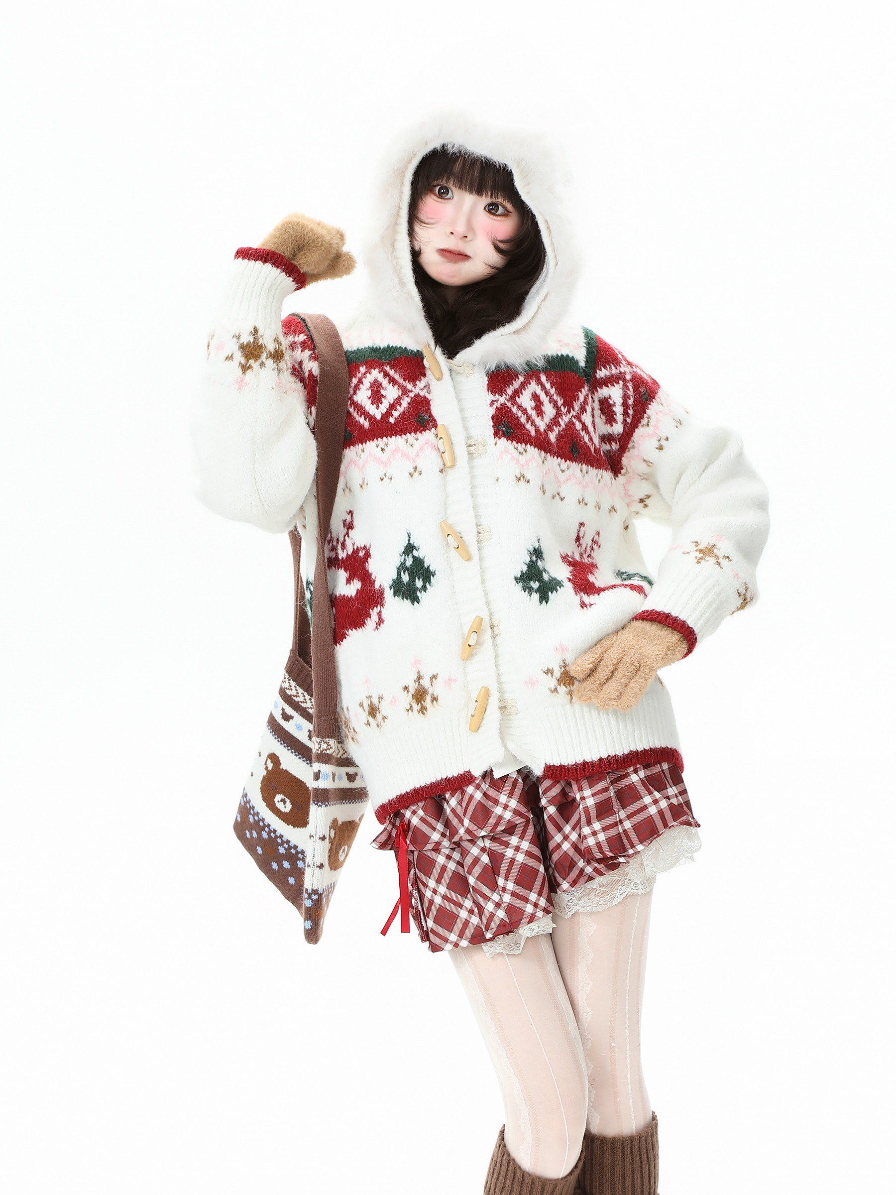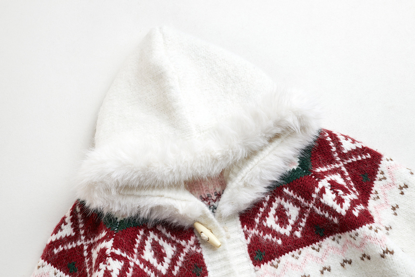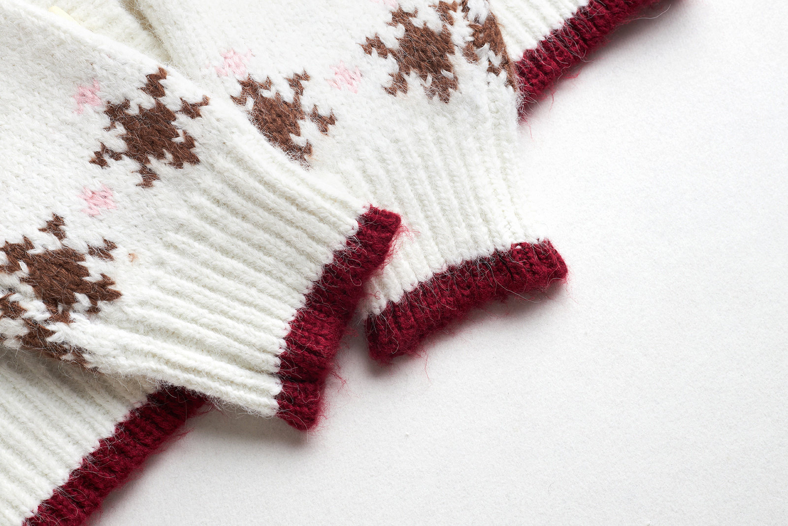 藍鬼公園Languid Park聖誕紅色費爾島牛角釦毛衣女秋季毛絨絨外套