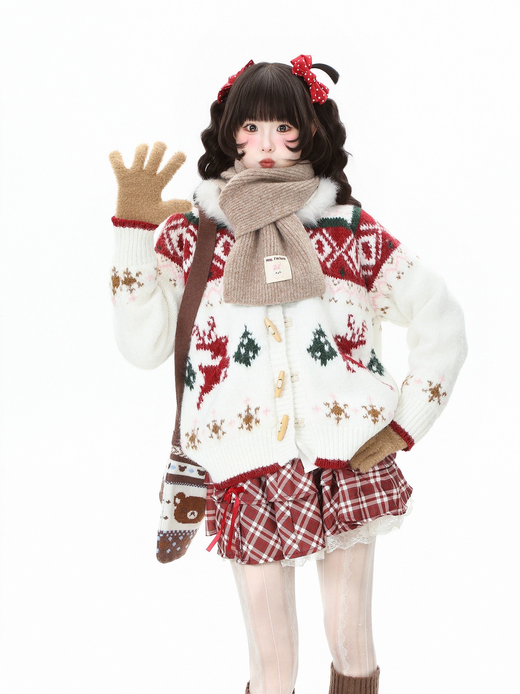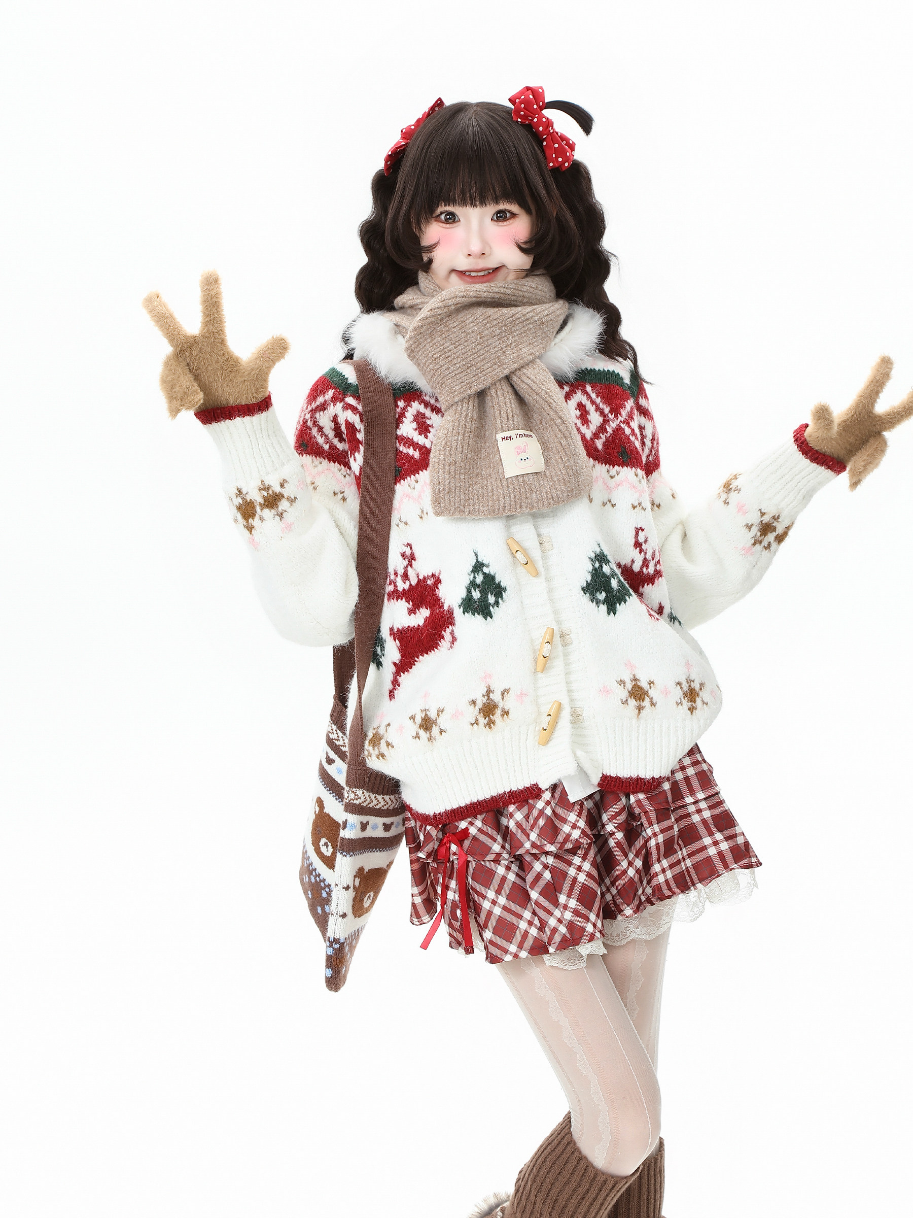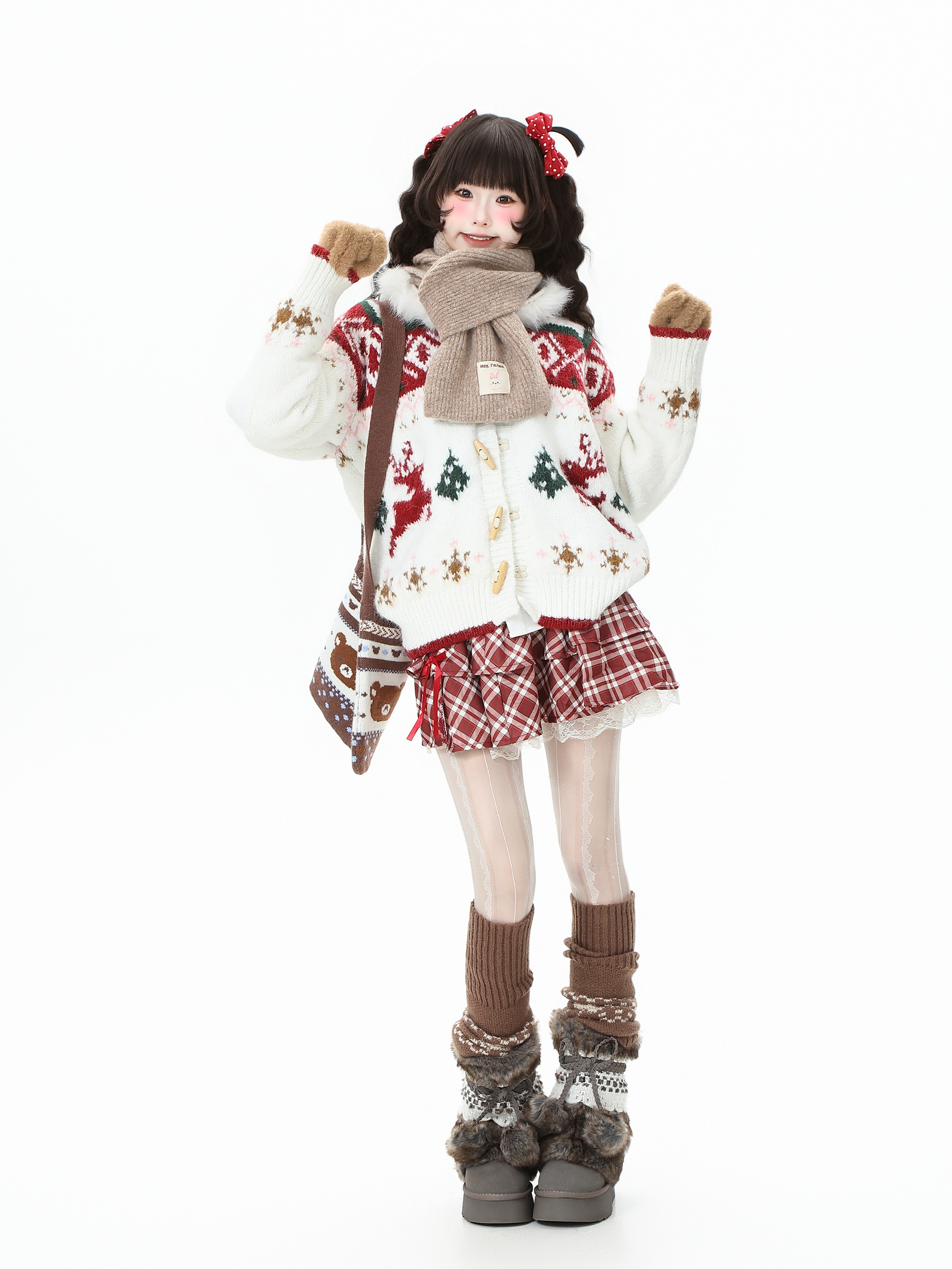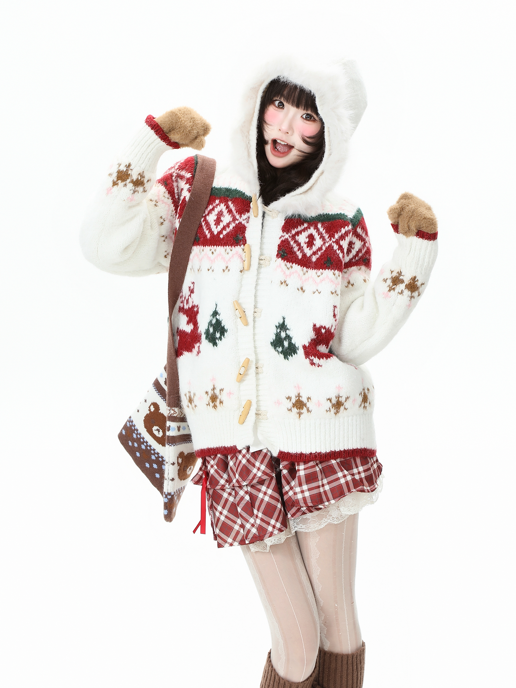 藍鬼公園Languid Park聖誕紅色費爾島牛角釦毛衣女秋季毛絨絨外套