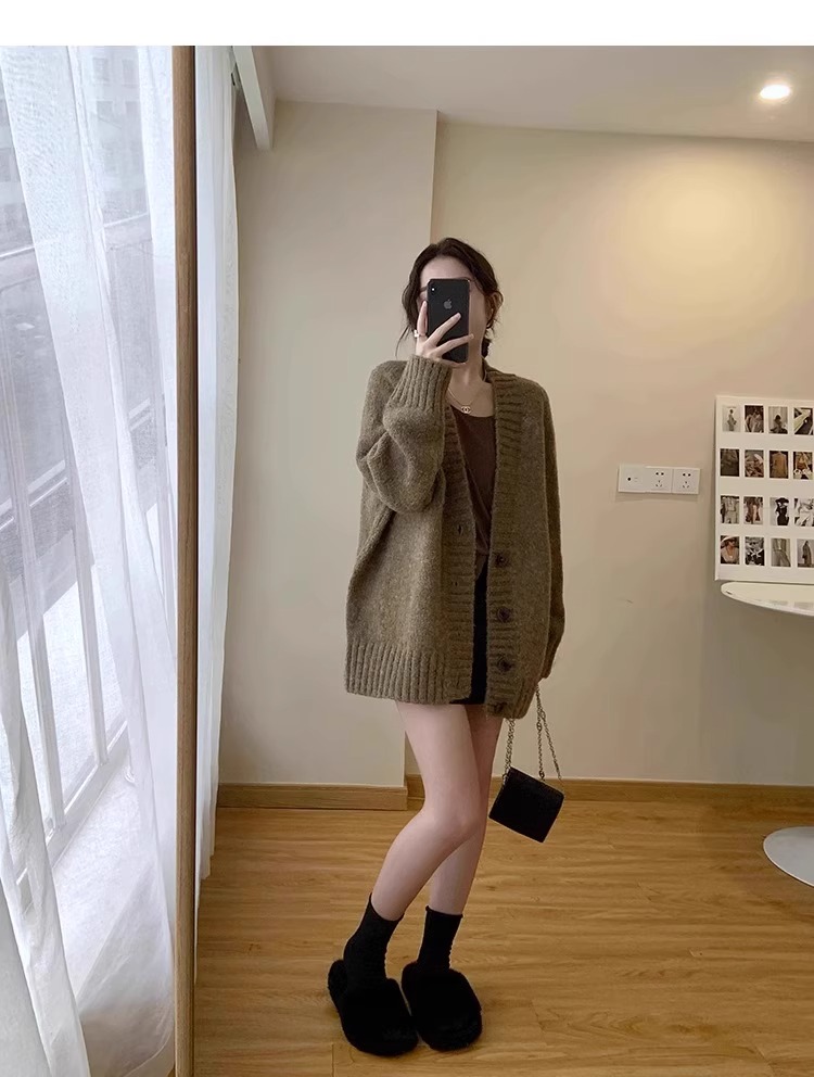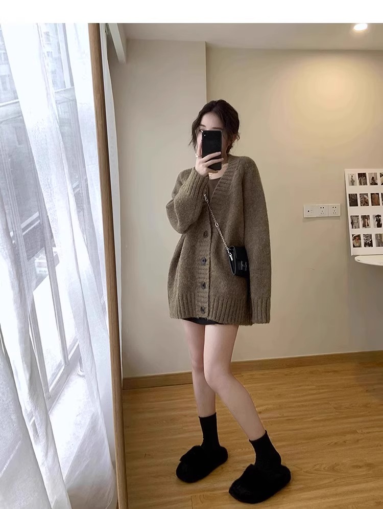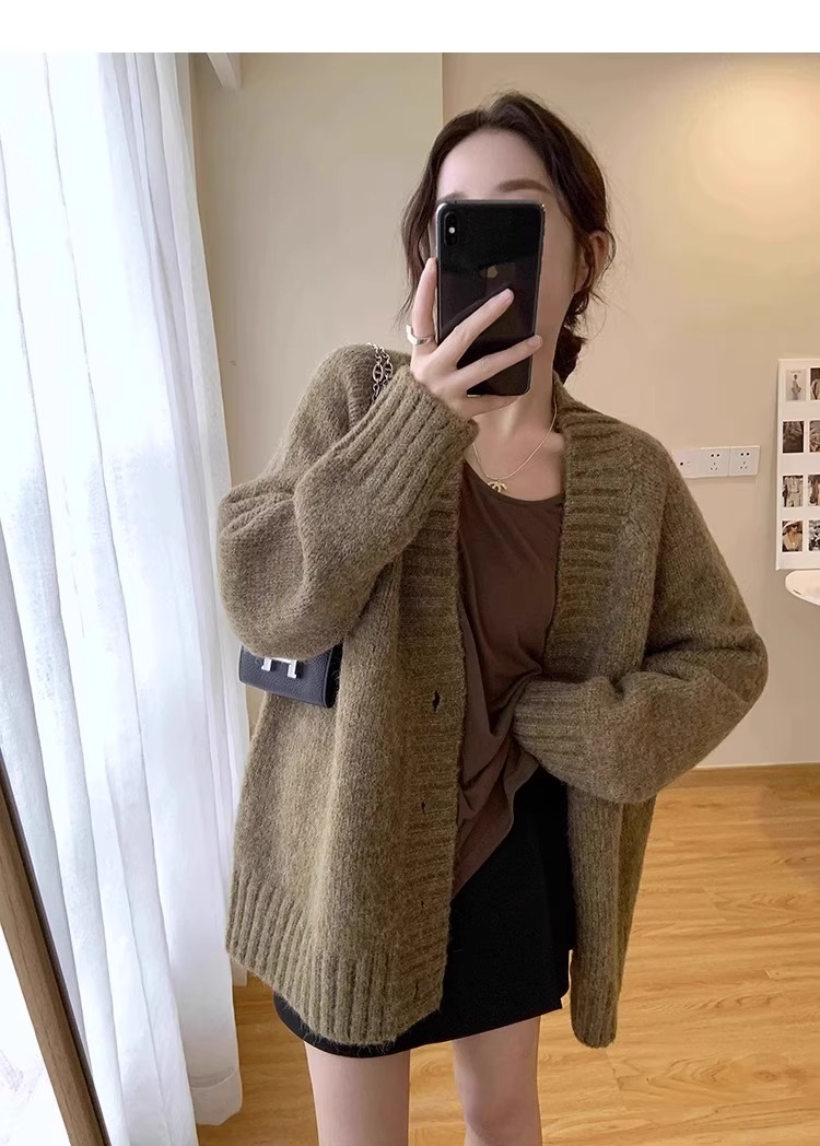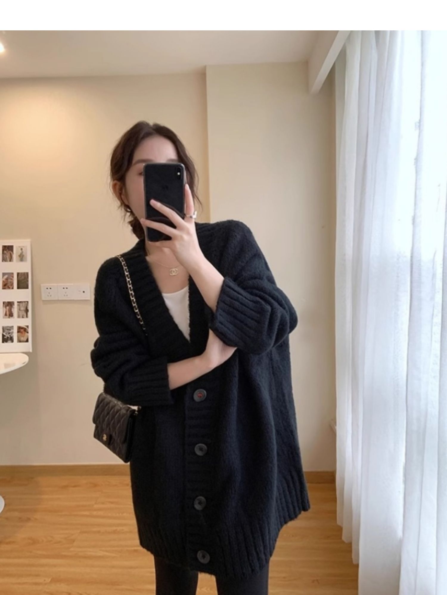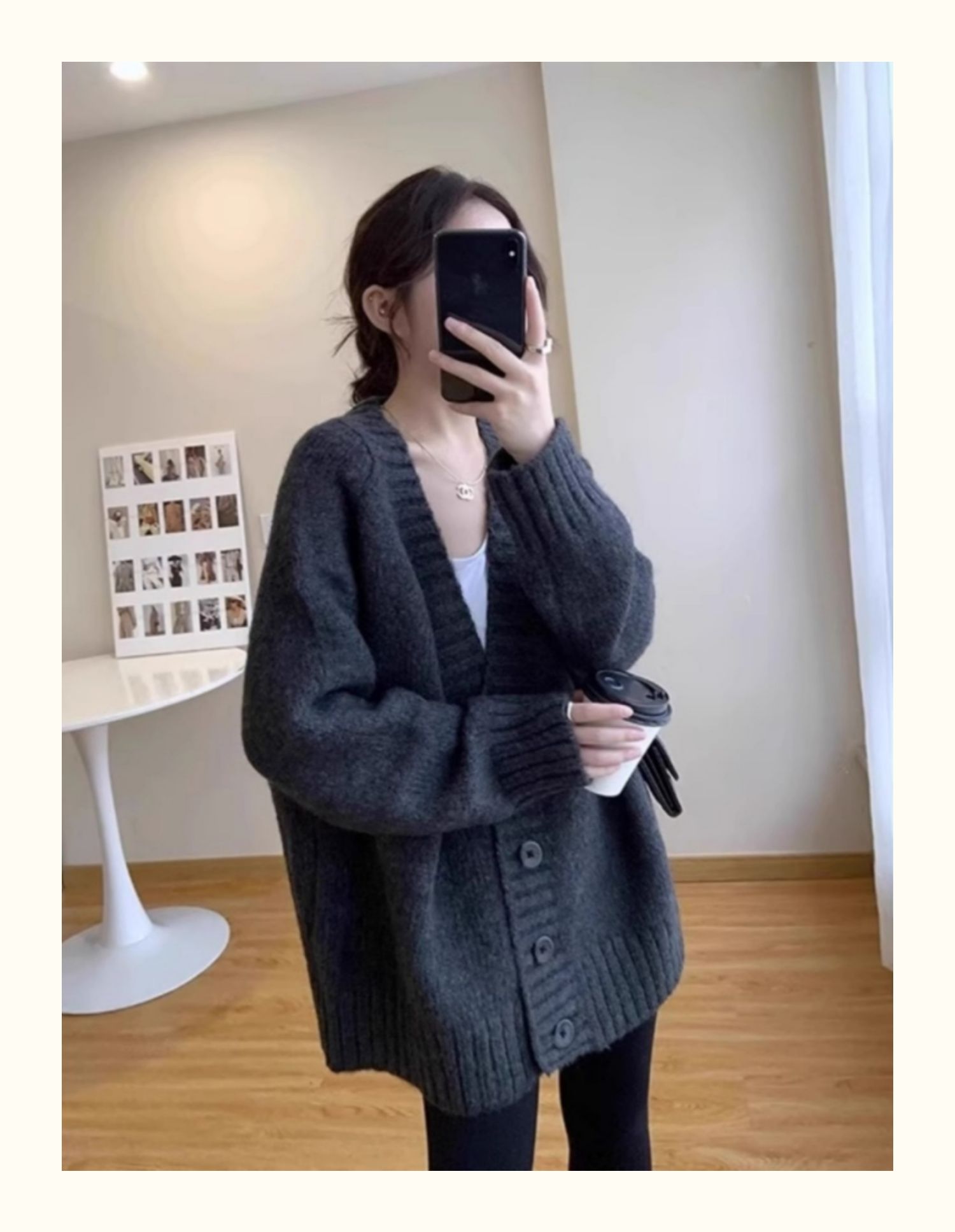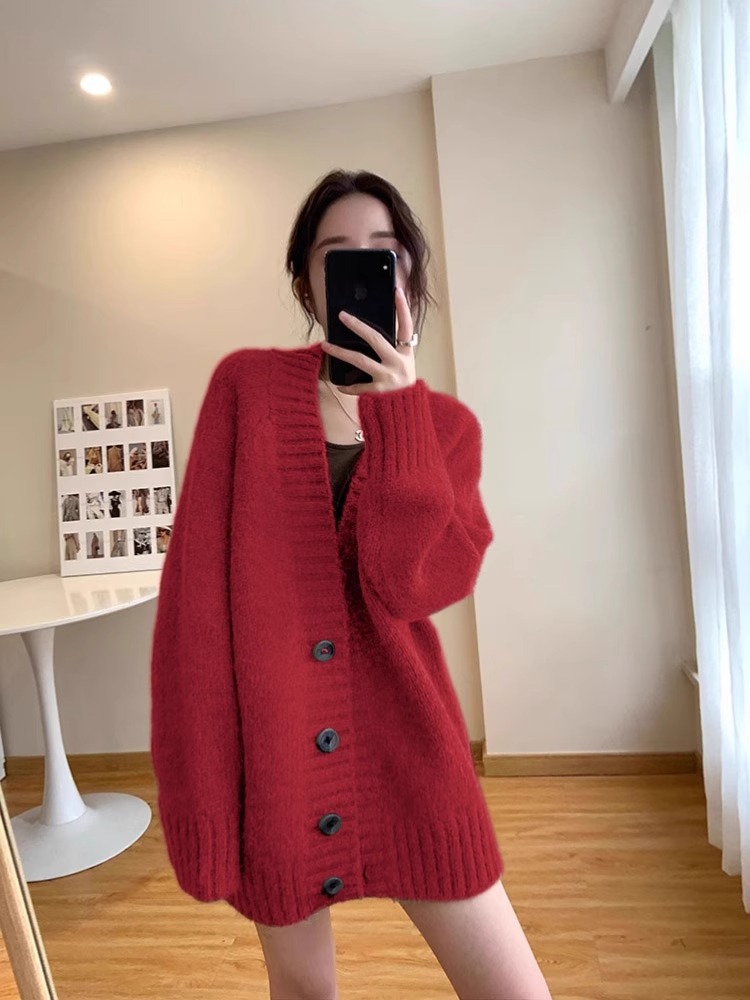 2025聖誕紅色大毛衣外套女加厚慵懶風中長款針織開衫寬松大碼外搭