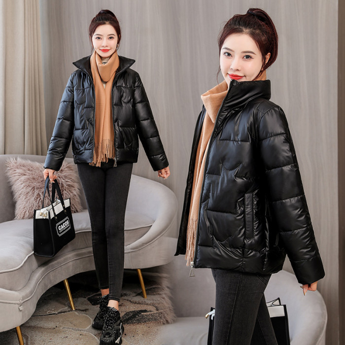 免洗亮面2025冬季新款棉衣女短款加厚立領棉服時尚百搭棉襖外套潮