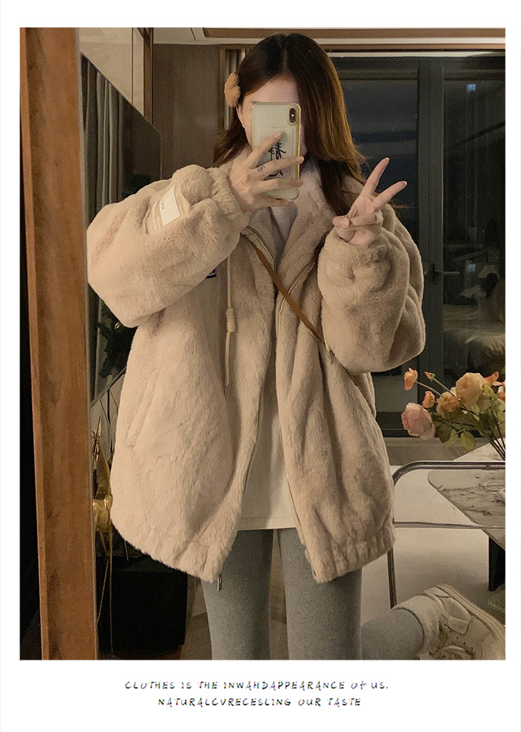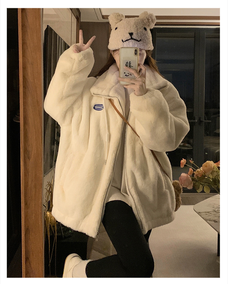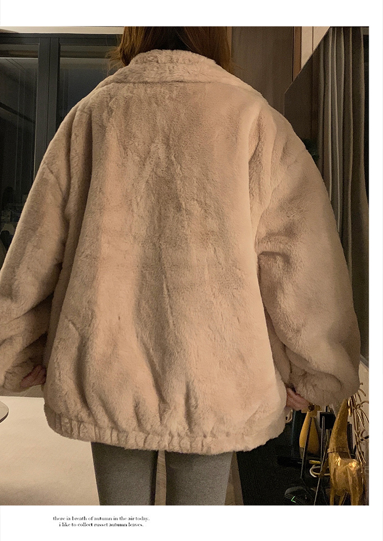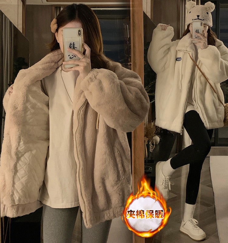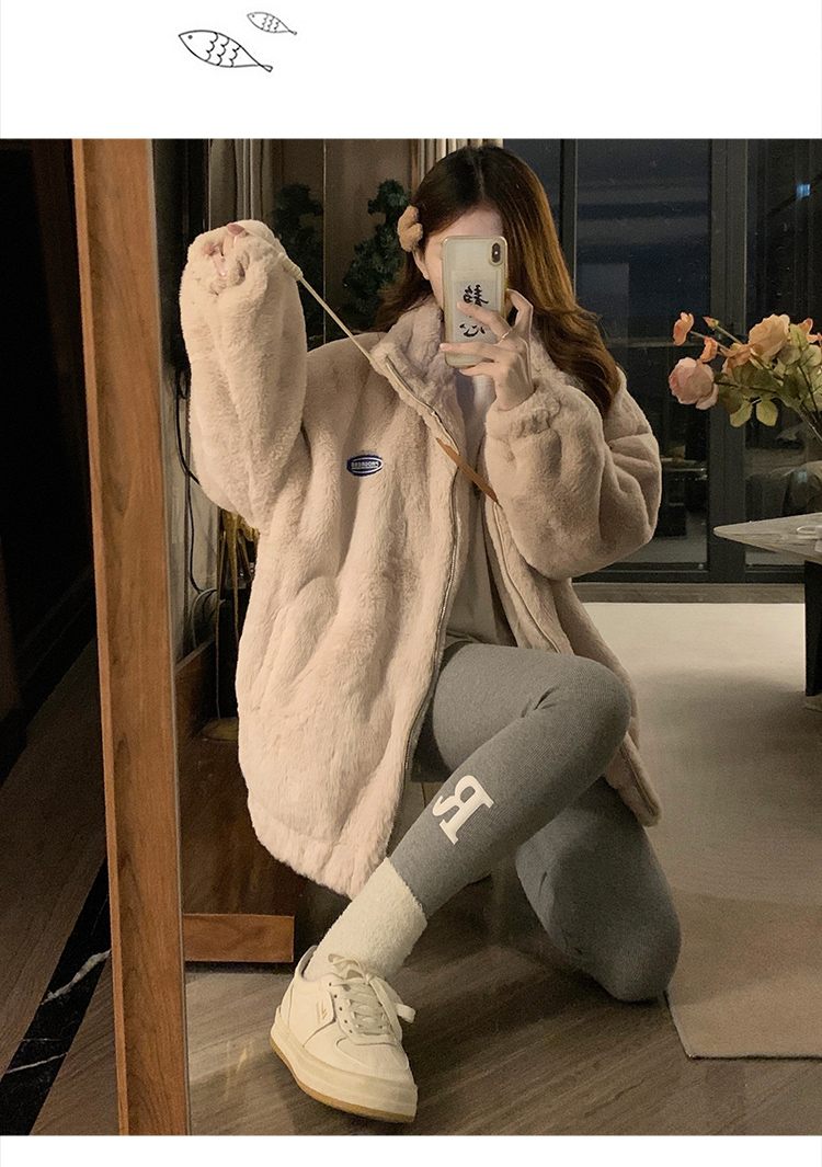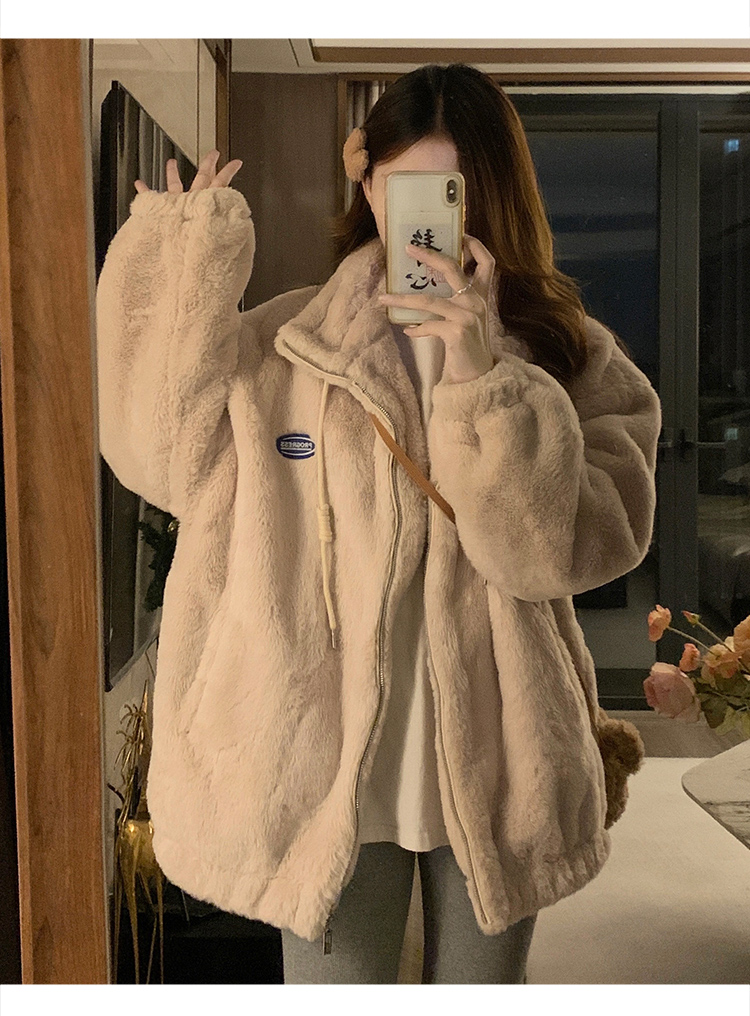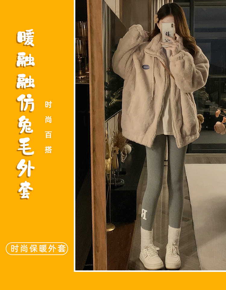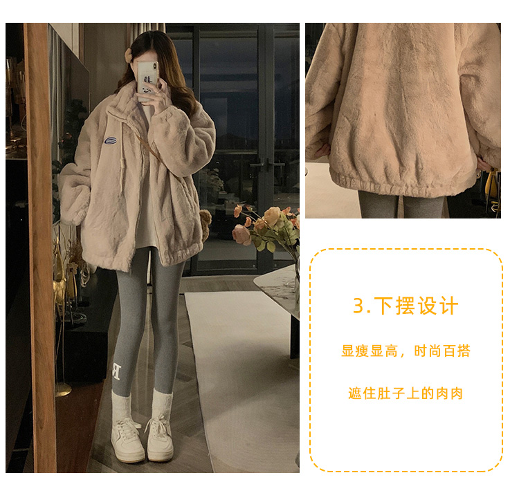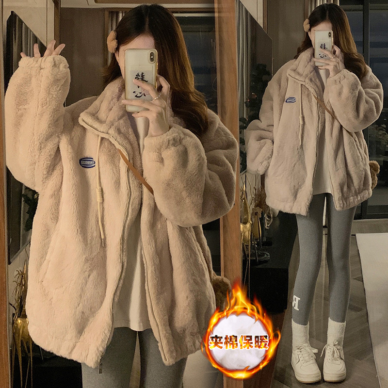 水貂絨羊羔毛外套女秋冬新款仿獺兔毛皮草立領毛毛絨寬松加厚棉服