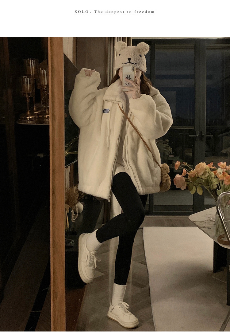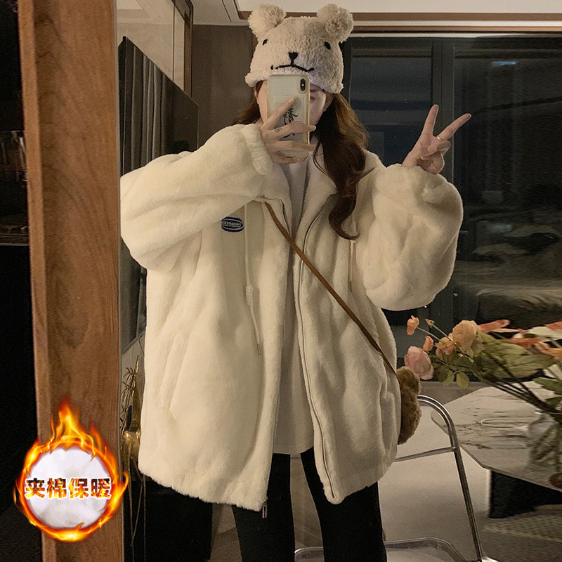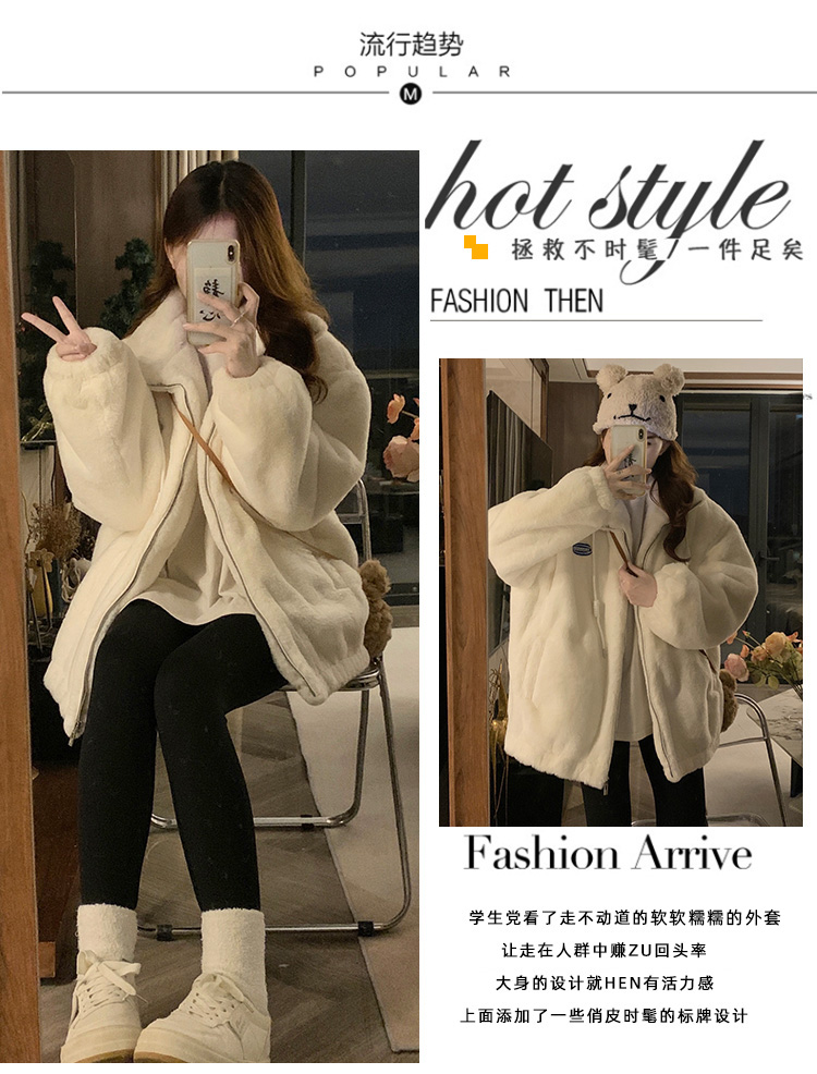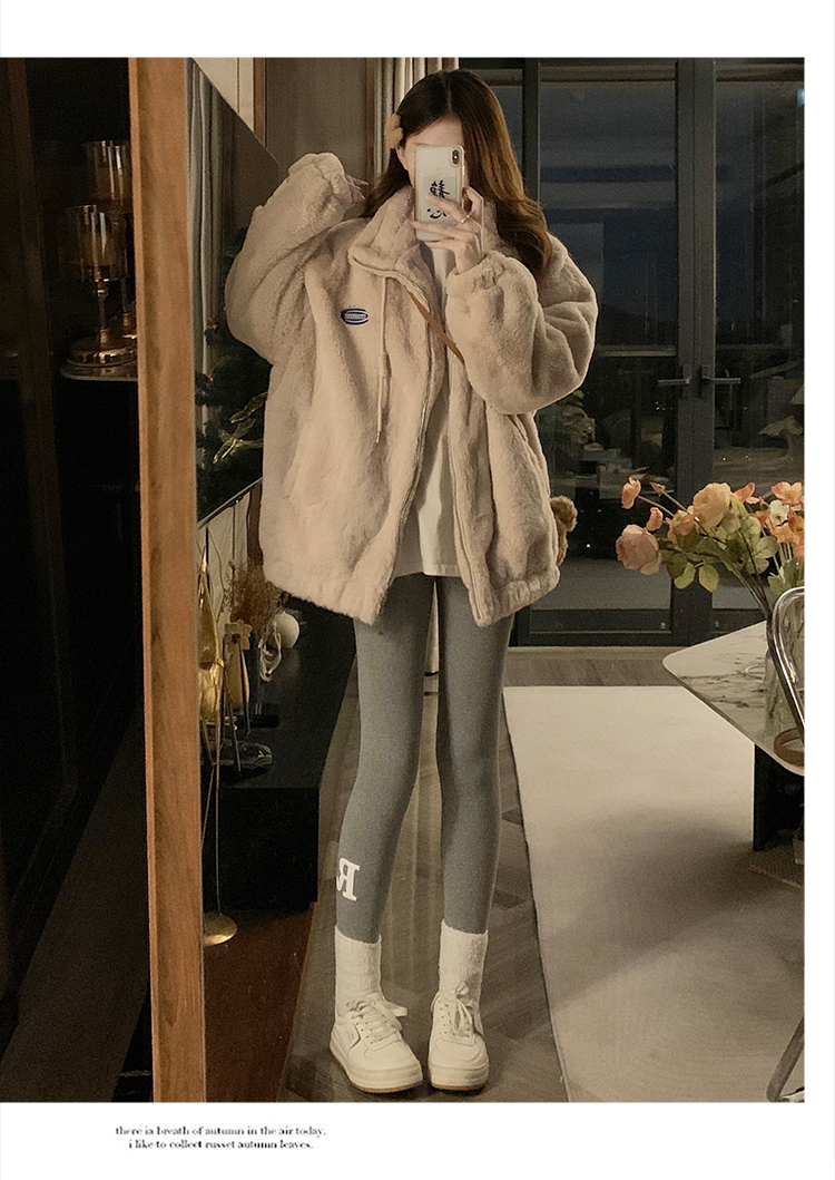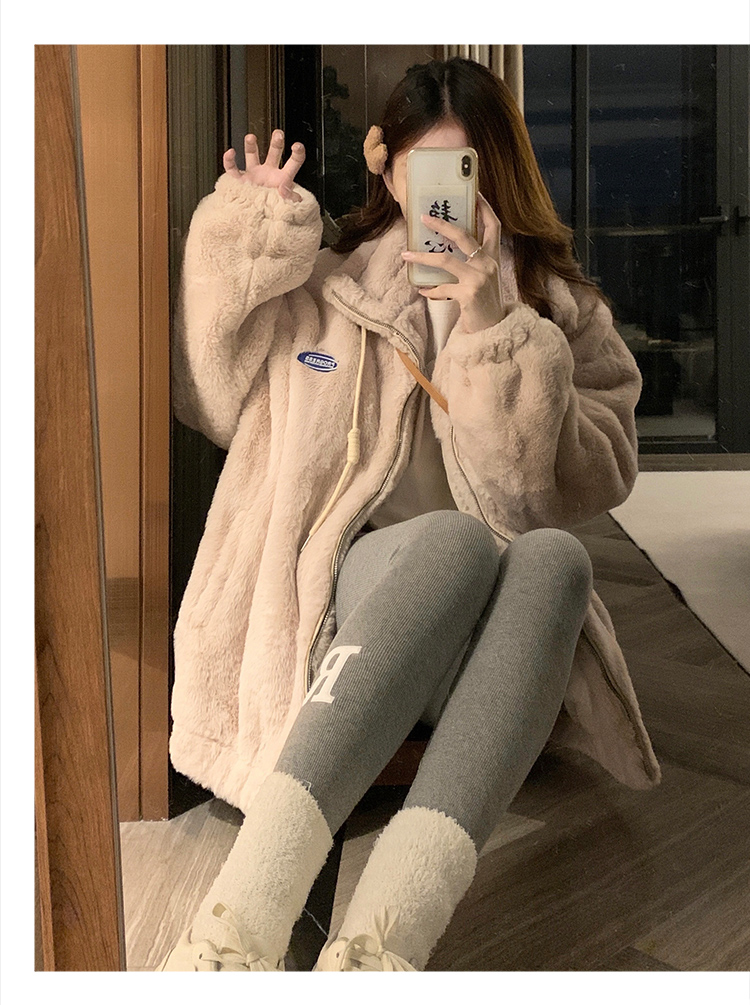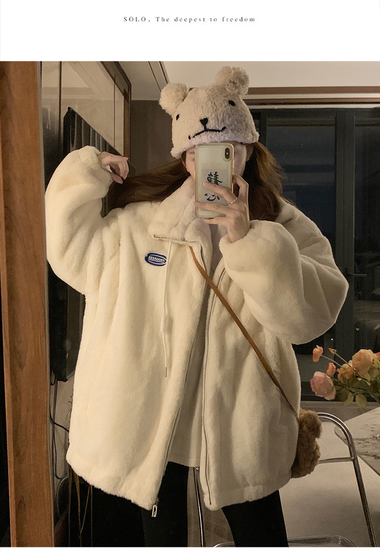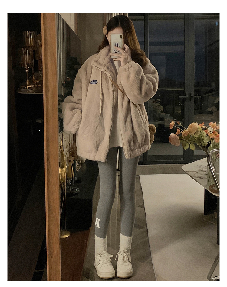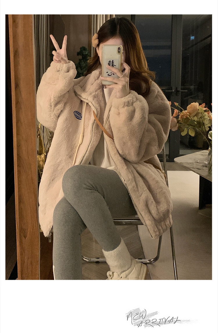 水貂絨羊羔毛外套女秋冬新款仿獺兔毛皮草立領毛毛絨寬松加厚棉服
