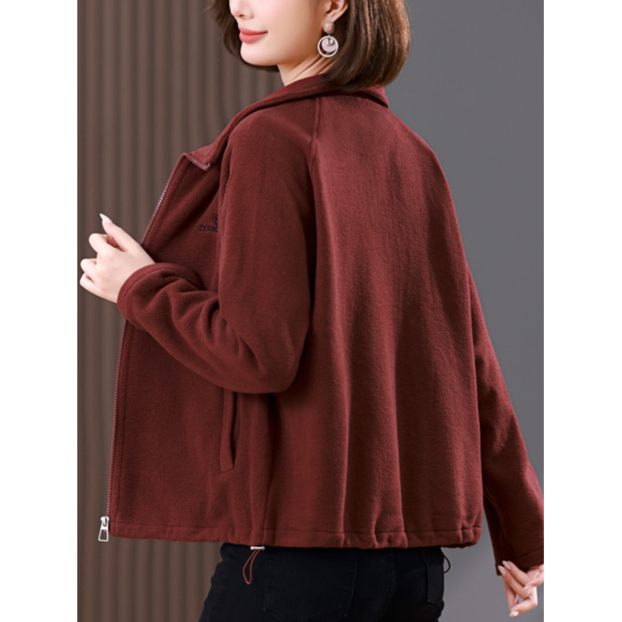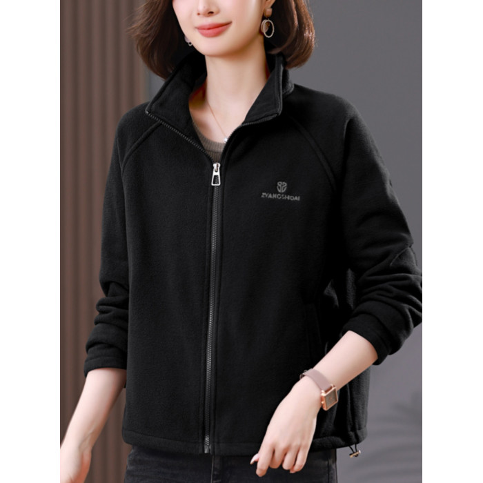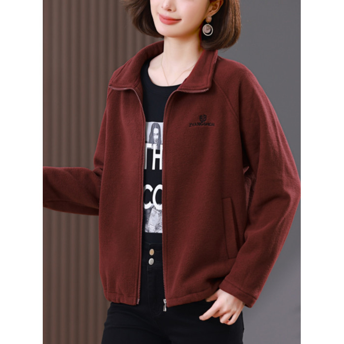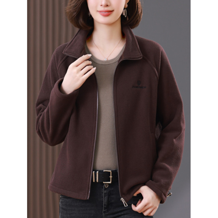時尚顆粒絨外套女2025秋冬新款中年媽媽寬松休閒加絨保暖立領上衣
