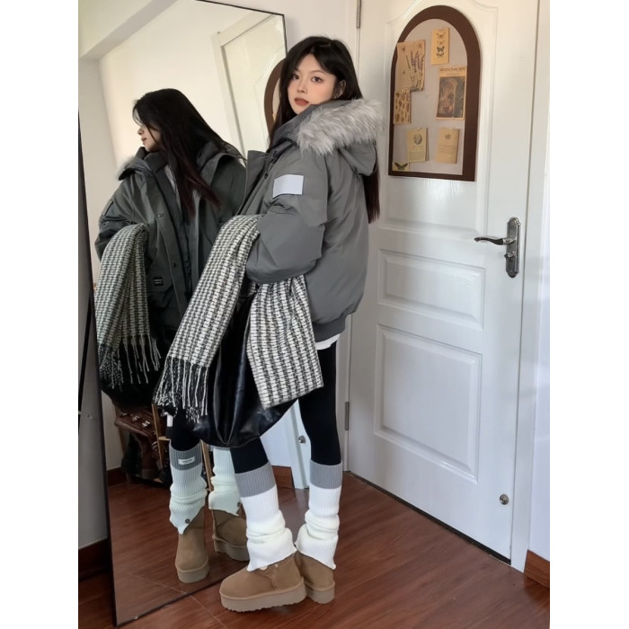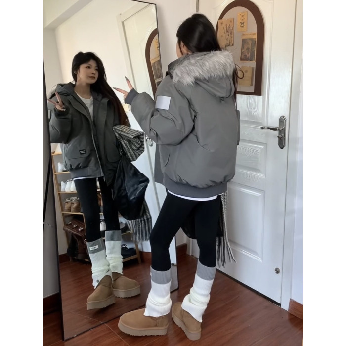 美式復古大毛領工裝羽絨棉服外套女冬季加厚設計感小衆棉衣棉襖潮