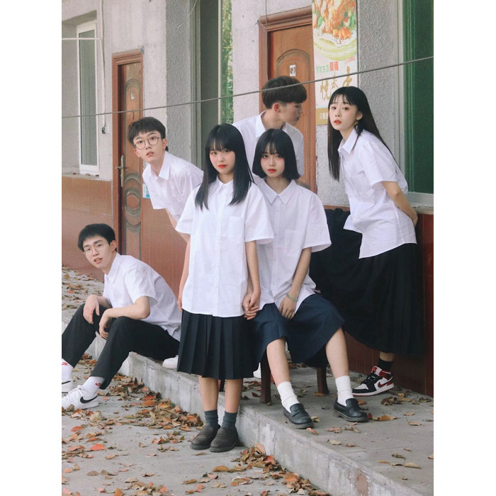 日系jk製服夏季白襯衫女高中學生畢業學院風男DK襯衣寬松短袖班服