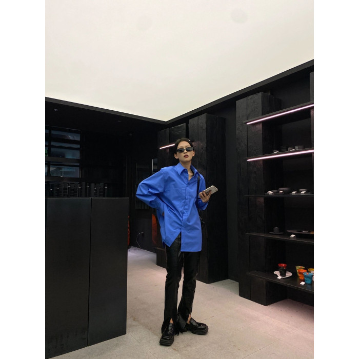 寬松慵懶風長袖別致克萊因藍襯衫女2025新款高級感曡穿上衣薄外套