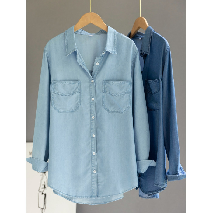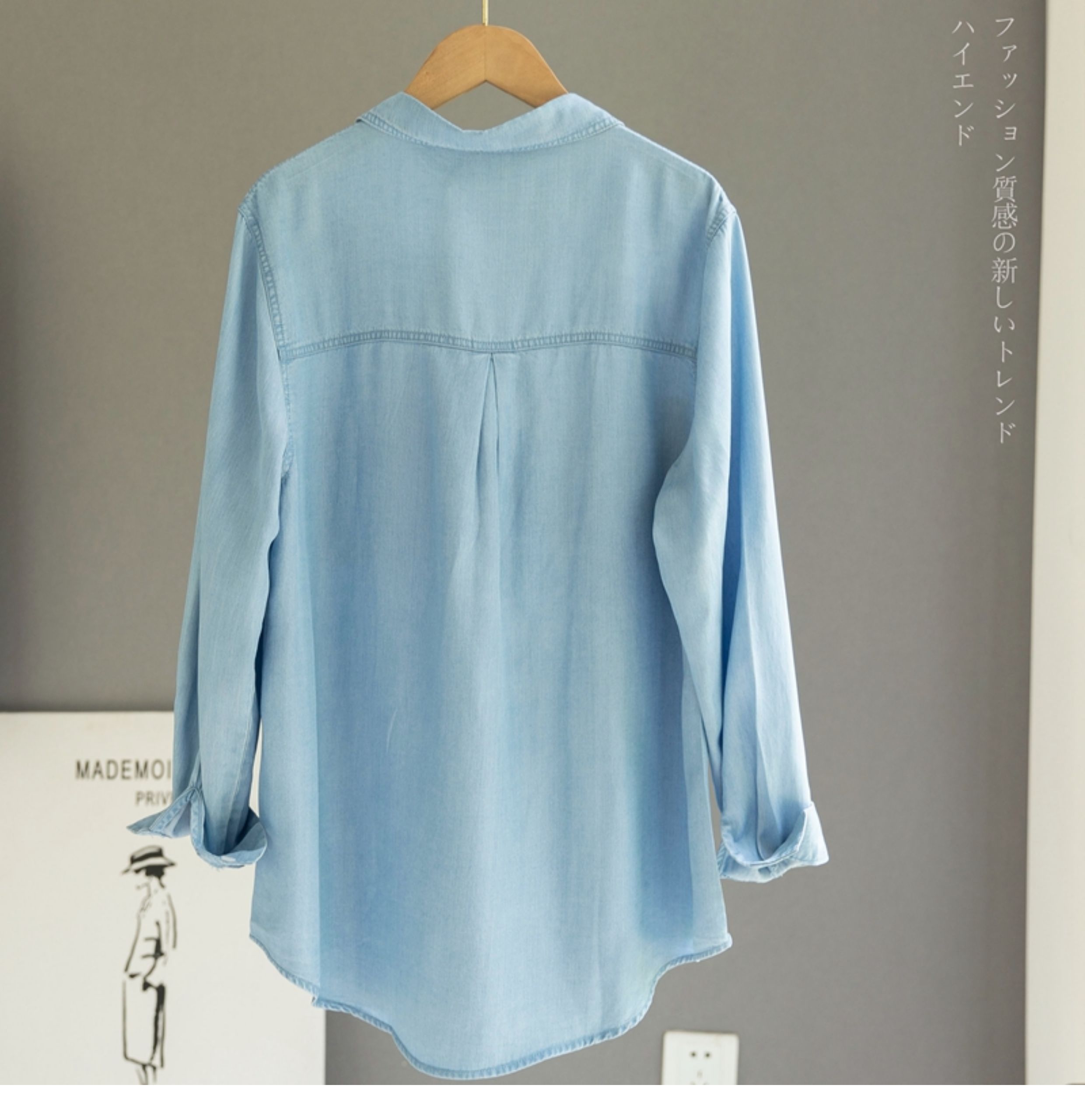 出口高級水洗牛仔襯衫女設計感小衆寬松百搭曡穿襯衣垂感打底