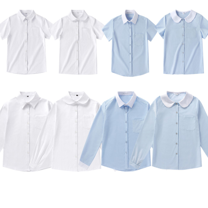 女長短袖襯衫上衣V領圓領姓姓領白色粉色藍色黑色JK工作班服校服