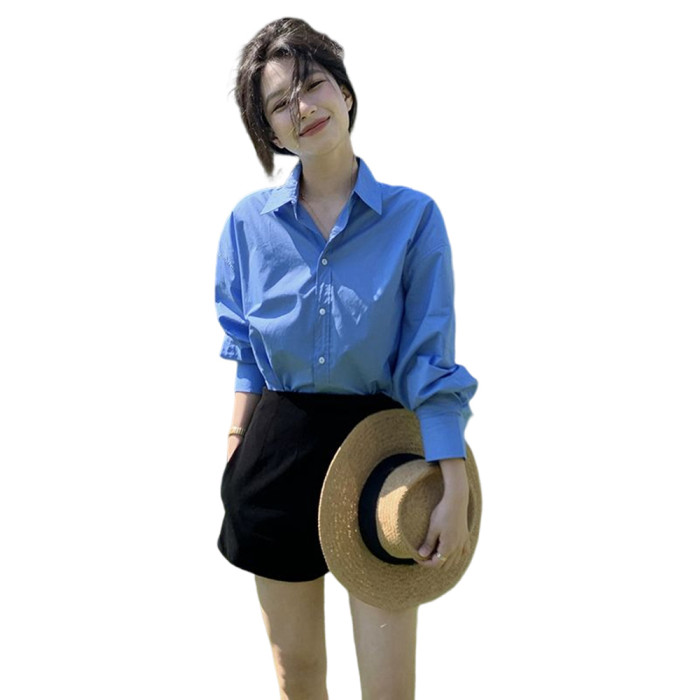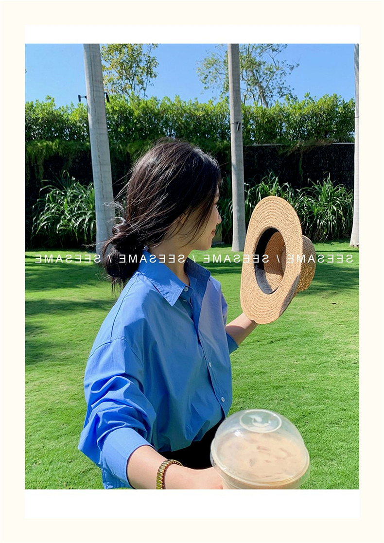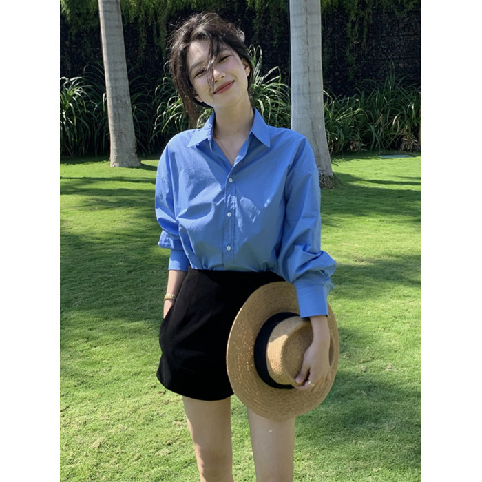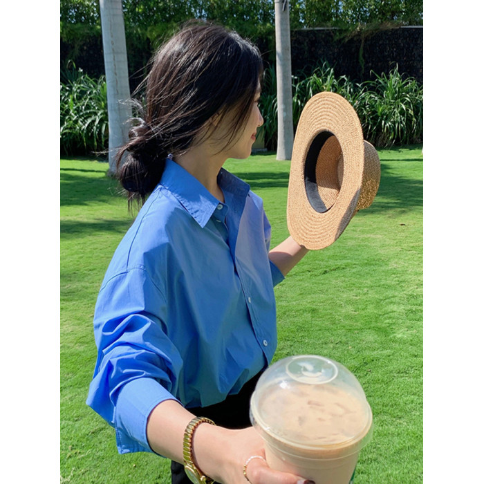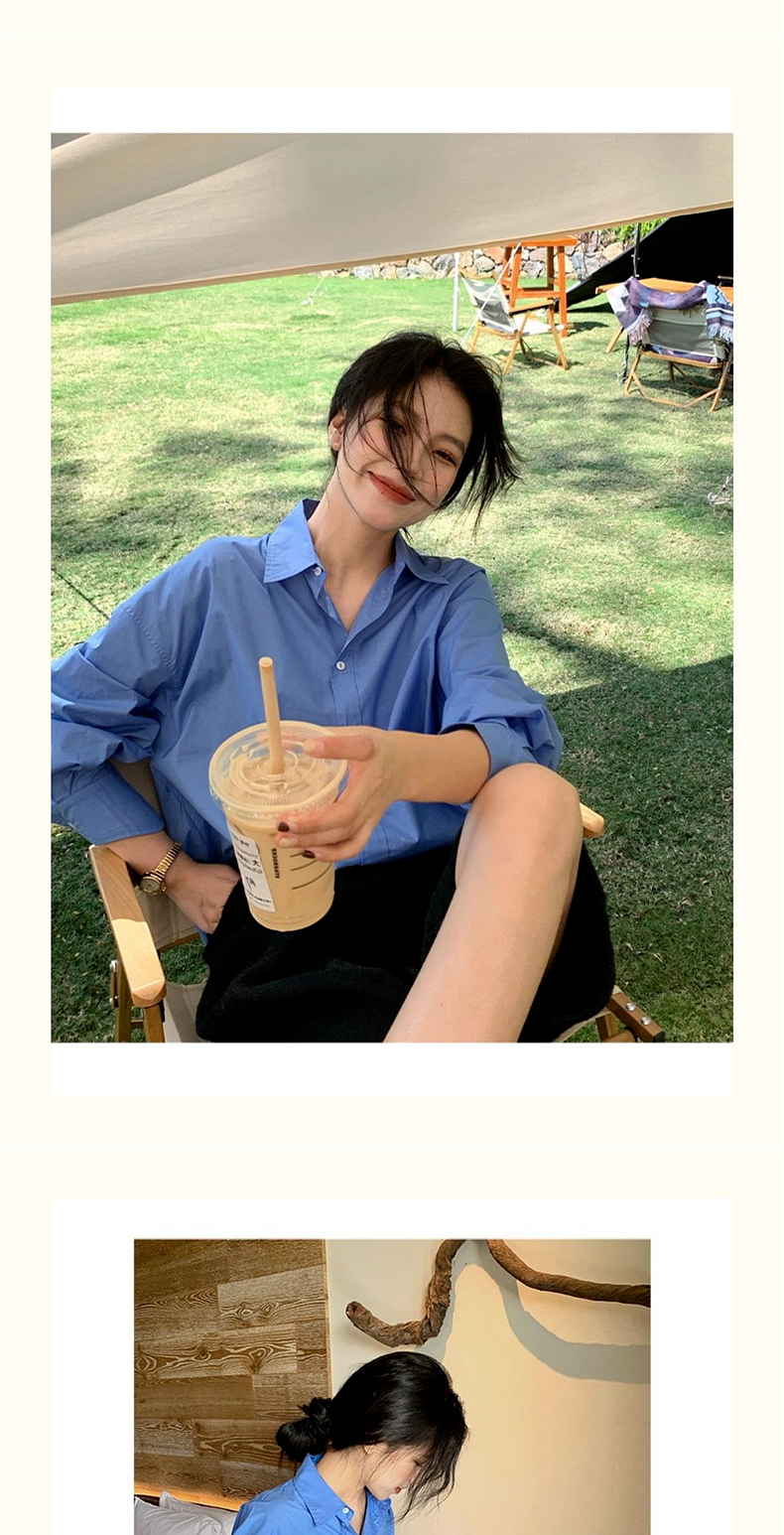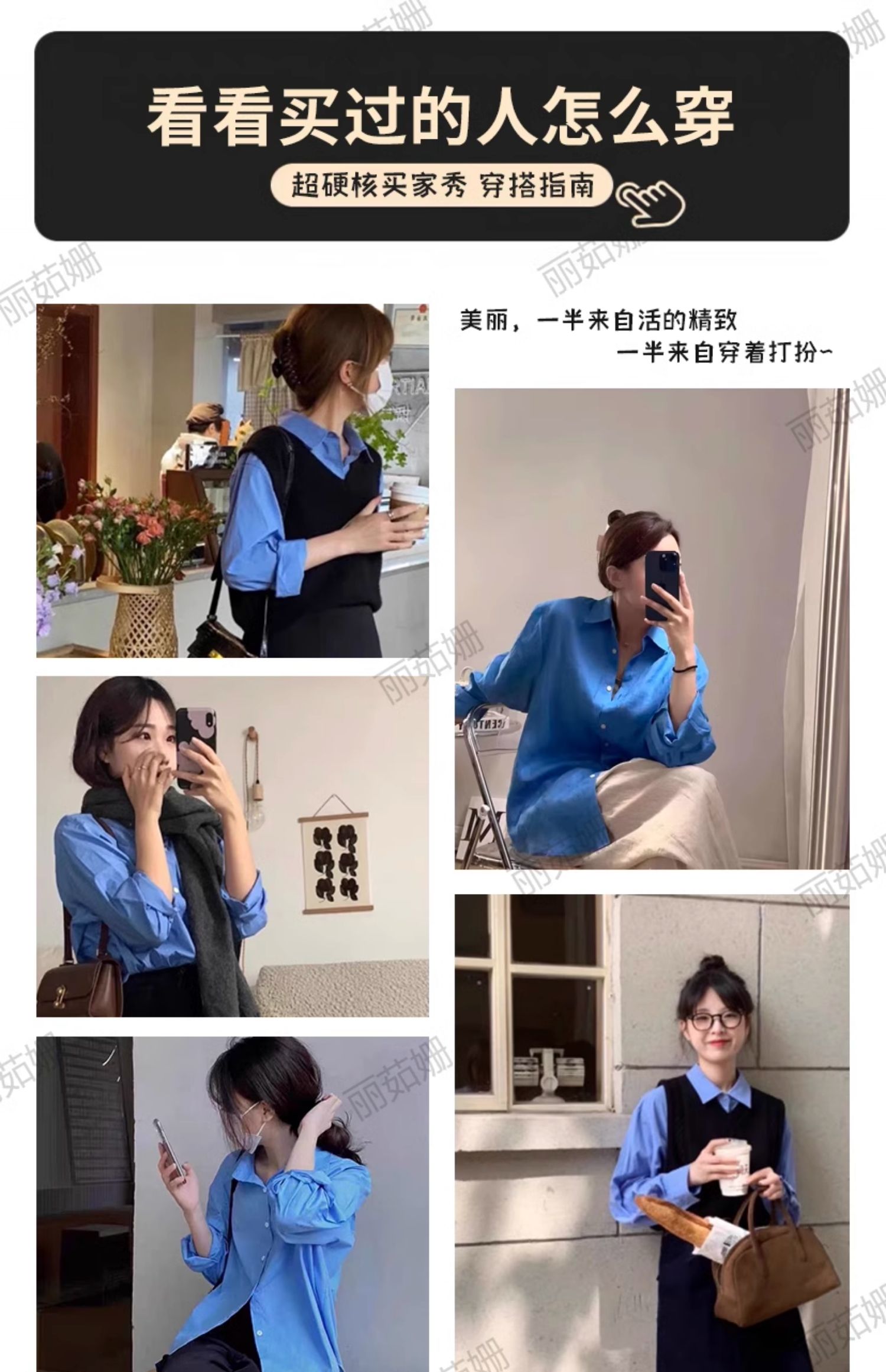 克萊因藍色長袖襯衫女款秋冬2025新款法式襯衣外套上衣輕奢高級感