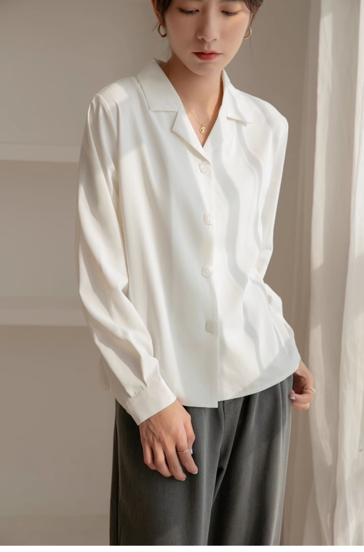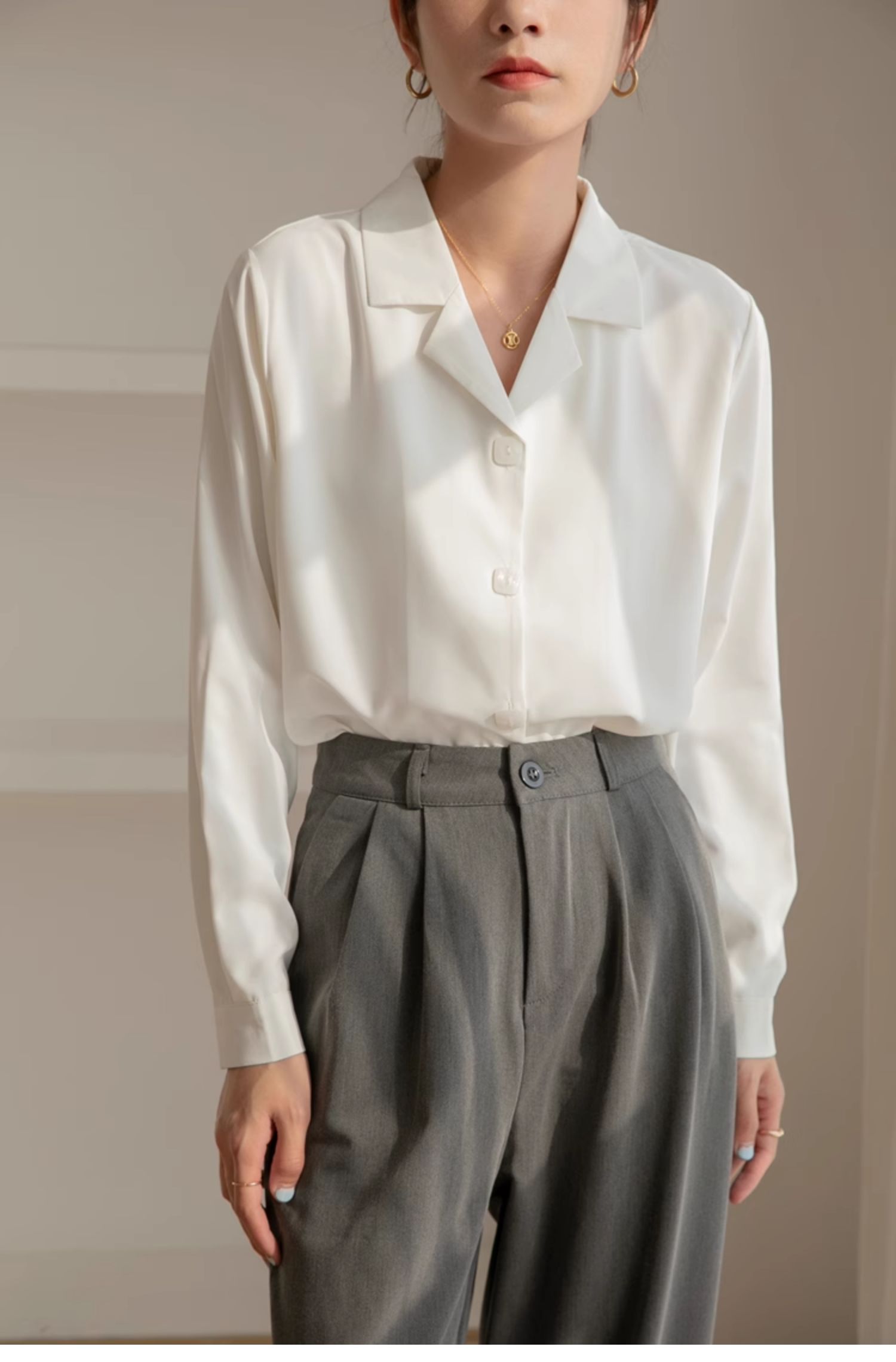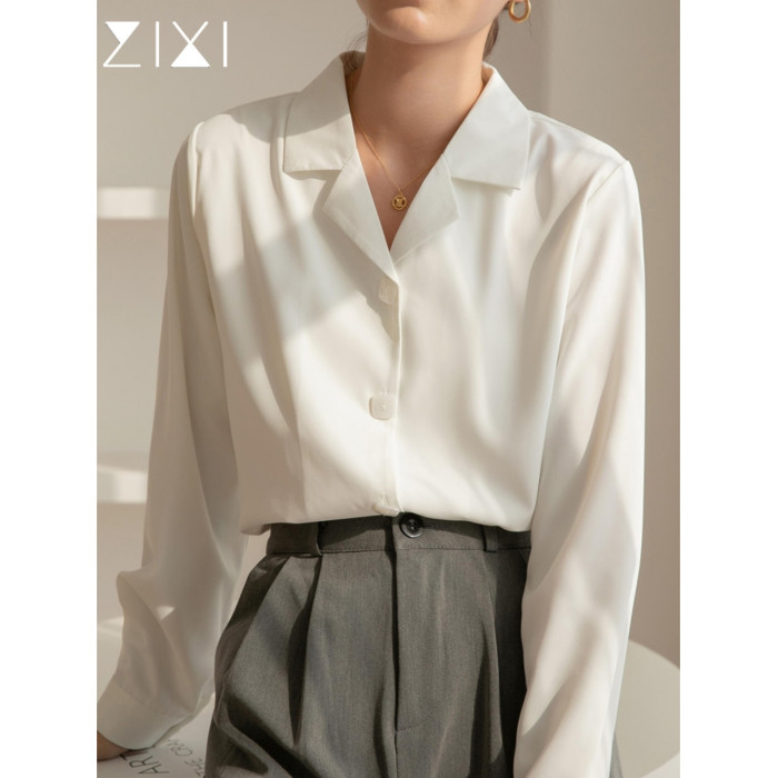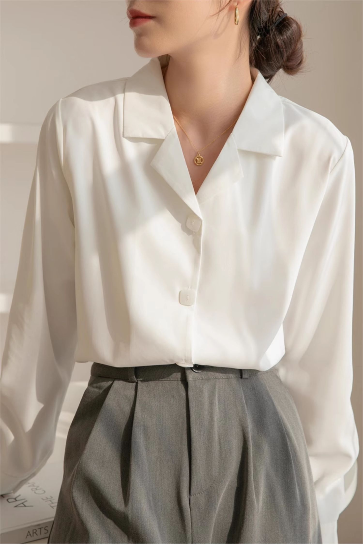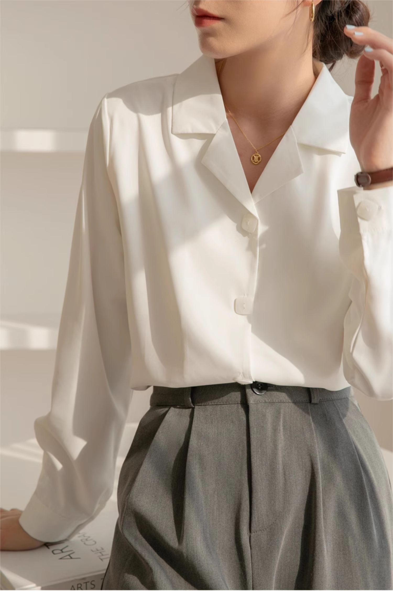 白色雪紡襯衫女長袖西裝v領通勤職業正裝輕職場白襯衣上衣