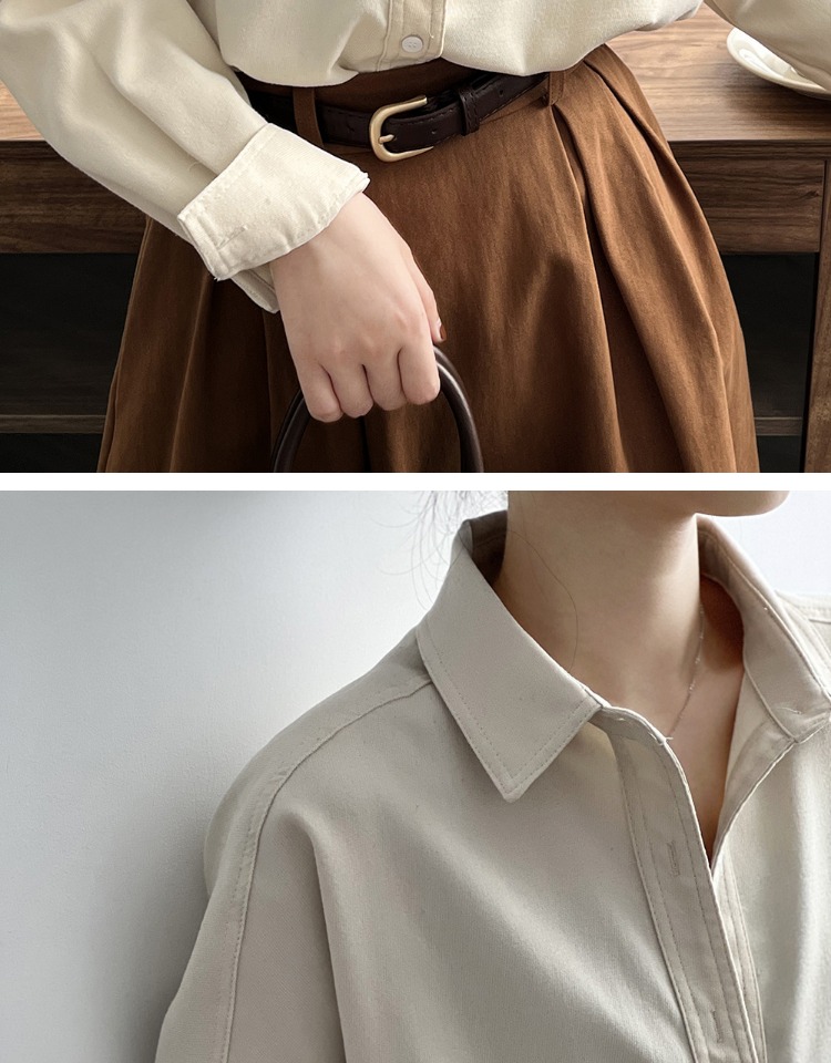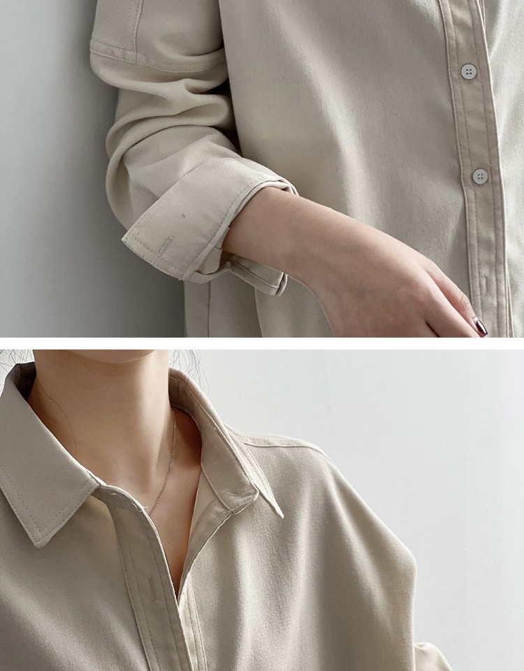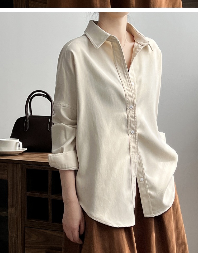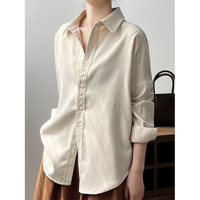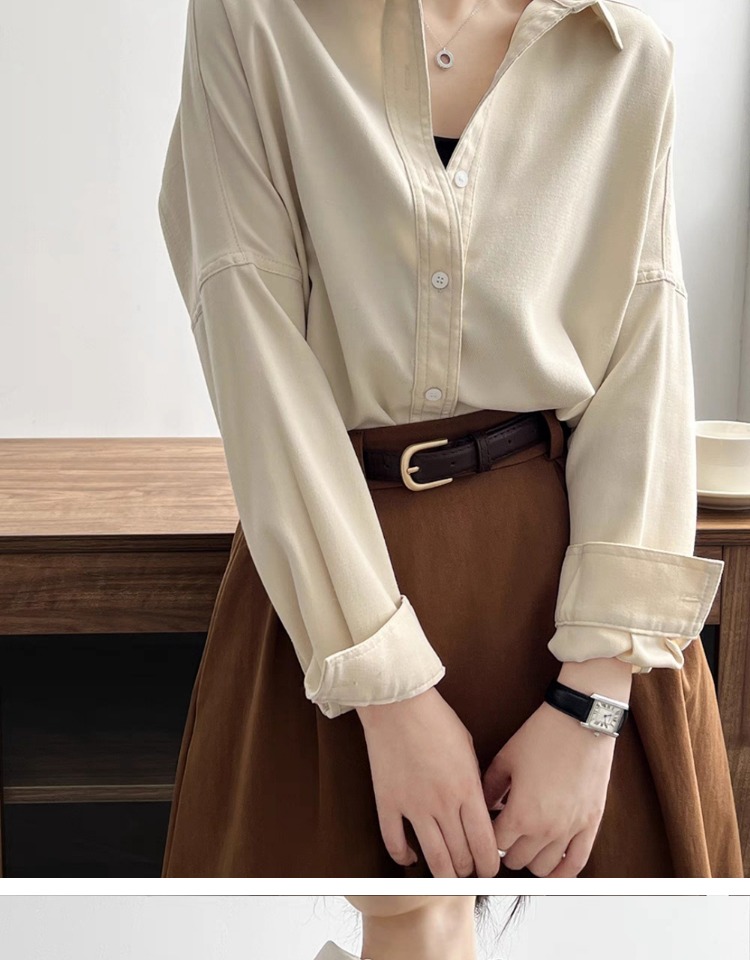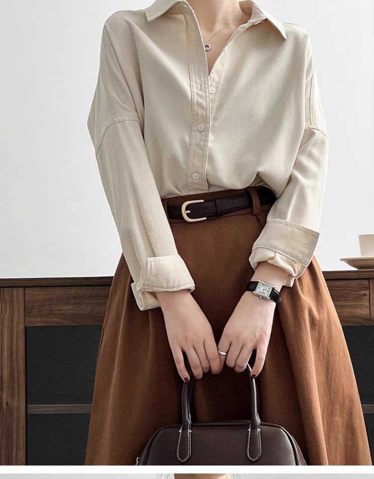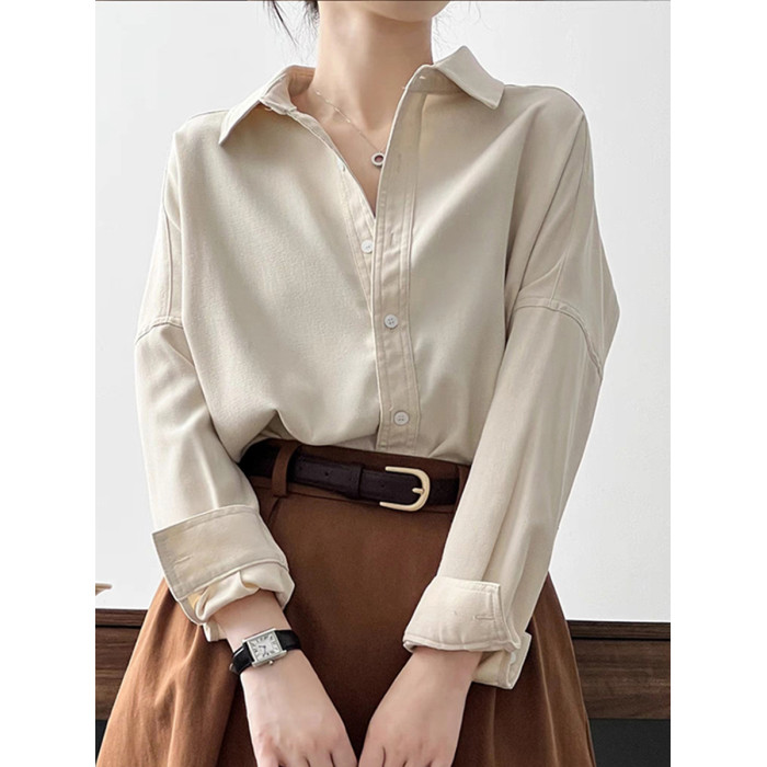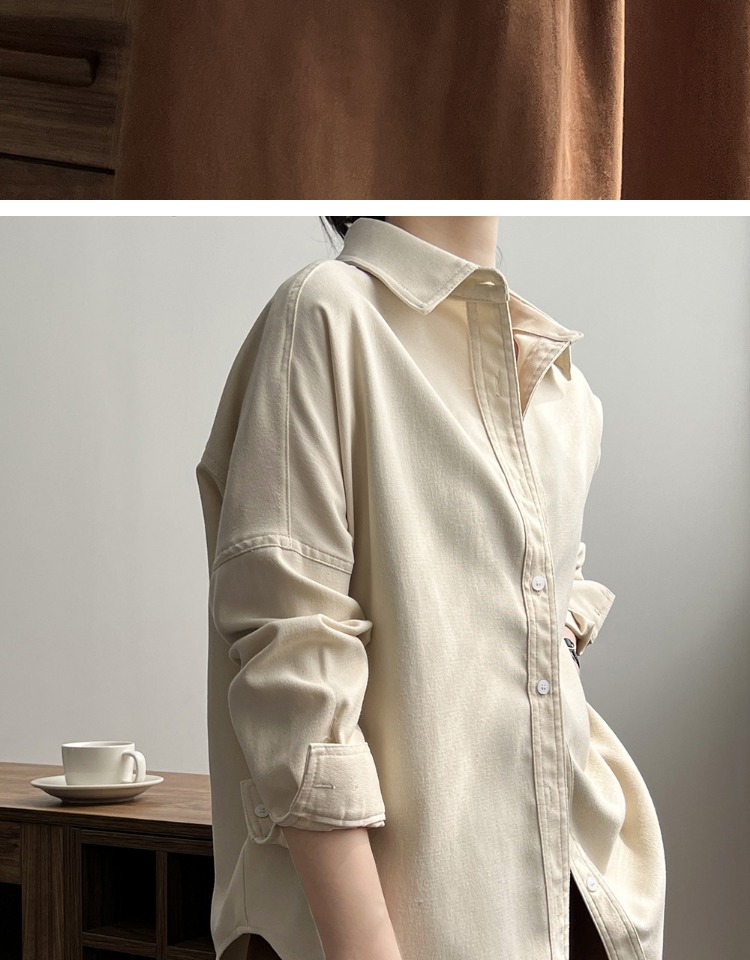 長袖米白襯衫女秋季新款加厚磨毛曡穿打底襯衣設計感小衆上衣外套