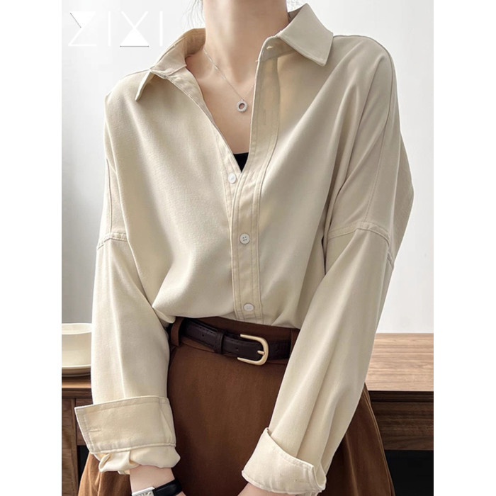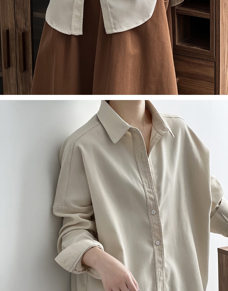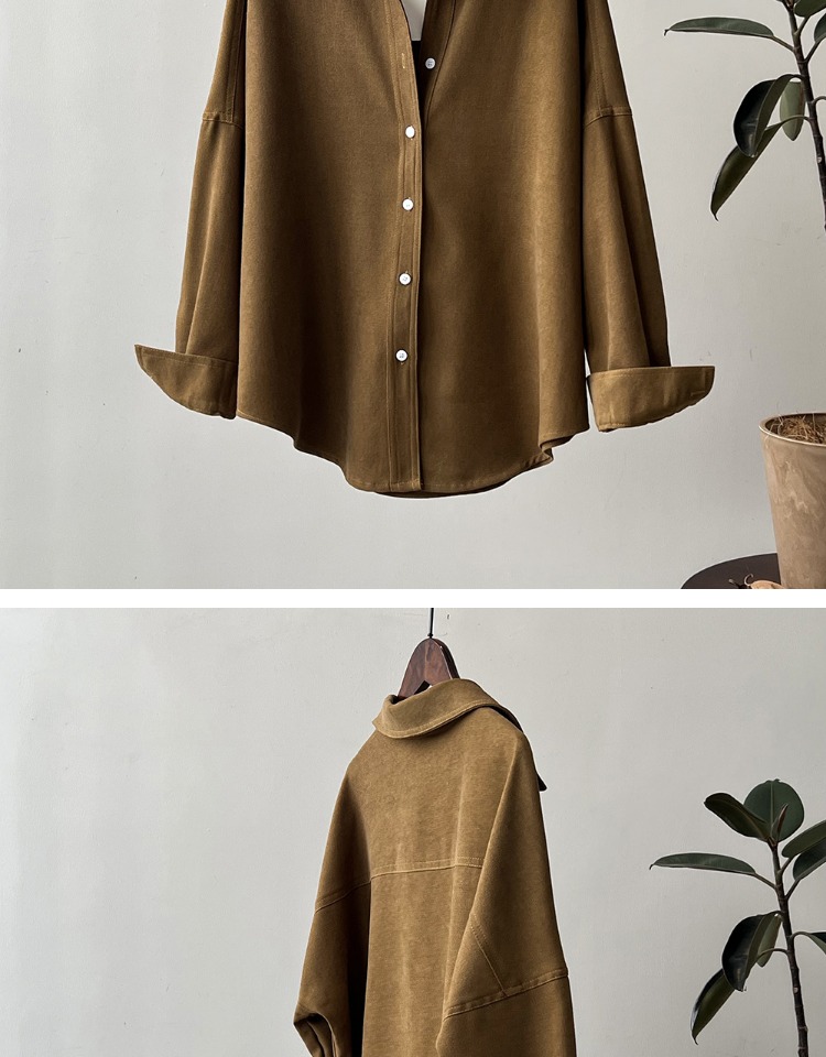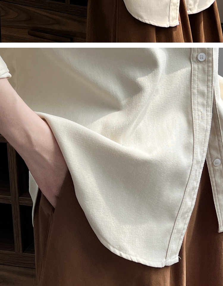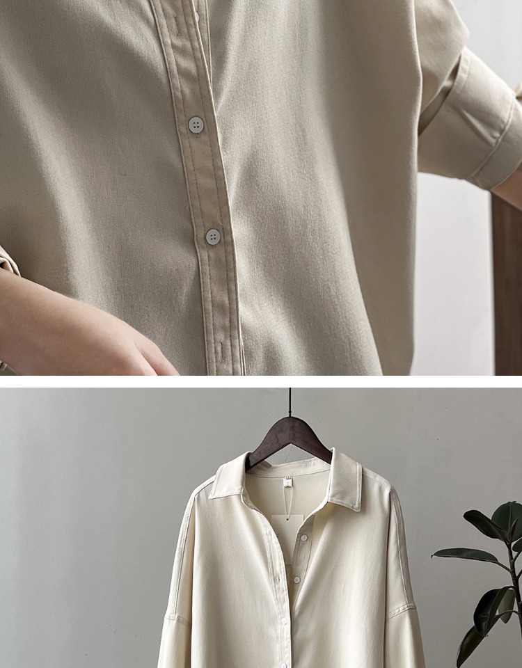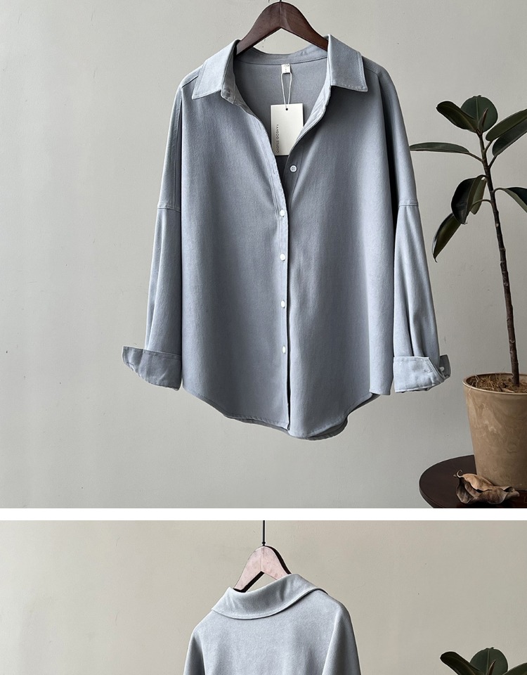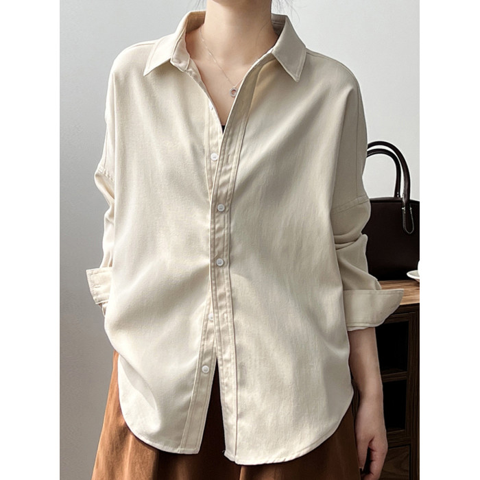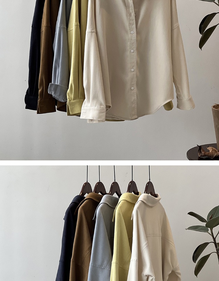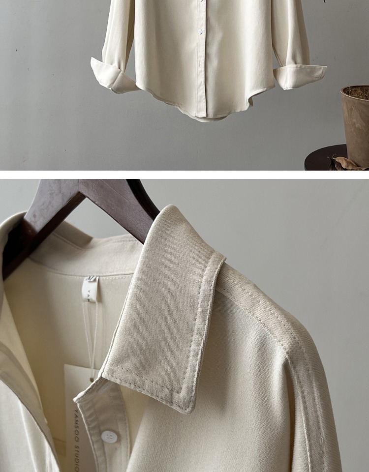 長袖米白襯衫女秋季新款加厚磨毛曡穿打底襯衣設計感小衆上衣外套